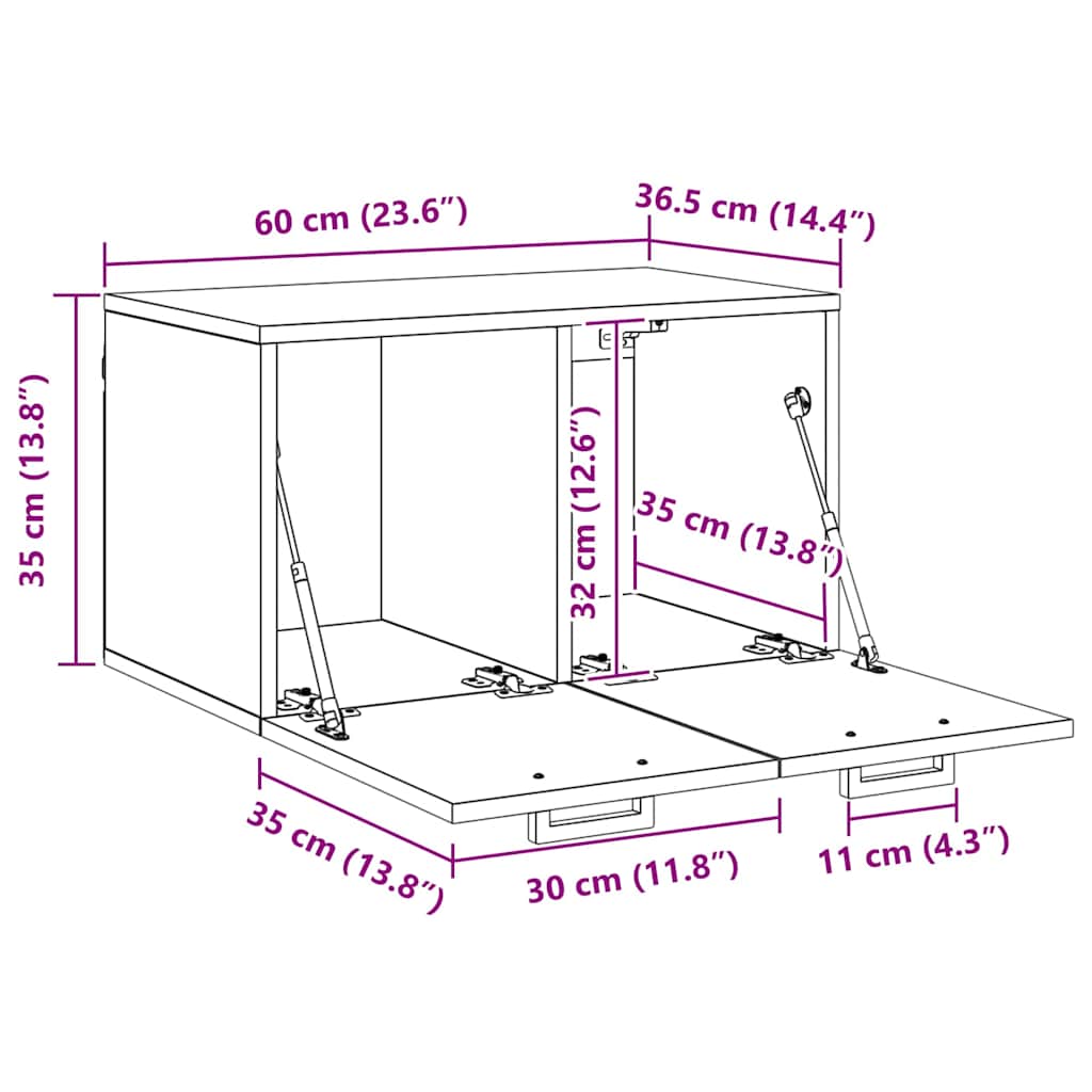 Armário de Parede Carvalho preto 60 x 36.5 x 35 cm