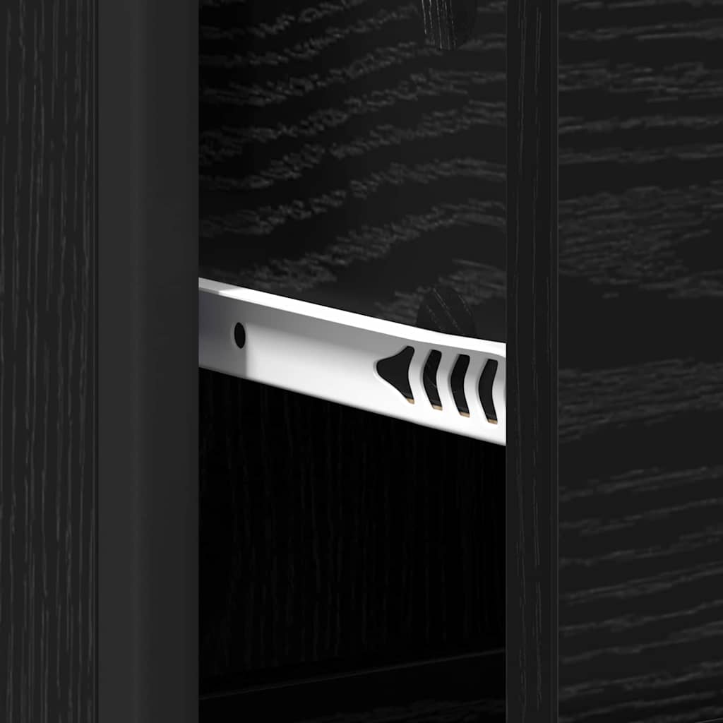 - Materiais: Feito de madeira engenheirada e aço, este armário é forte e durável, garantindo que ele dure sem perder o estilo. O acabamento fosco confere um toque elegante, enquanto a textura áspera dá aquele visual industrial, deixando o armário único.