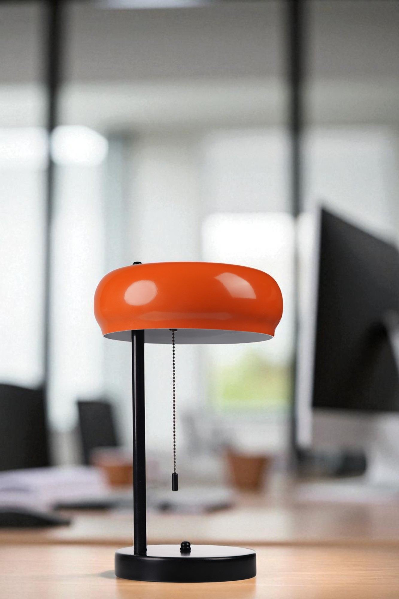 Ilumine seu espaço com esta deslumbrante luminária de mesa que adicionará um toque de elegância e estilo a qualquer ambiente. O corpo metálico desta lâmpada exala uma sensação de sofisticação, enquanto o design único, com uma tampa metálica em uma combinação de cores laranja e preto marcante, fará uma declaração ousada na sua decoração.