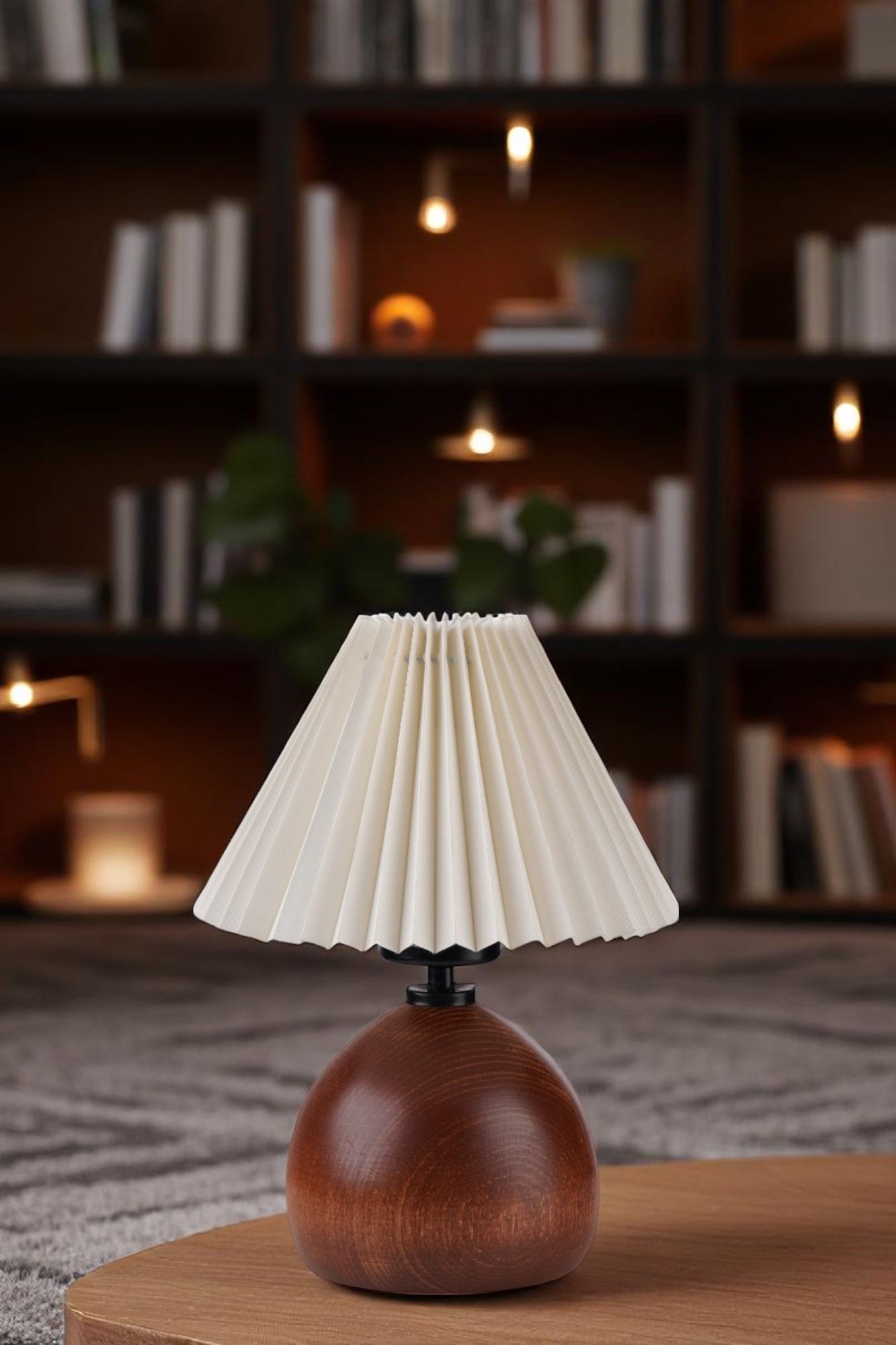 Ilumine seu espaço com o brilho quente e acolhedor de nossa Lâmpada de Mesa de Madeira. Feita com um corpo de madeira elegante e uma tampa de PVC, esta lâmpada exala um senso de charme rústico e elegância. As cores creme e noz adicionam um toque de sofisticação a qualquer ambiente, tornando-a a adição perfeita à sua decoração.