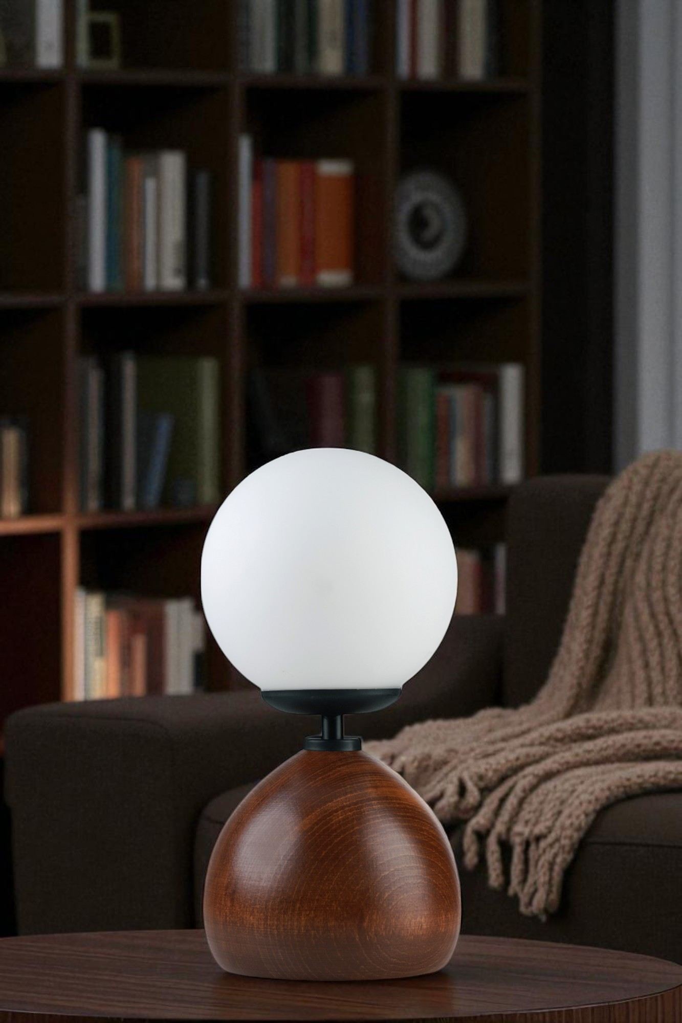 Candeeiro de Mesa de Madeira com Tampa de Vidro – 30 cm de Altura – Branco/Preto/Nogueira