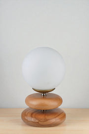 Candeeiro de Mesa de madeira e vidro – Ø15 cm, 28 cm de altura – Branco e Carvalho