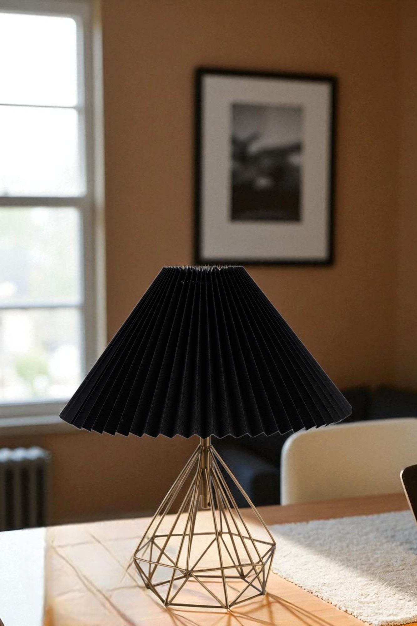 A Lâmpada de Mesa Preta e Dourada apresenta um design único que instantaneamente elevará a atmosfera do seu espaço. A combinação das cores preta e dourada cria um visual luxuoso e chique que impressionará seus convidados.