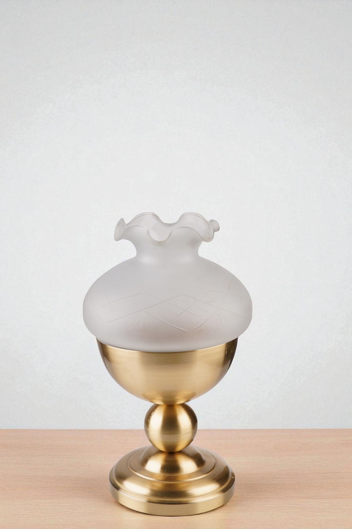 Candeeiro de Mesa – 40 cm de altura – Branco e Dourado – Metal e Vidro