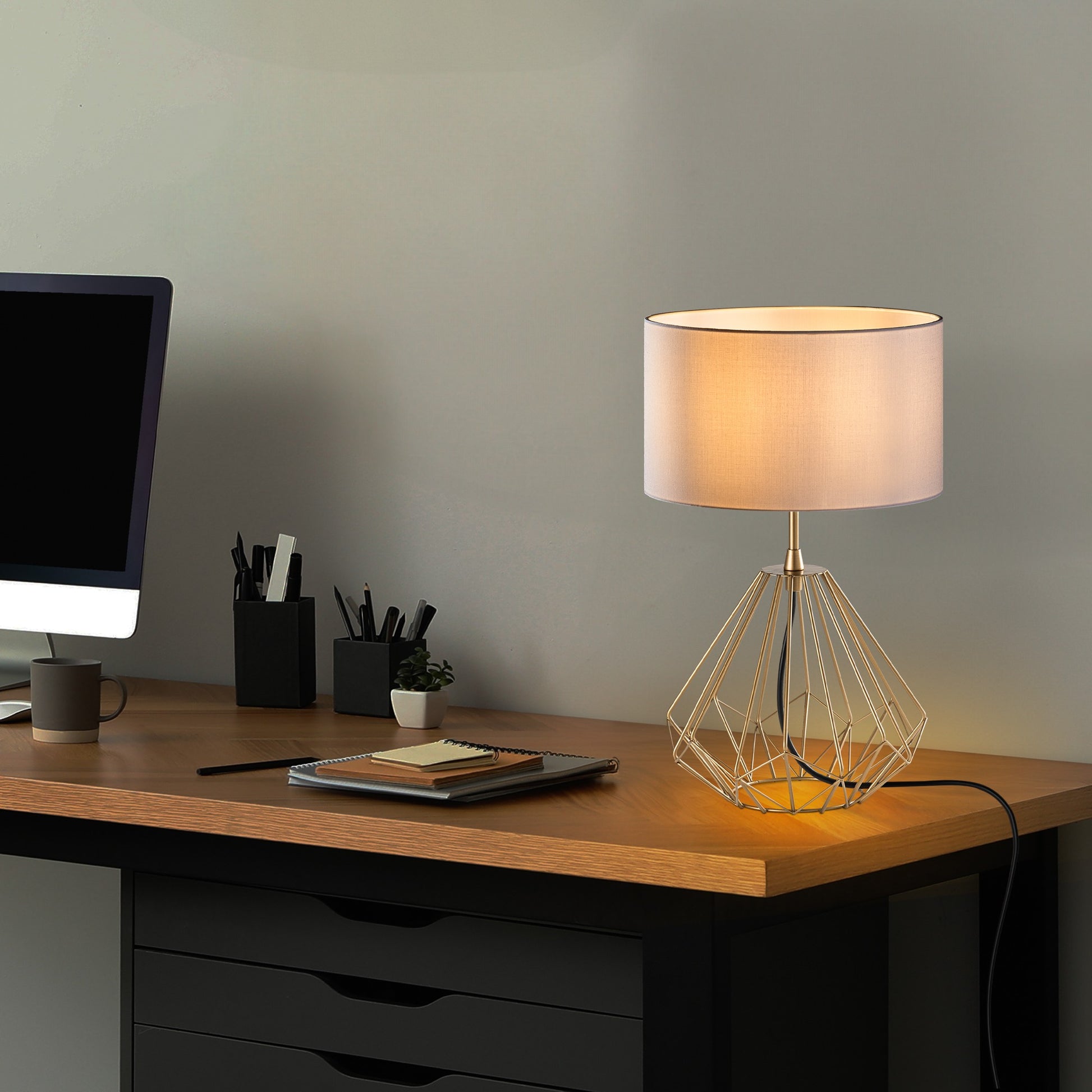 Ilumine o seu espaço com elegância e estilo com o nosso deslumbrante candeeiro de mesa com corpo em metal. O design elegante e o luxuoso acabamento dourado darão um toque de sofisticação a qualquer divisão. A tampa em tecido confere um brilho suave e convidativo, criando uma atmosfera calorosa e acolhedora na sua casa.