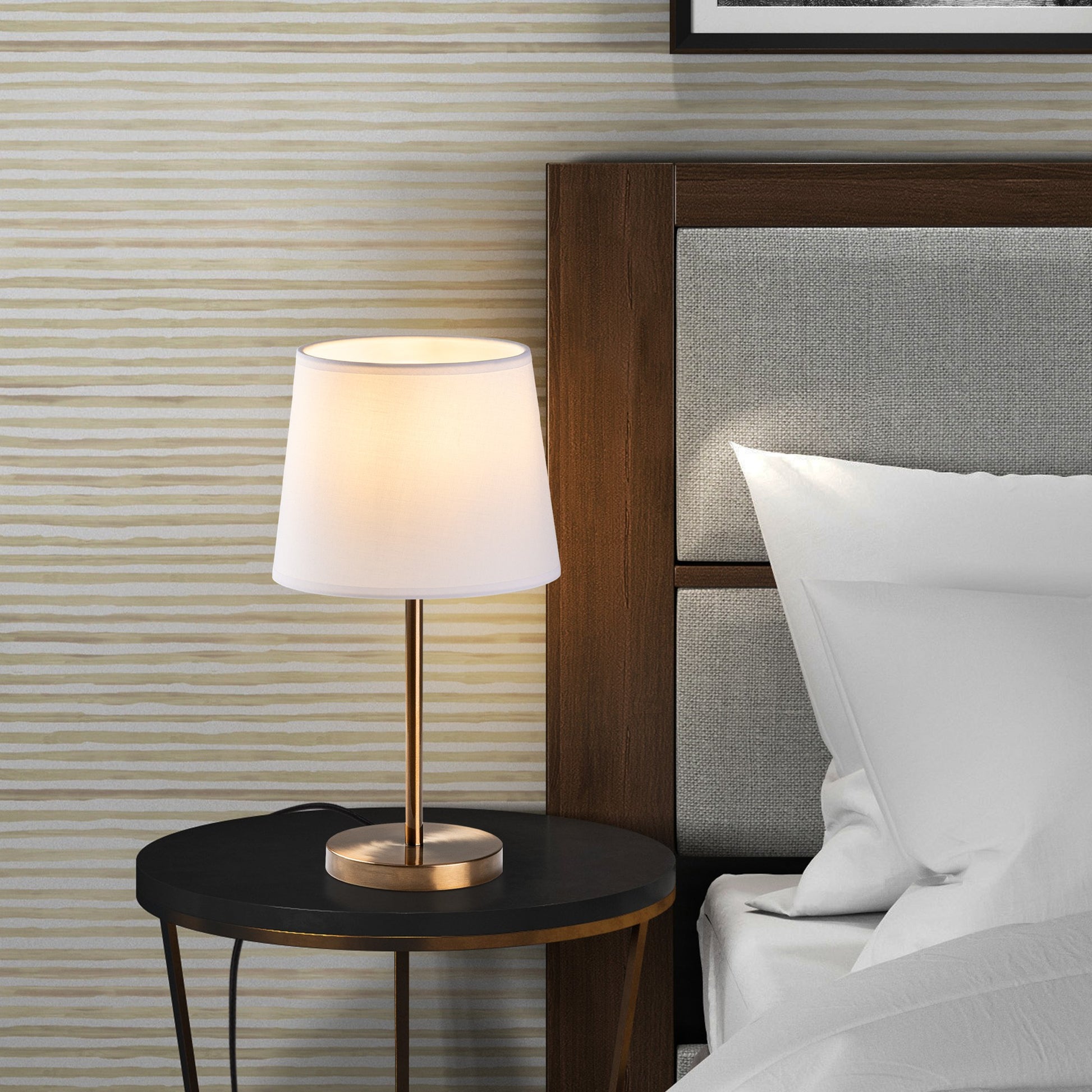 O candeeiro de mesa com corpo metálico não é apenas uma fonte de luz, mas uma peça de afirmação que irá melhorar o ambiente da sua casa. O corpo metálico elegante e a tampa em tecido criam um aspeto moderno e elegante que irá elevar o seu design interior.