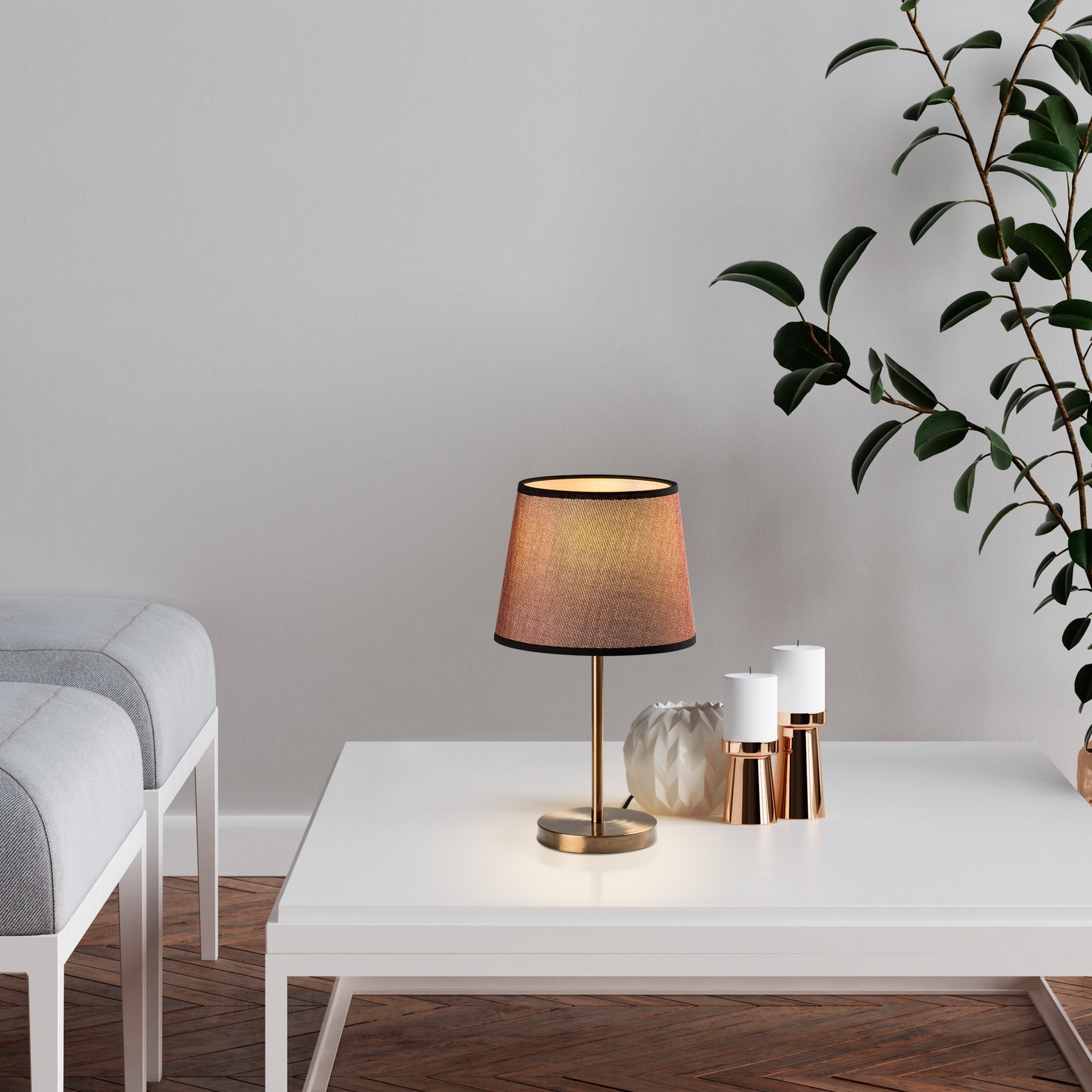 O candeeiro de mesa com corpo metálico não é apenas uma fonte de luz, mas uma peça de afirmação que irá melhorar o ambiente da sua casa. O corpo metálico elegante e a tampa em tecido criam um aspeto moderno e elegante que irá elevar o seu design interior.