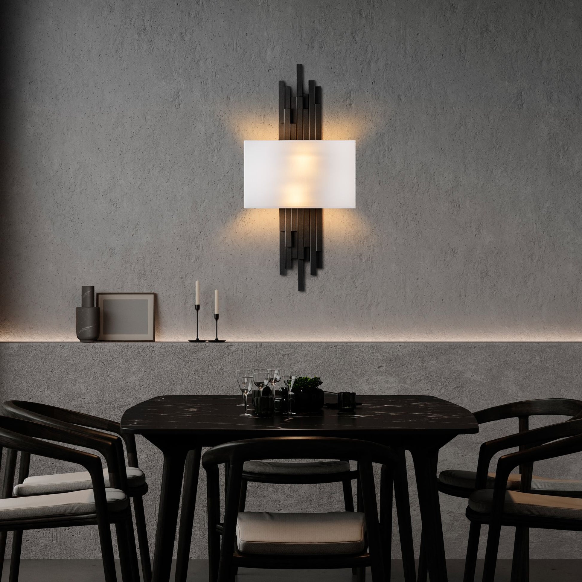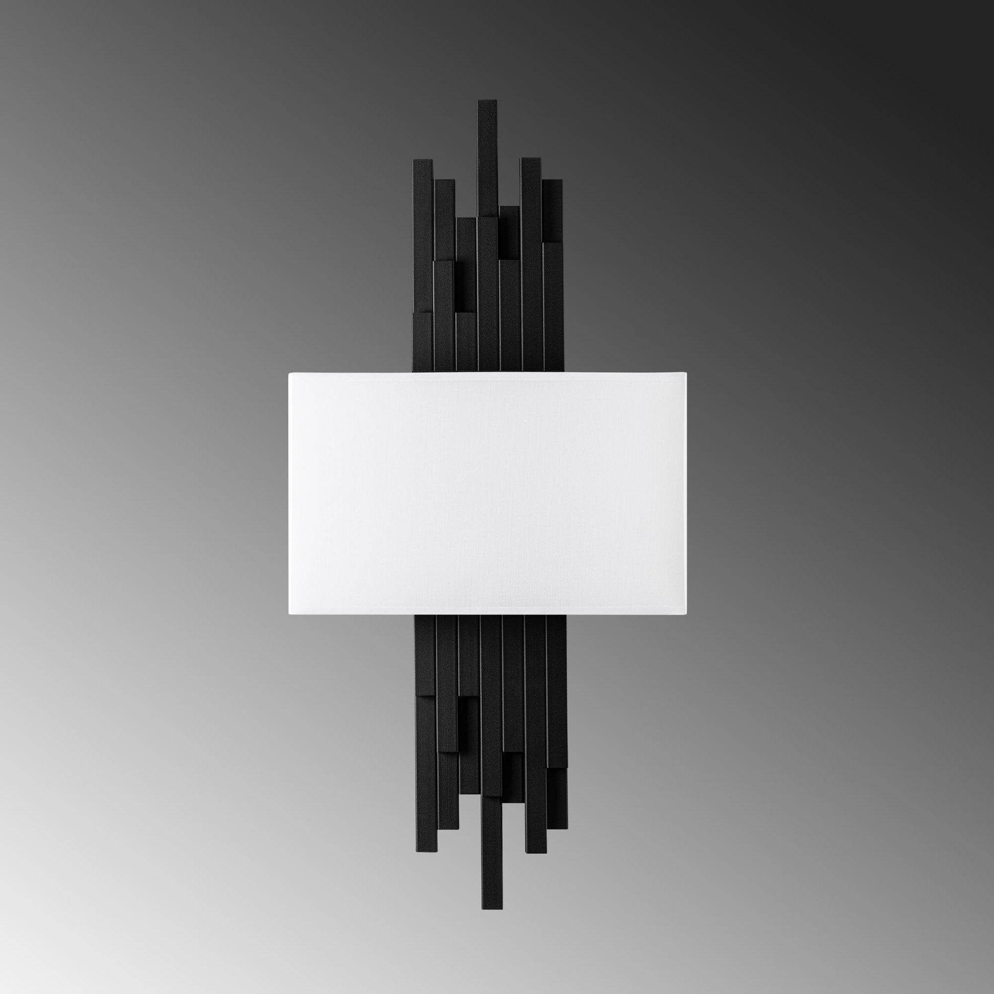 Candeeiro de Parede – 35 x 75 x 10 cm – Preto e Branco – Metal e Tecido