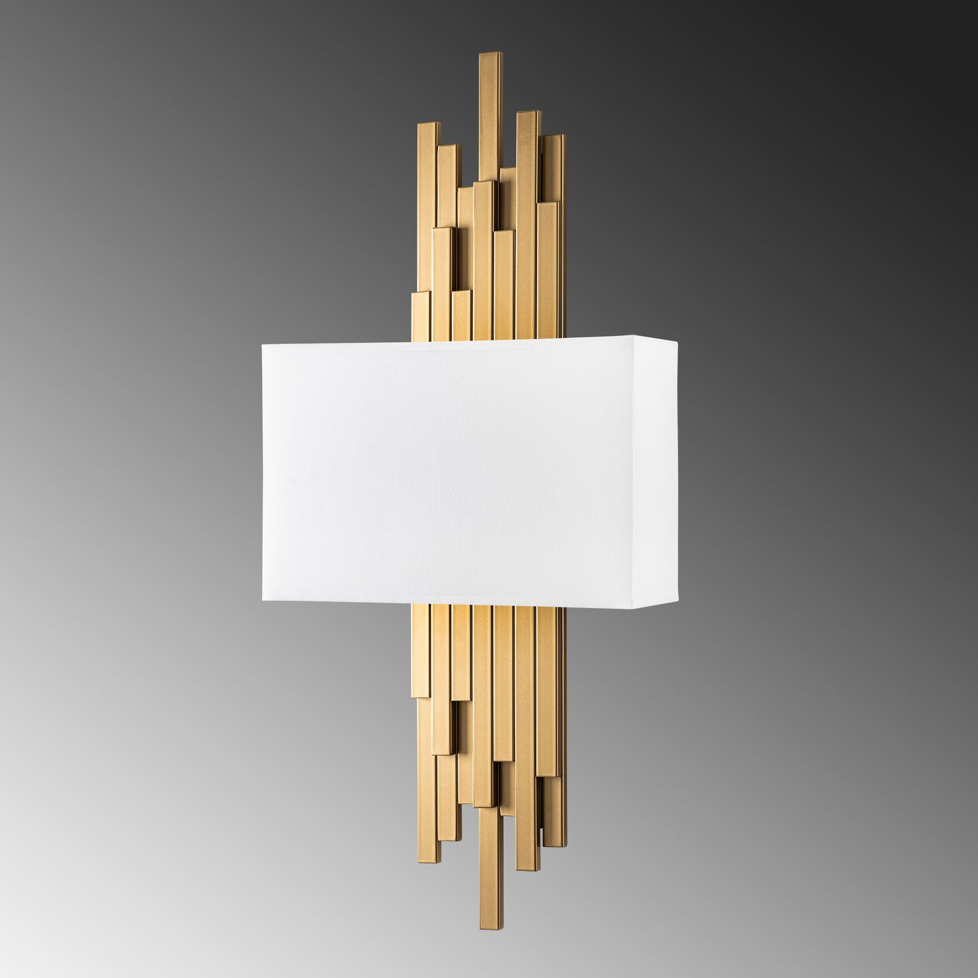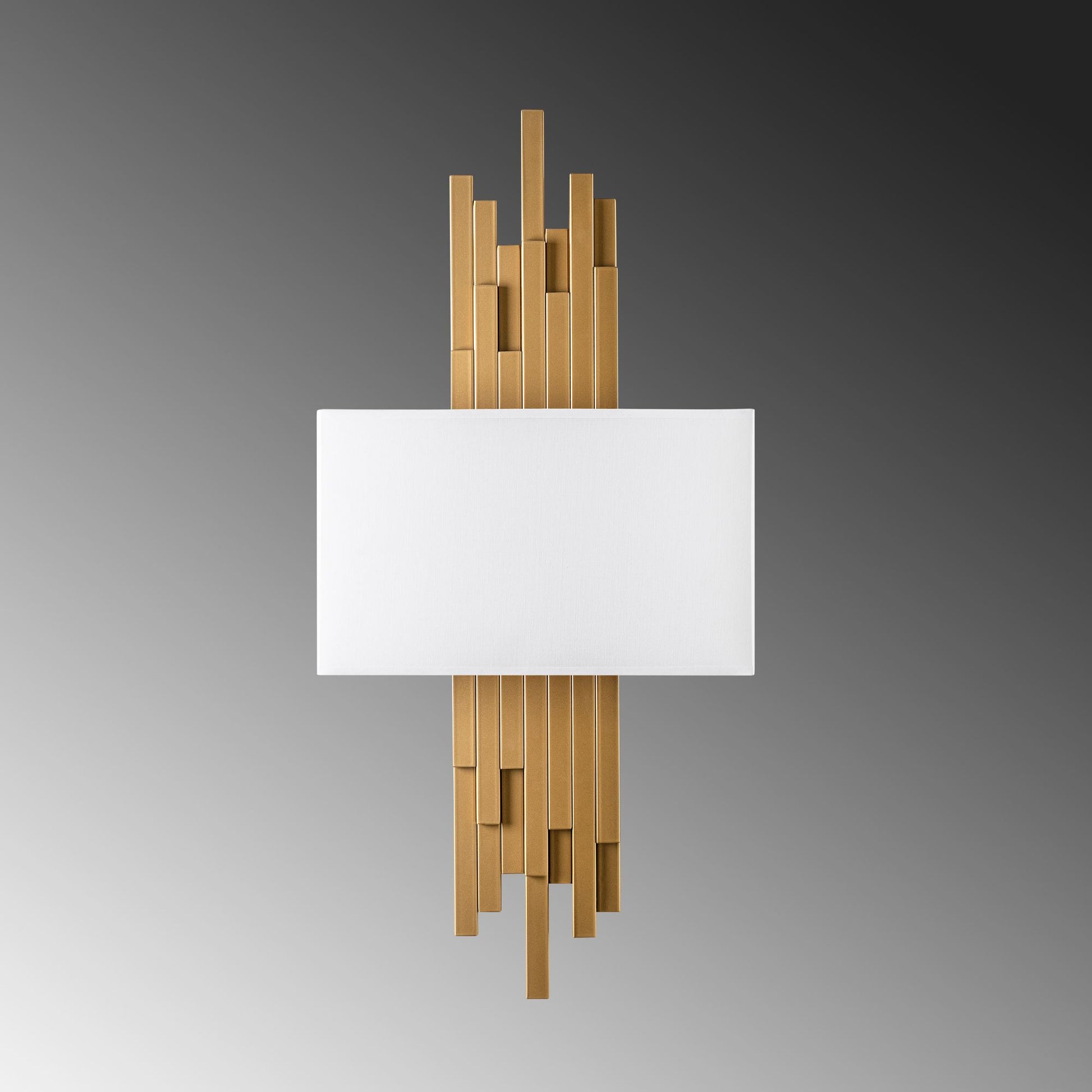 Candeeiro de Parede – 35 x 75 x 10 cm – Dourado e Branco – Metal e Tecido