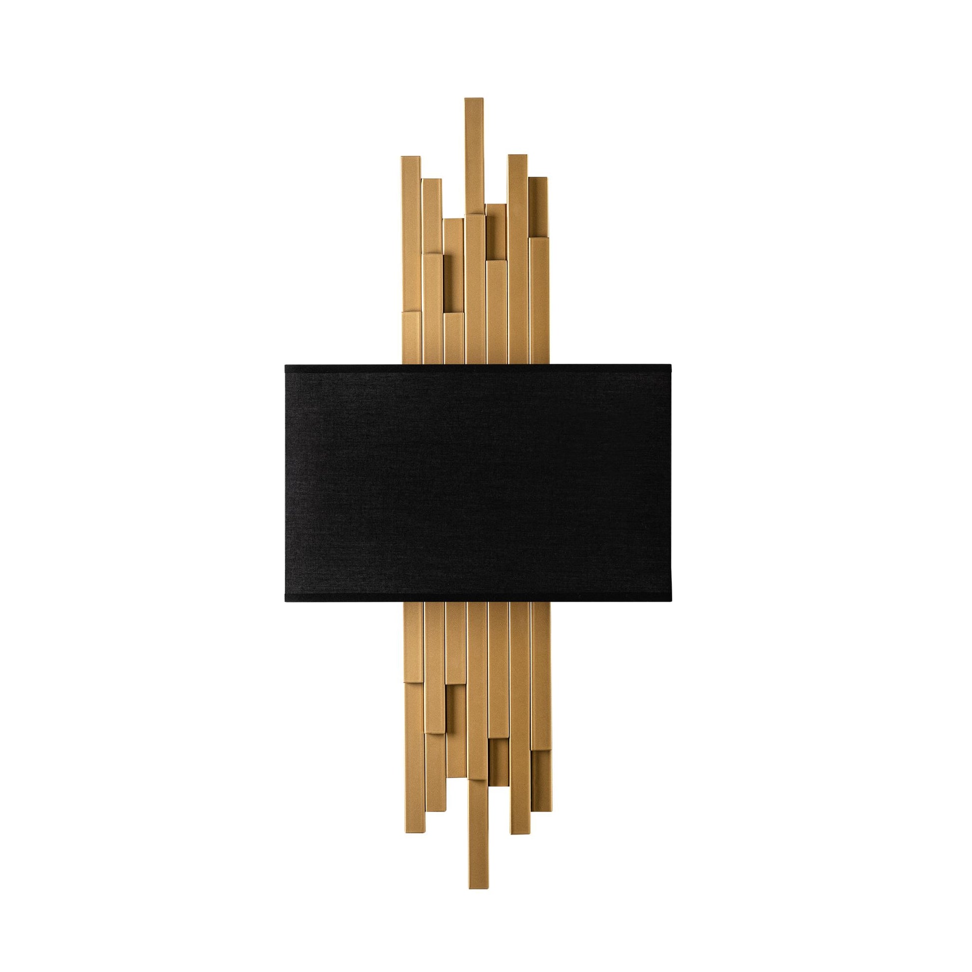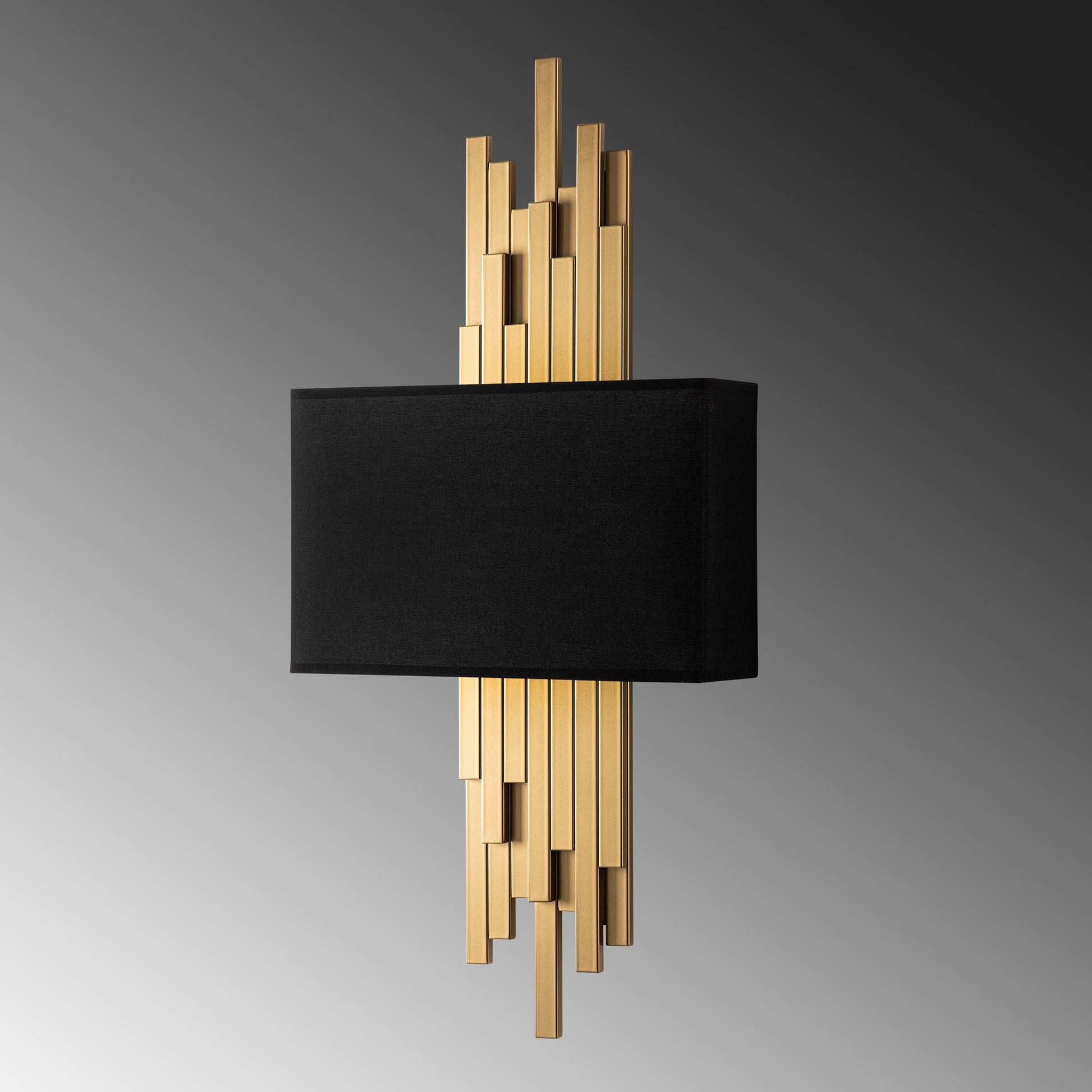 Candeeiro de Parede – 35 x 75 x 10 cm – Dourado e Preto – Metal e Tecido