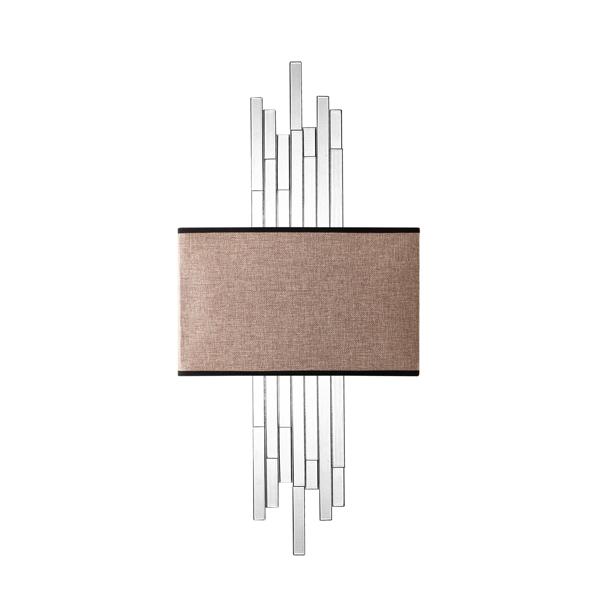 Candeeiro de Parede – 35 x 75 x 10 cm – Branco e Marrom Claro – Metal e Tecido