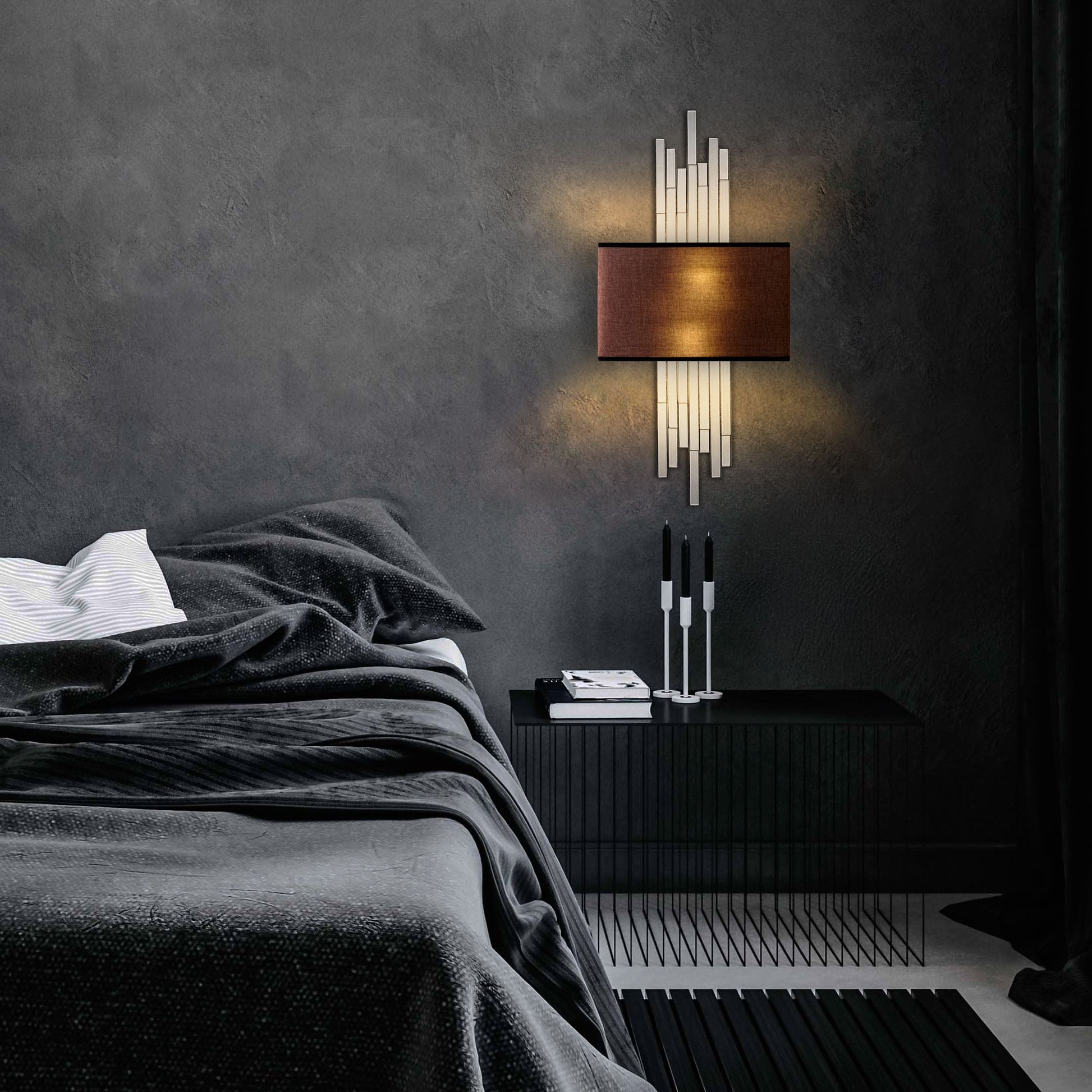 Ilumine seu espaço com nossa deslumbrante Lâmpada de Parede, uma combinação perfeita de design moderno e funcionalidade. O corpo de metal adiciona um toque de elegância, enquanto a cúpula de tecido suaviza a luz, criando uma atmosfera quente e convidativa.