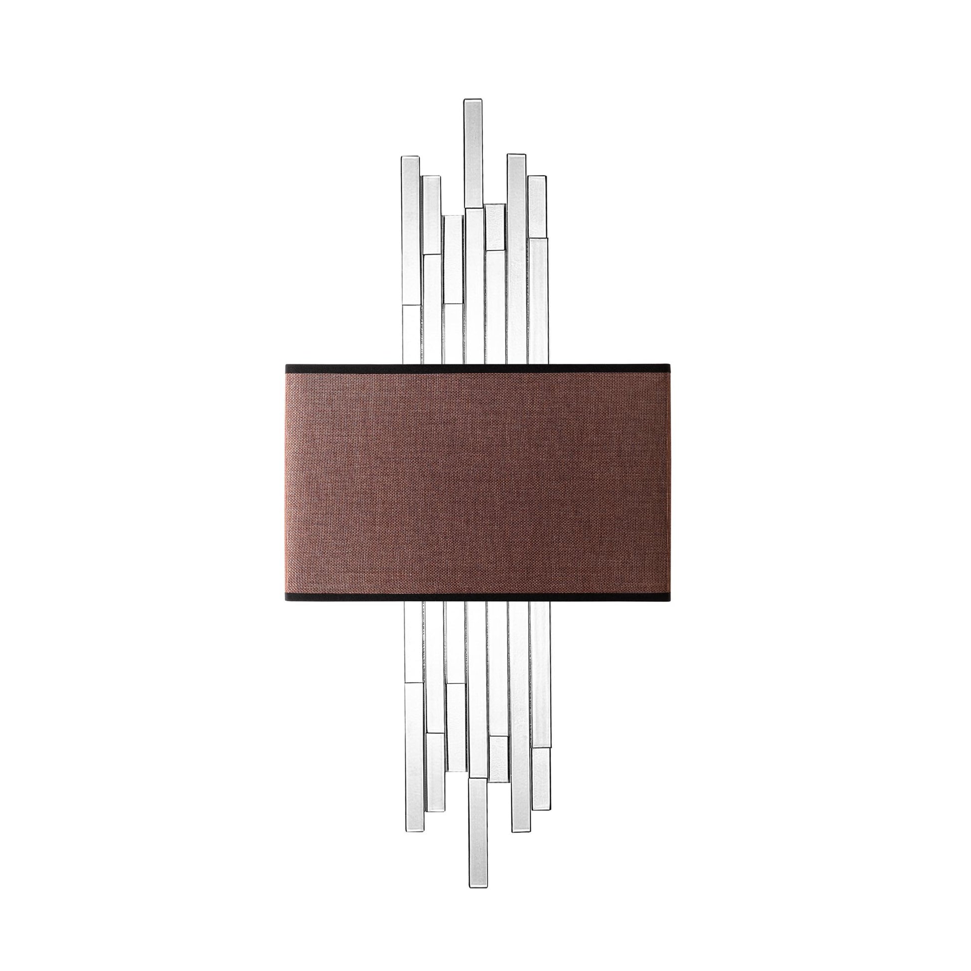 Candeeiro de Parede – 35 x 75 x 10 cm – Branco e Marrom – Metal e Tecido