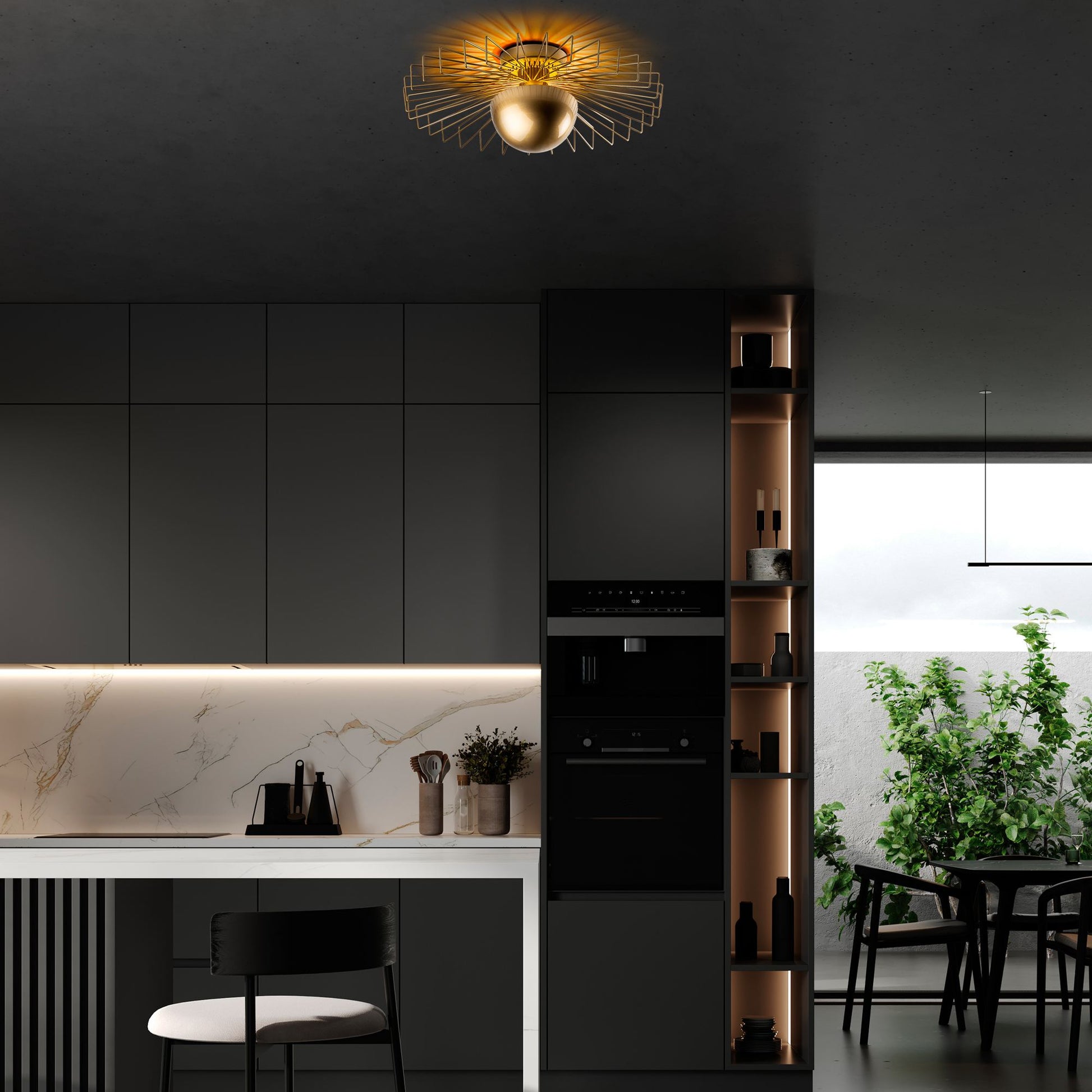 Candeeiro de Teto – 60 x 60 x 24 cm – Dourado – Metal