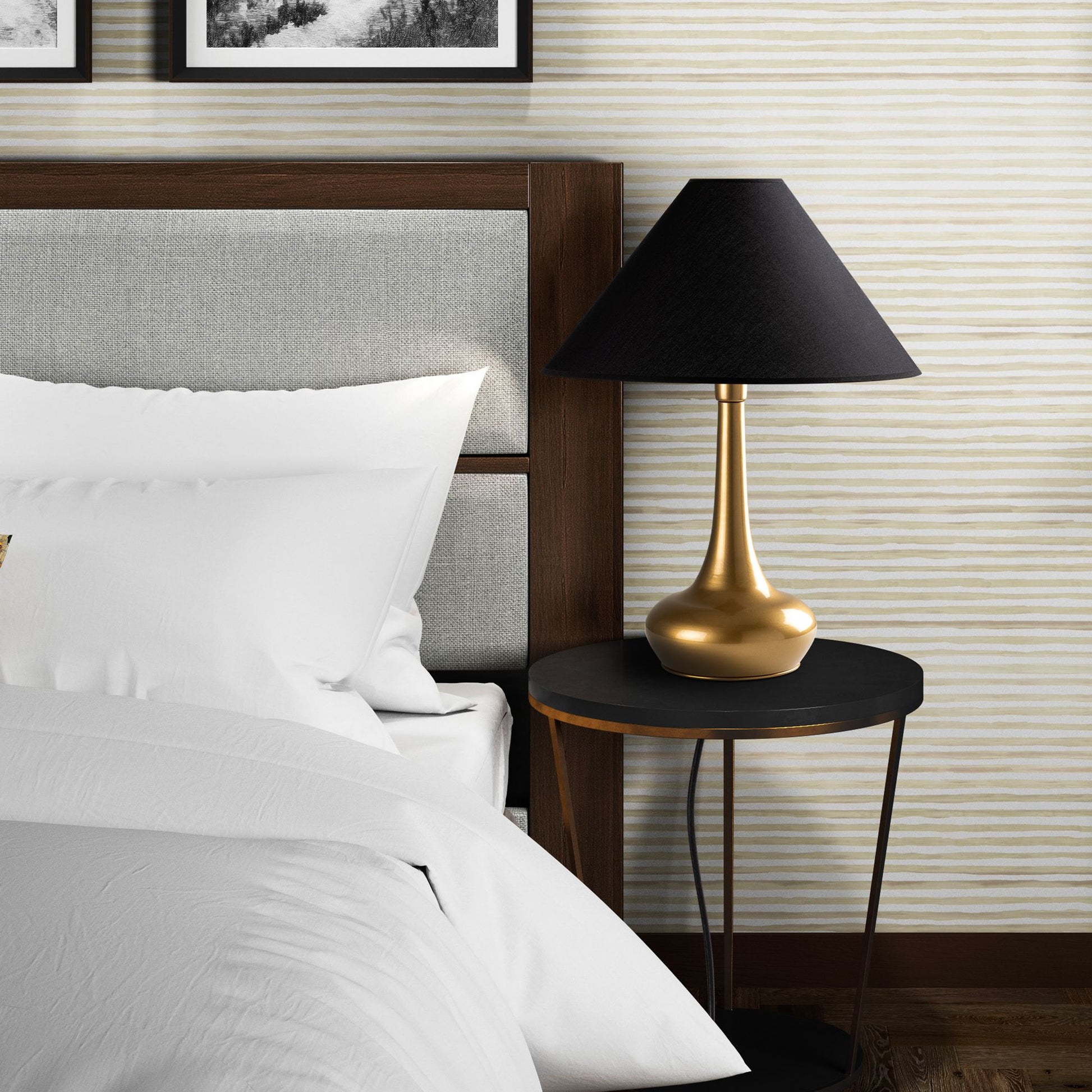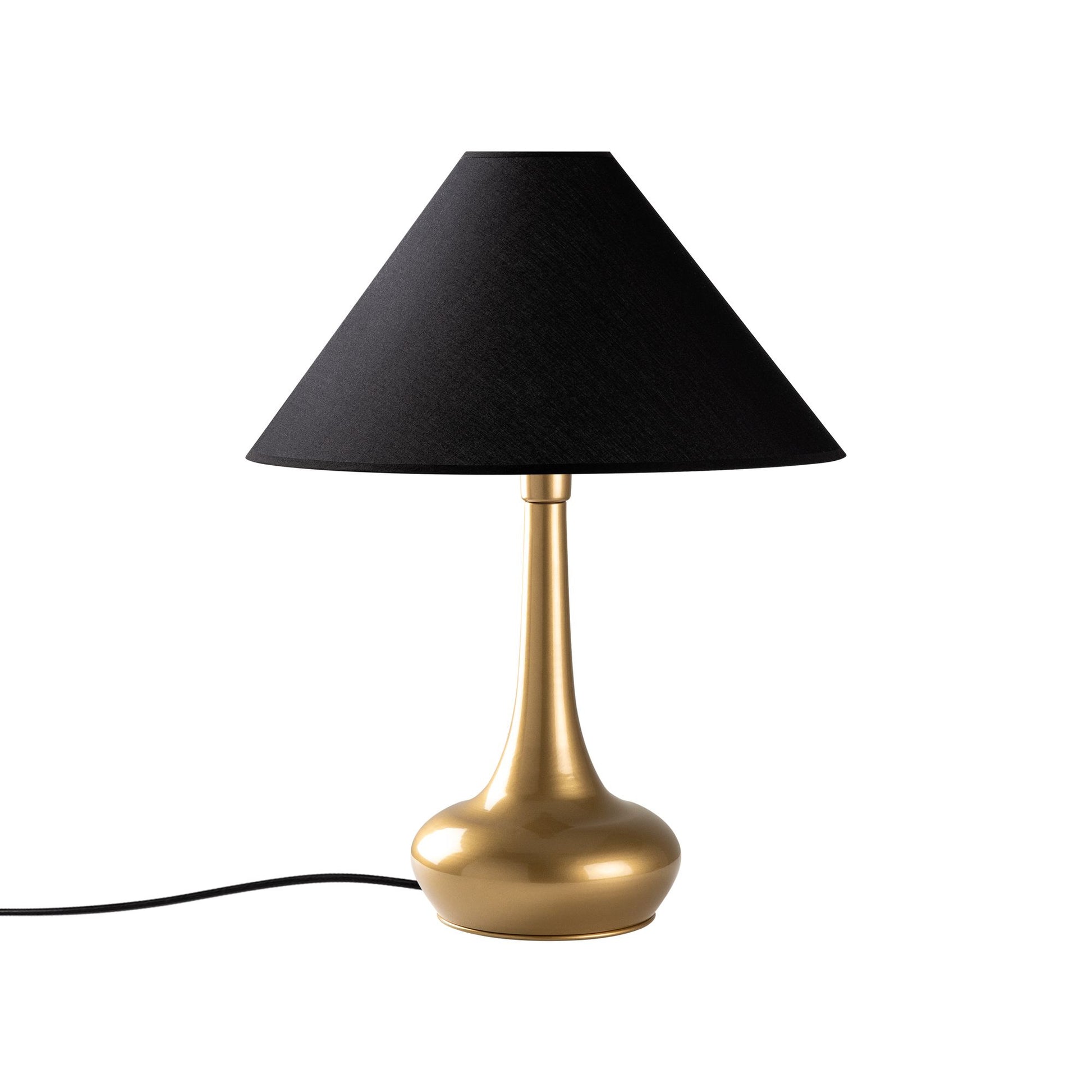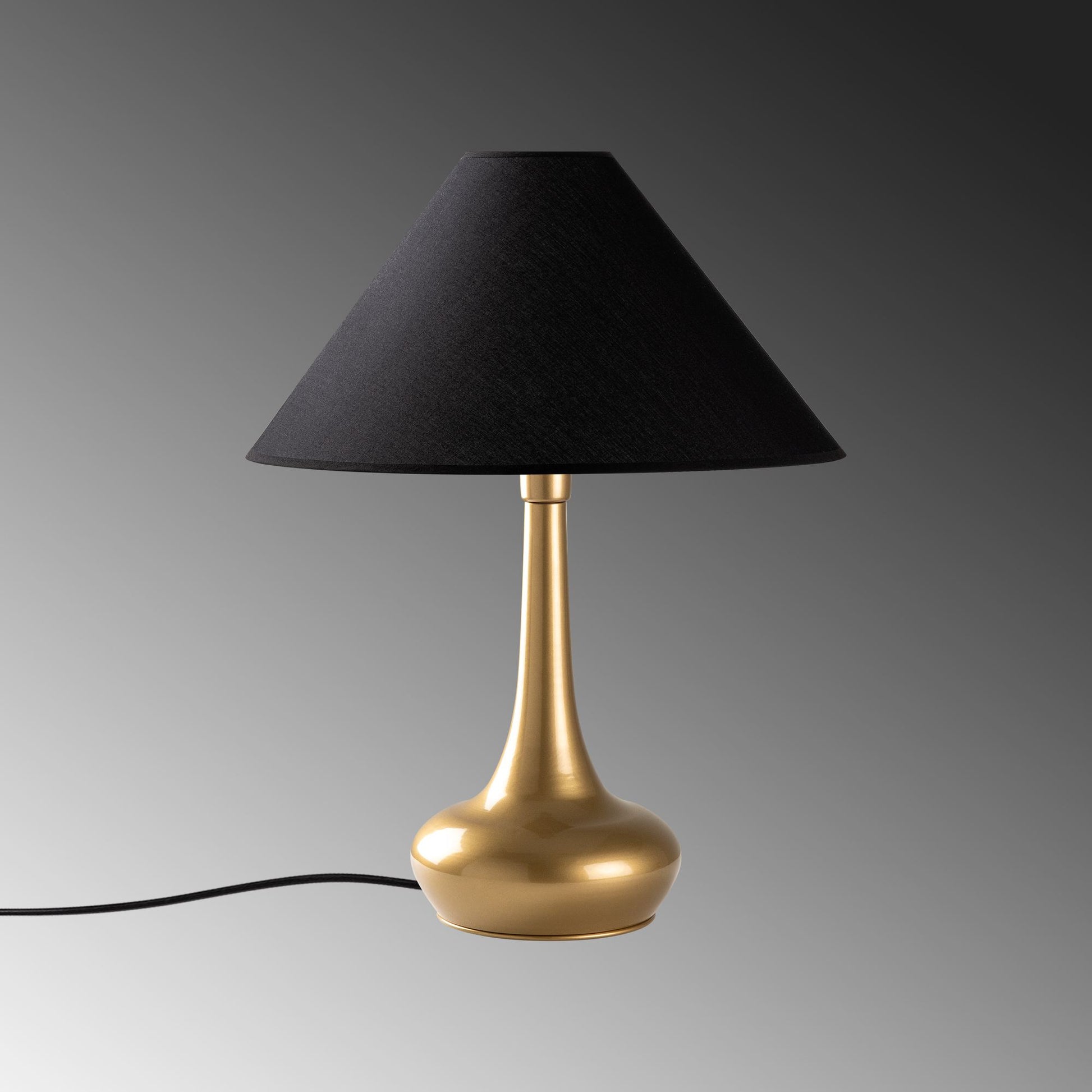 A combinação das cores dourado e preto confere a esta lâmpada de mesa um visual moderno e sofisticado que complementará qualquer decoração. O corpo de metal adiciona um toque de glamour, enquanto a cúpula de tecido suaviza a luz para um brilho quente e acolhedor.