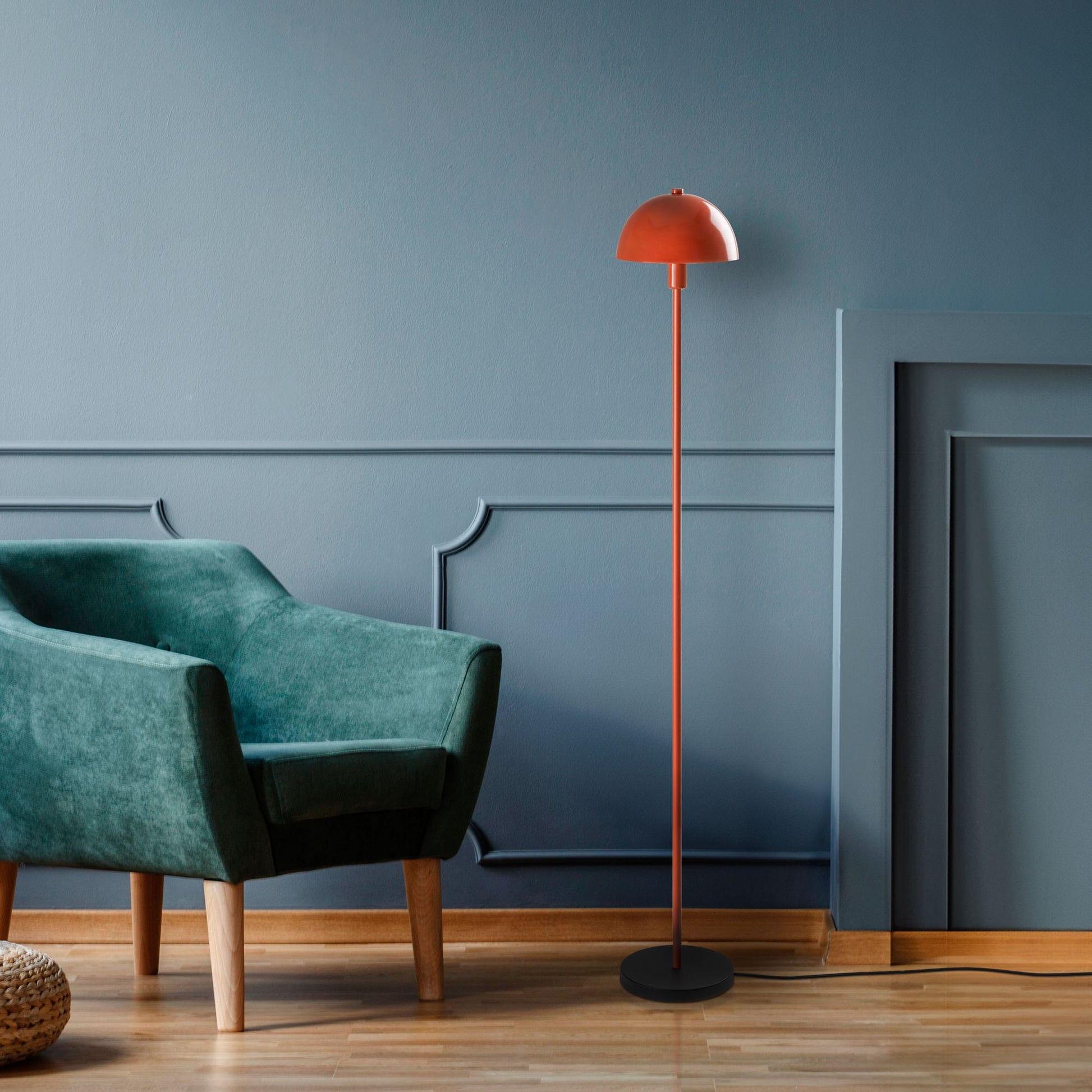 O corpo e a cúpula de metal elegante desta luminária de chão conferem a ela um visual contemporâneo e estiloso que complementará qualquer estilo de decoração. A vibrante cor laranja adiciona um toque divertido e lúdico, tornando esta luminária uma peça de destaque em qualquer ambiente.