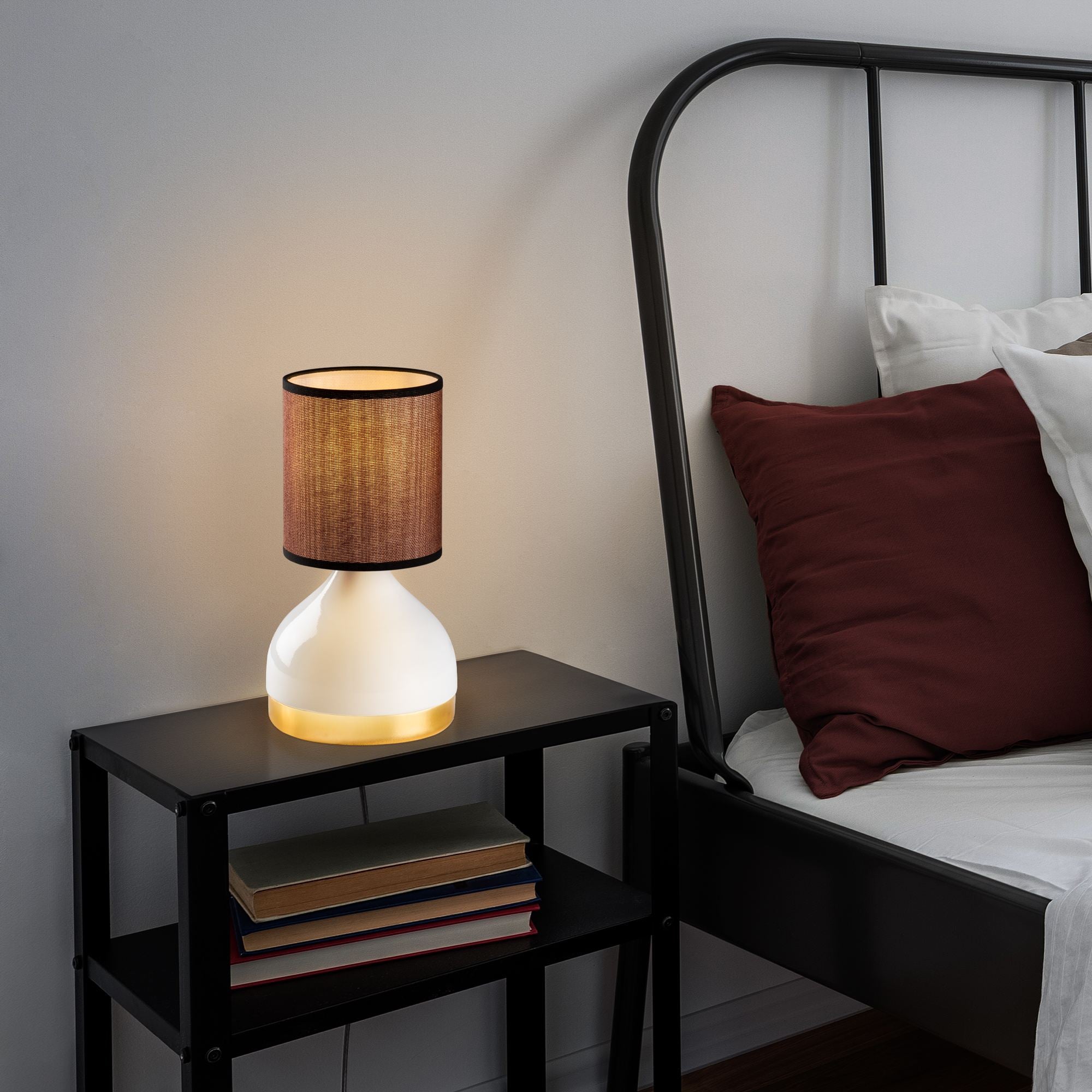 A Lâmpada de Mesa com Corpo de Metal é a adição perfeita para qualquer cômodo da sua casa. Seja colocada em uma mesa lateral na sua sala de estar ou em sua mesa de cabeceira, esta lâmpada criará uma atmosfera acolhedora e convidativa. A combinação de cores branca e marrom adiciona um toque estiloso a qualquer estilo de decoração, tornando-a uma peça versátil para qualquer espaço.