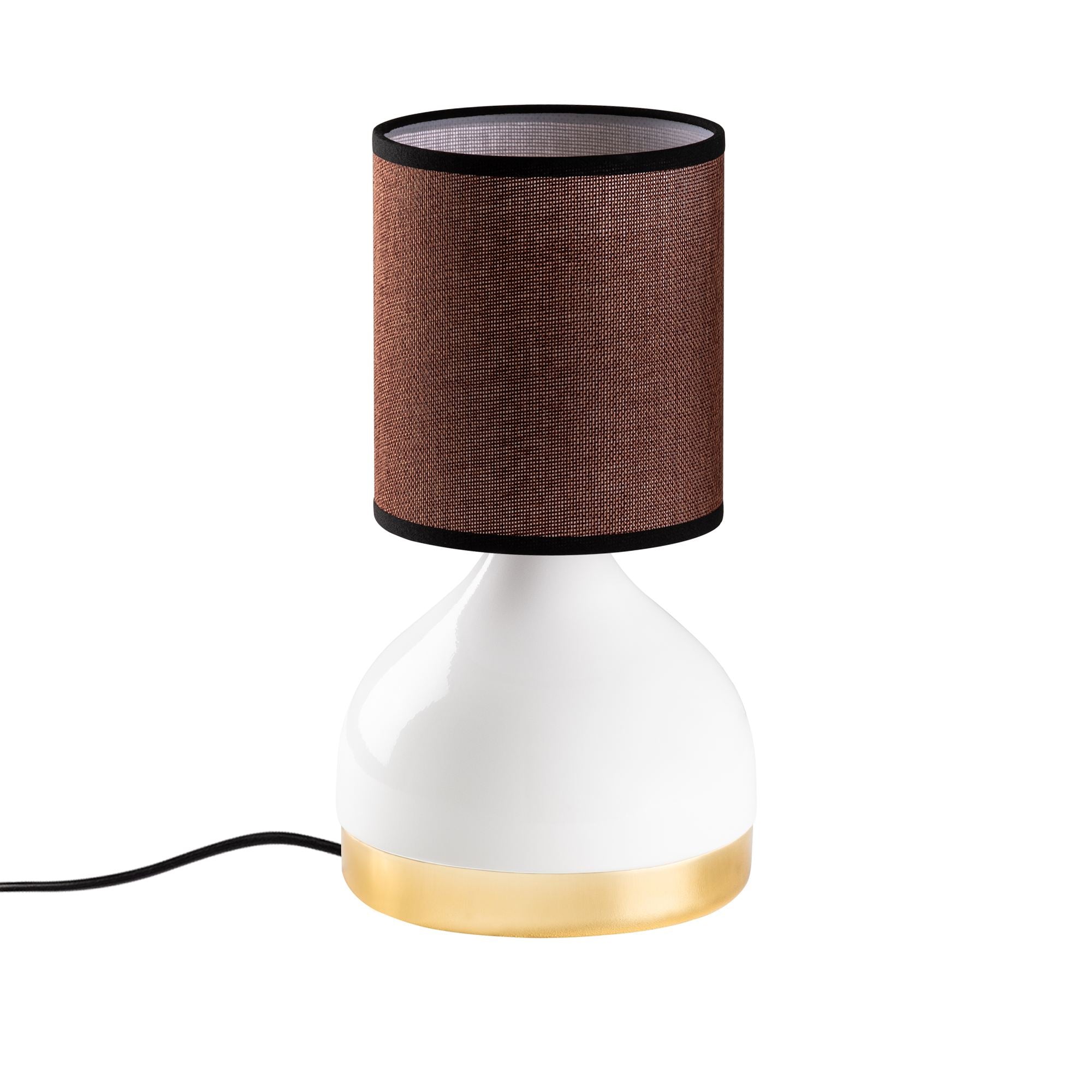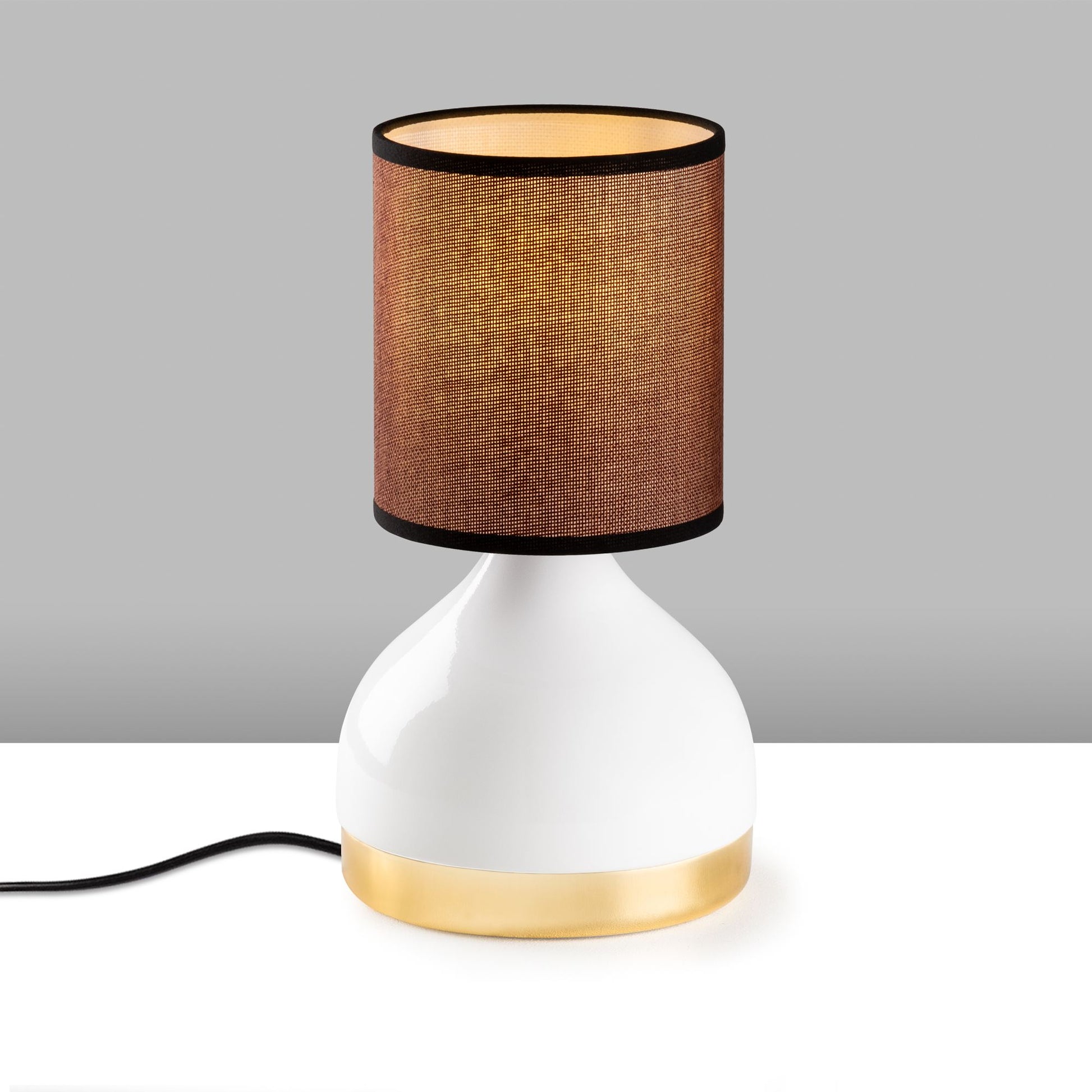 Candeeiro de Mesa – 17 x 17 x 33 cm – Branco e Marrom – Metal e Tecido