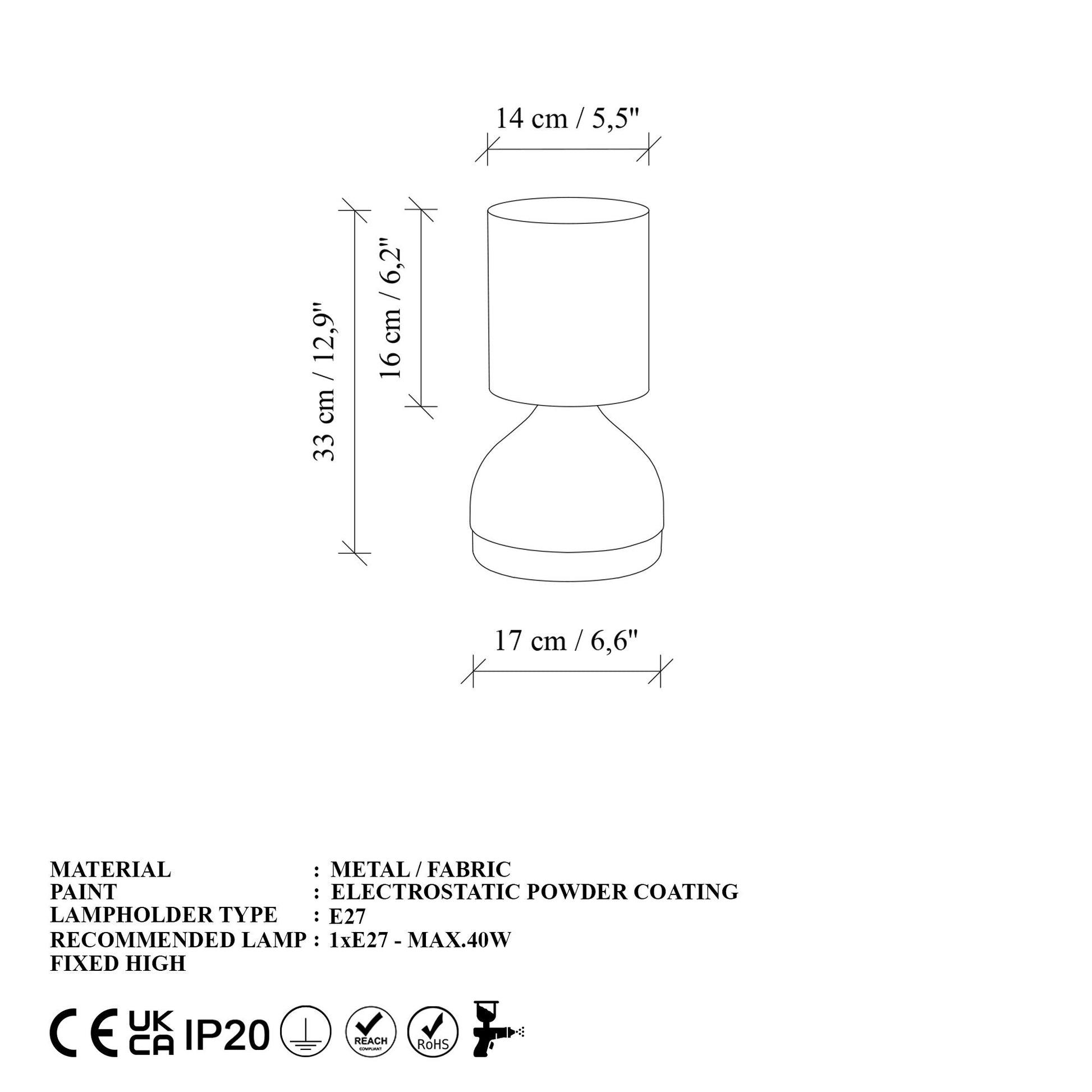 Com um tamanho de 17 x 17 x 33 cm, esta lâmpada é o tamanho ideal para qualquer mesa ou escrivaninha. A cúpula de Ø14 cm garante um feixe de luz focado, perfeito para leitura ou trabalho. O tipo de soquete 1 x E 27 Max 40 W permite uma fácil substituição da lâmpada, enquanto a voltagem de 220-240 V garante compatibilidade com a maioria das tomadas.