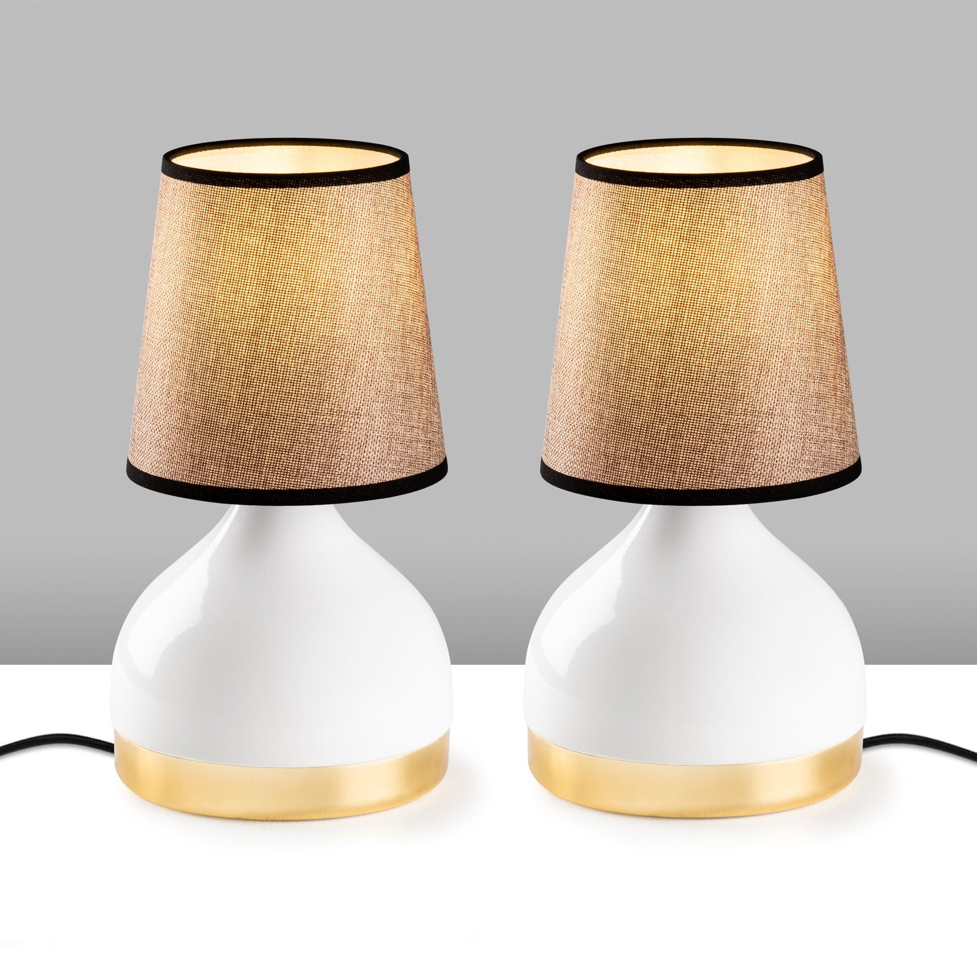 Conjunto de Candeeiros de Mesa – 17 x 17 x 33 cm – Branco e Marrom Claro – Metal e Tecido