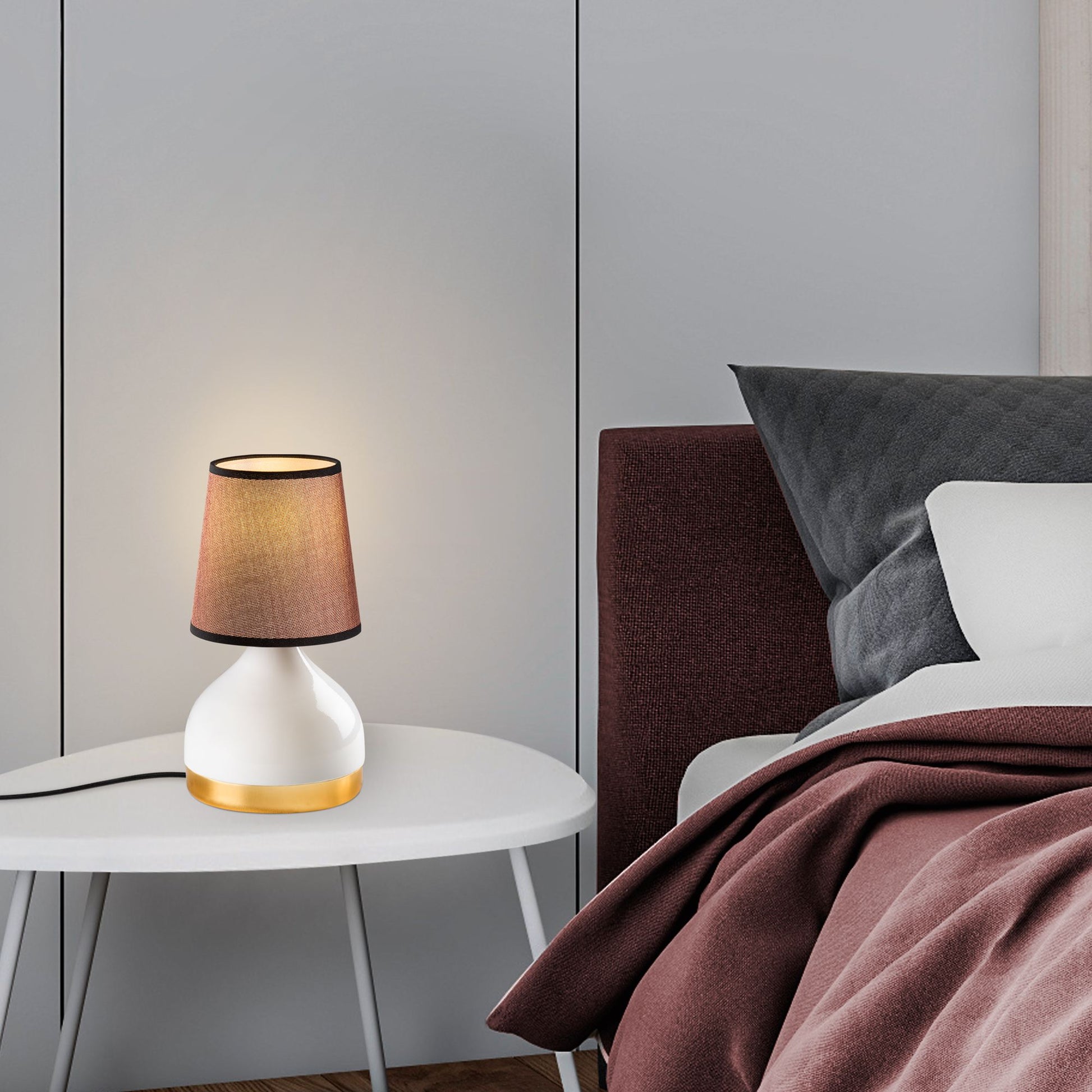 Ilumine seu espaço com nossa deslumbrante Lâmpada de Mesa com Corpo de Metal. Esta elegante lâmpada apresenta um corpo de metal elegante com uma cúpula de tecido, adicionando um toque de sofisticação a qualquer ambiente. A combinação perfeita de design moderno e funcionalidade, esta lâmpada elevará instantaneamente a decoração da sua casa.
