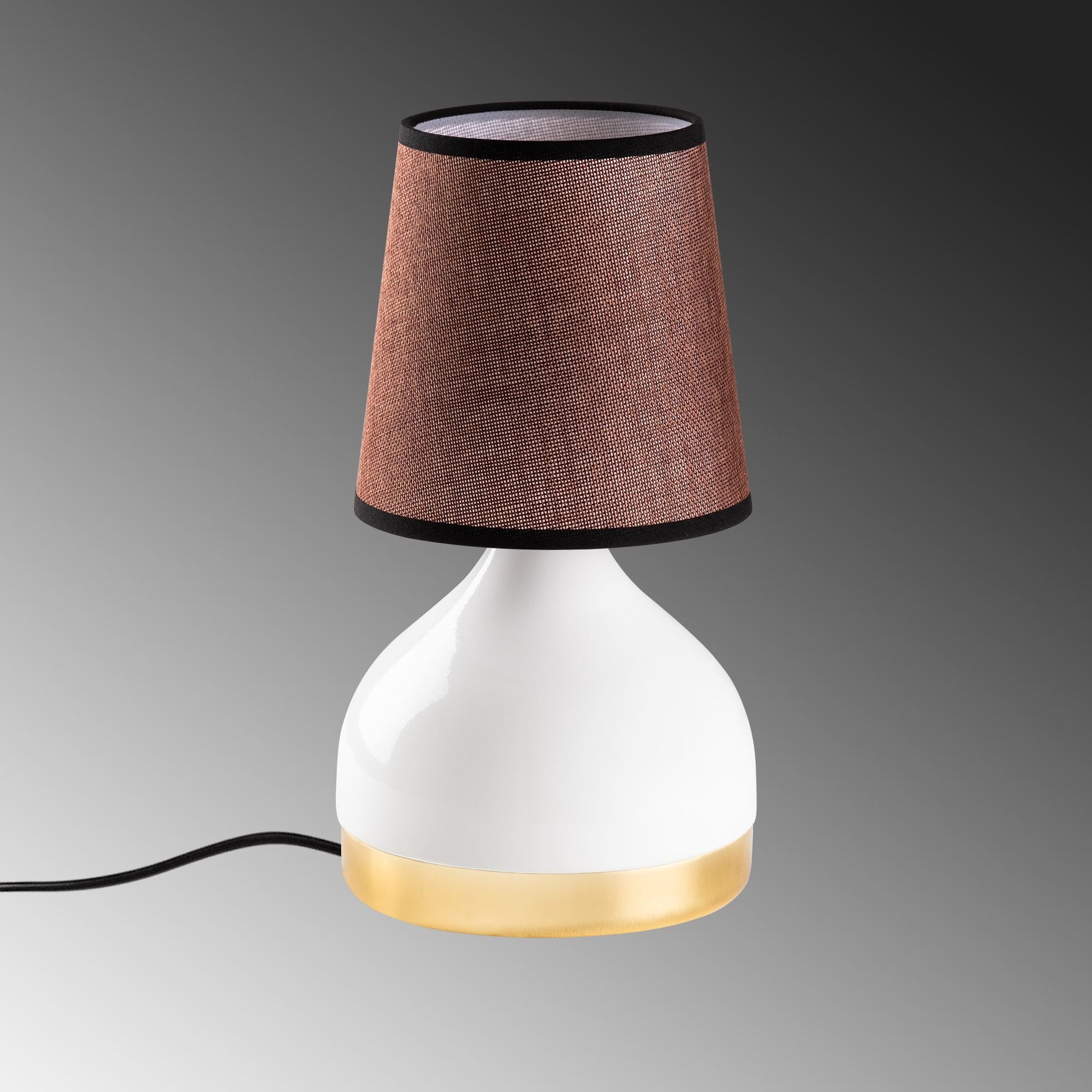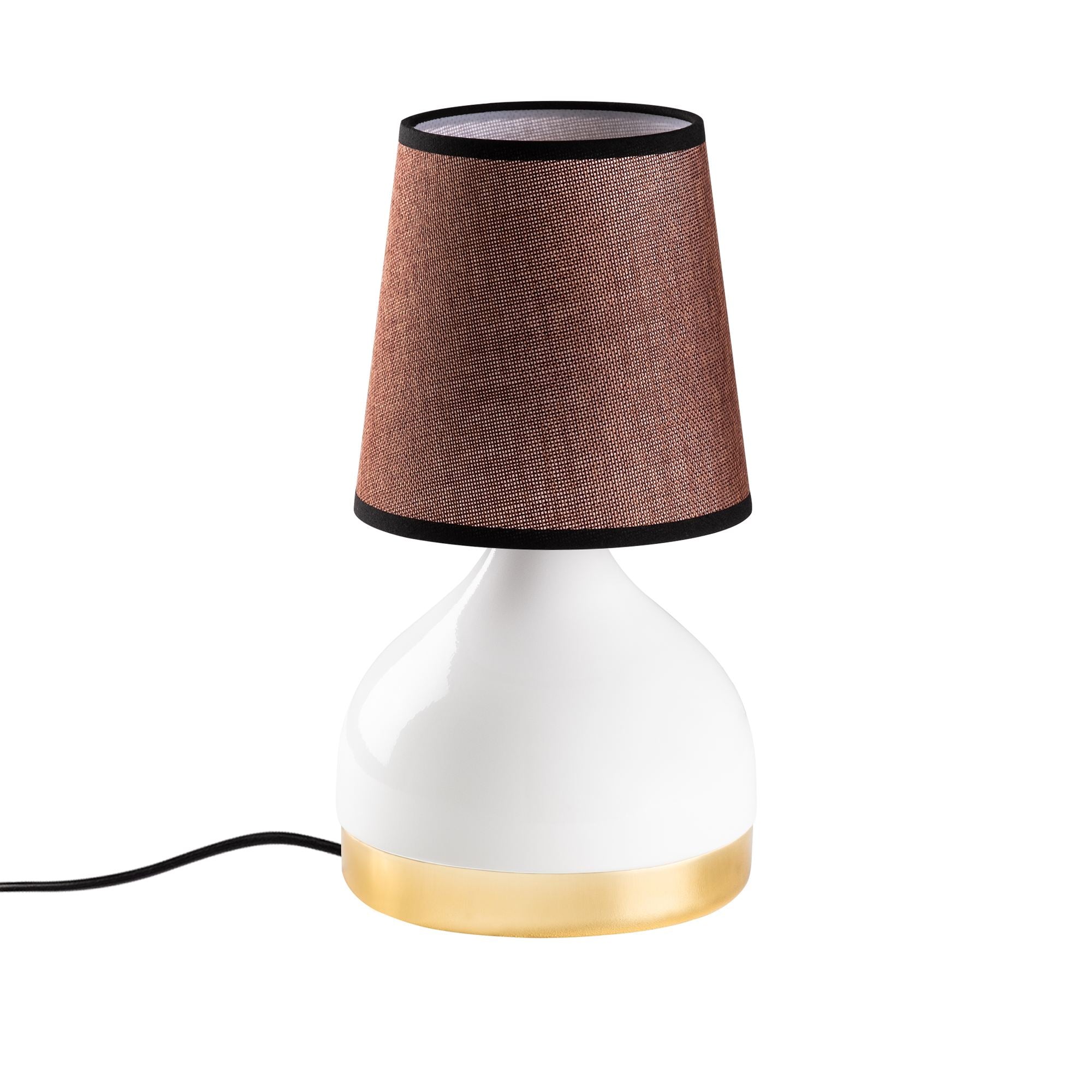 Candeeiro de Mesa – 17 x 17 x 33 cm – Branco e Marrom – Metal e Tecido