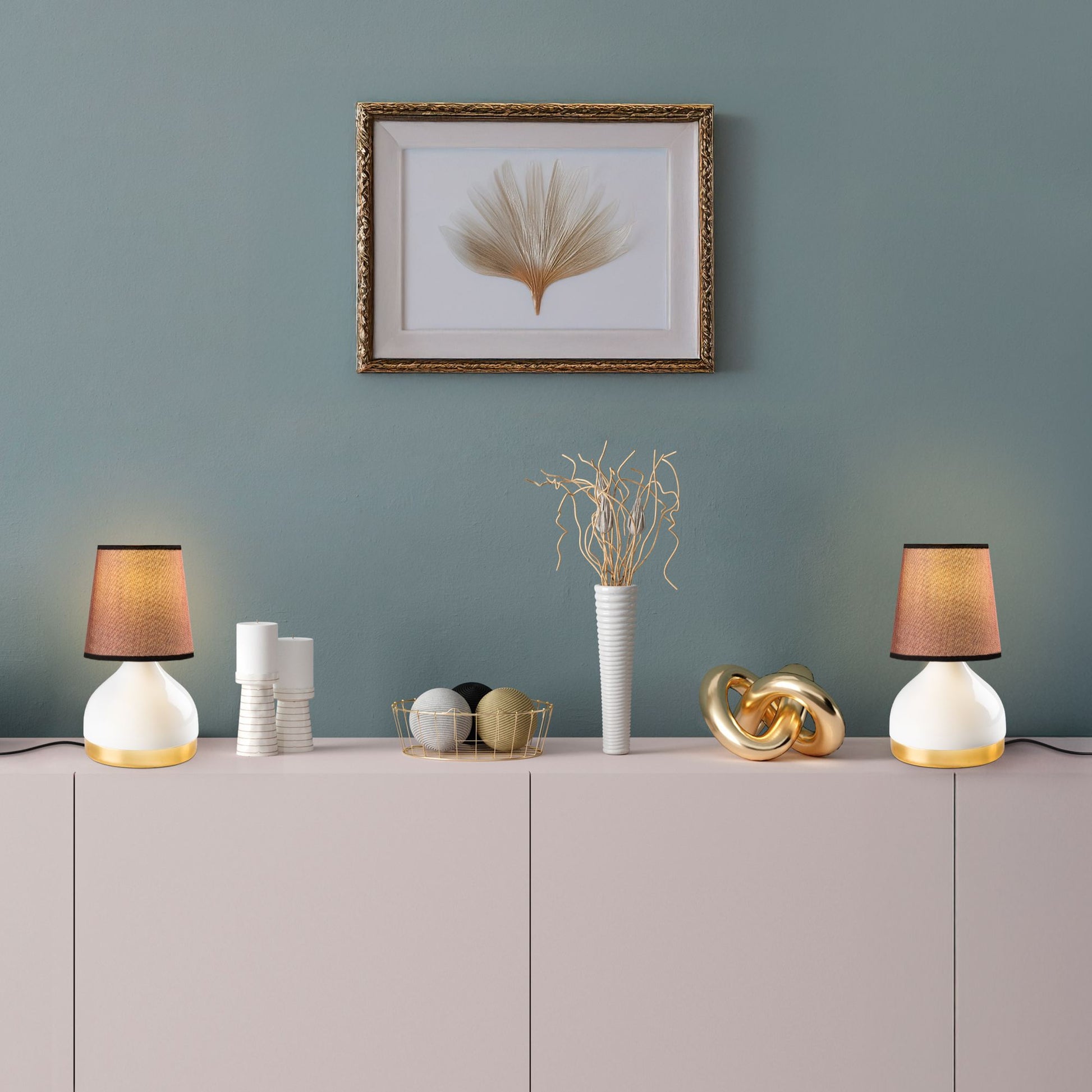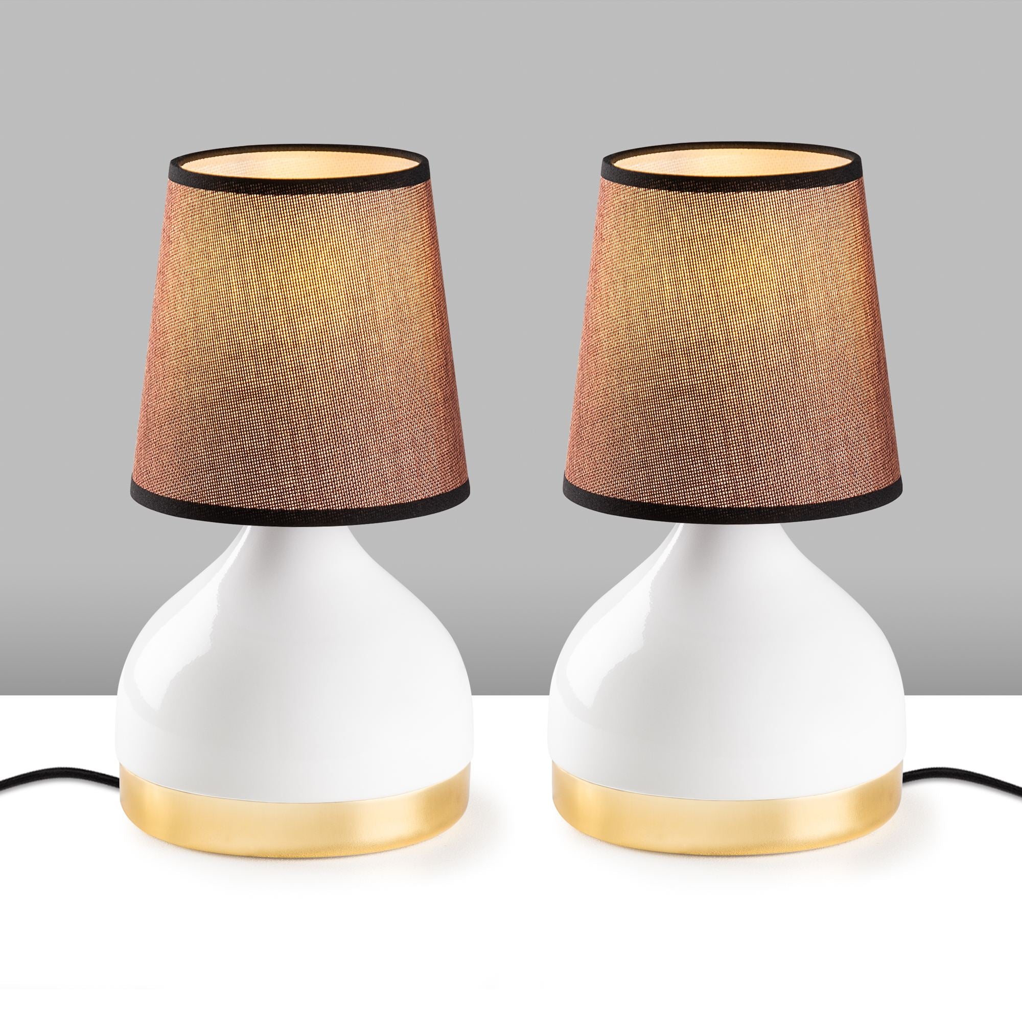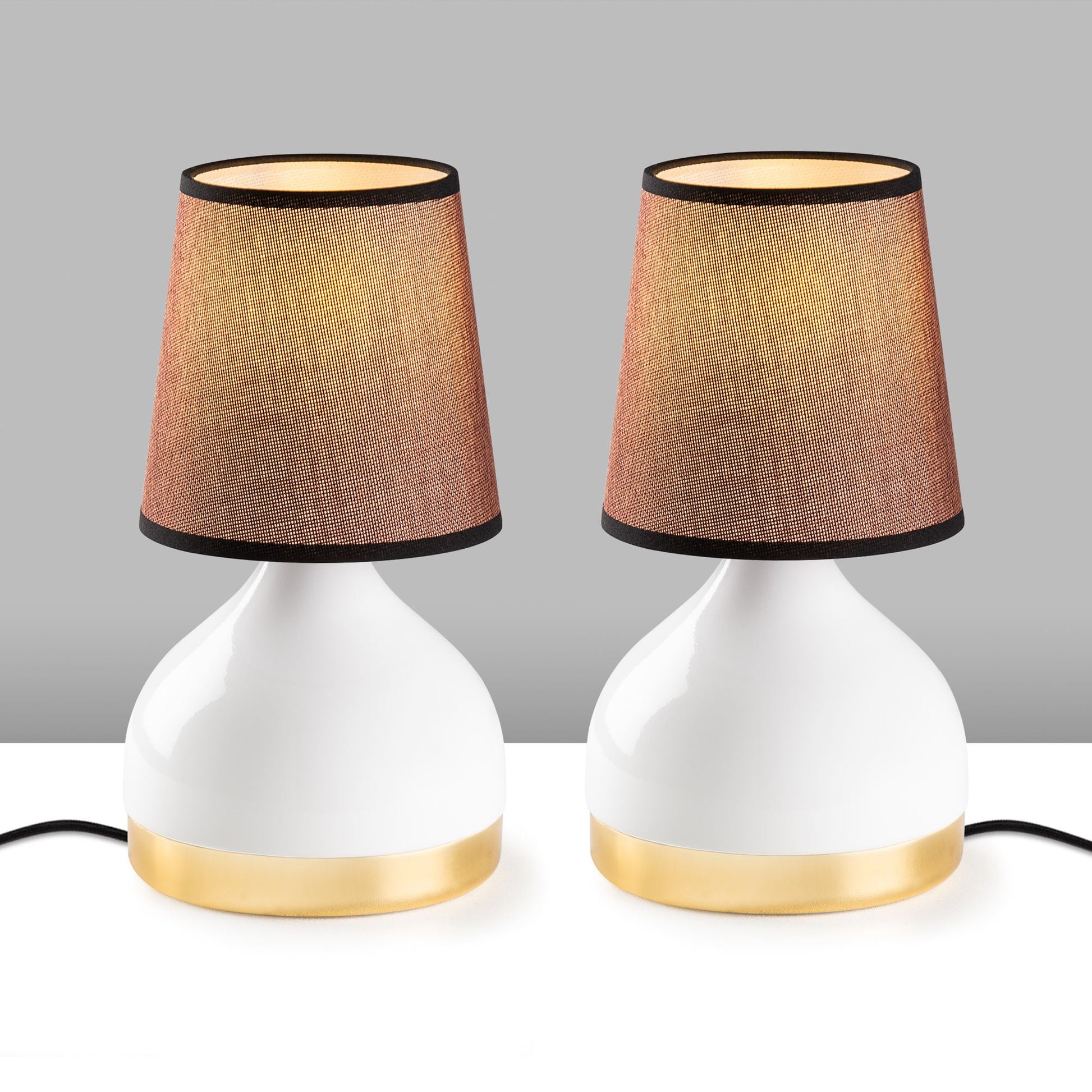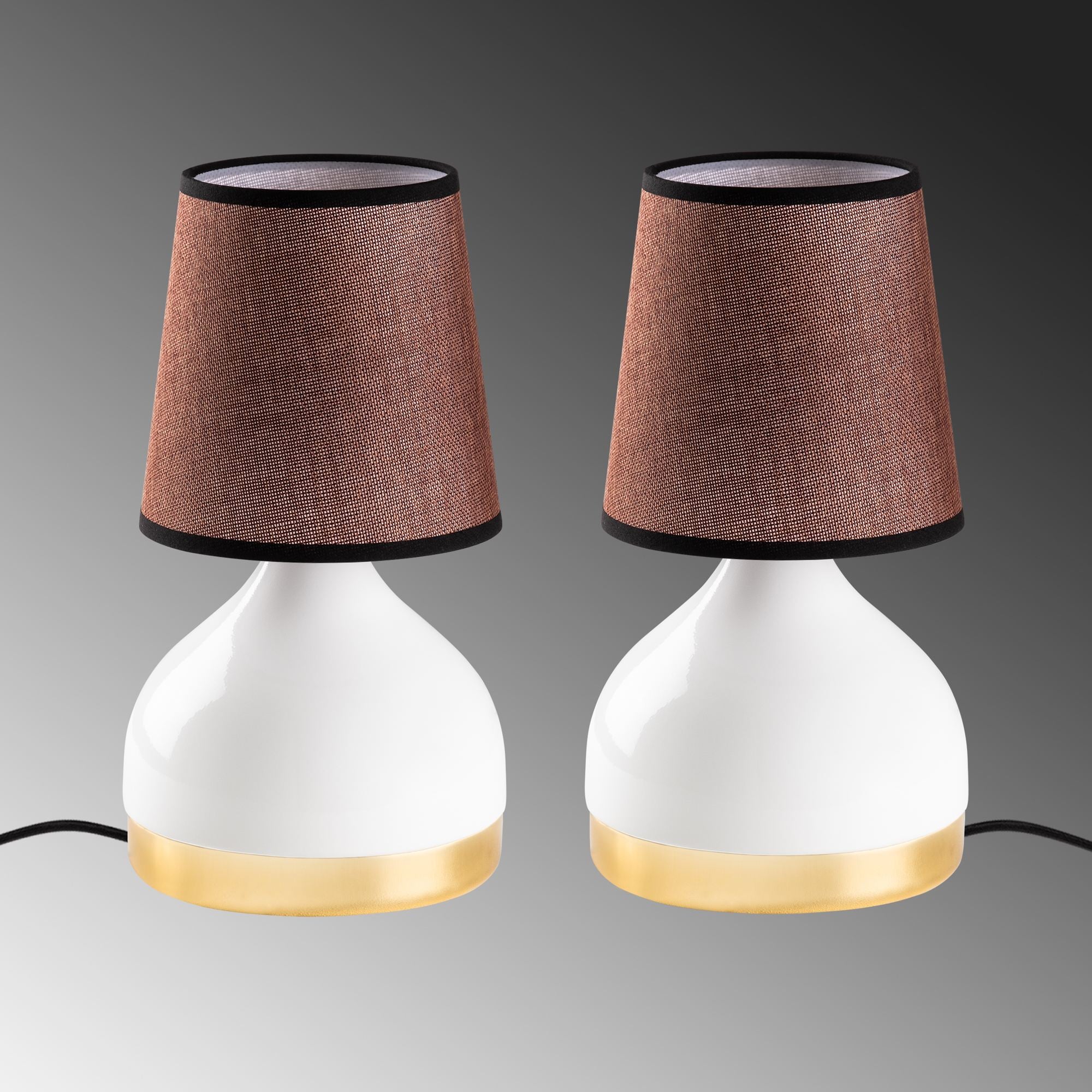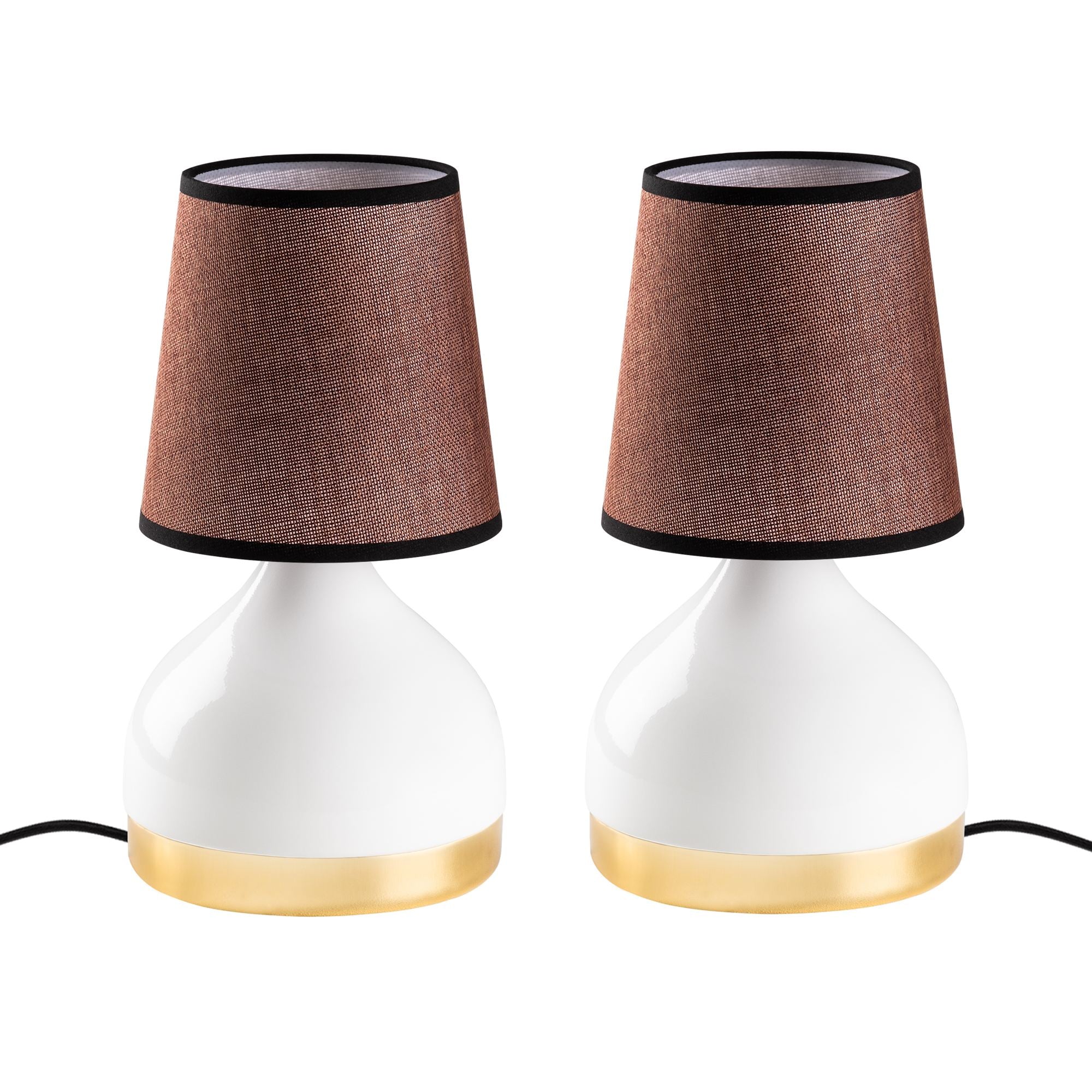 Conjunto de Candeeiros de Mesa – 17 x 17 x 33 cm – Branco e Marrom Claro – Metal