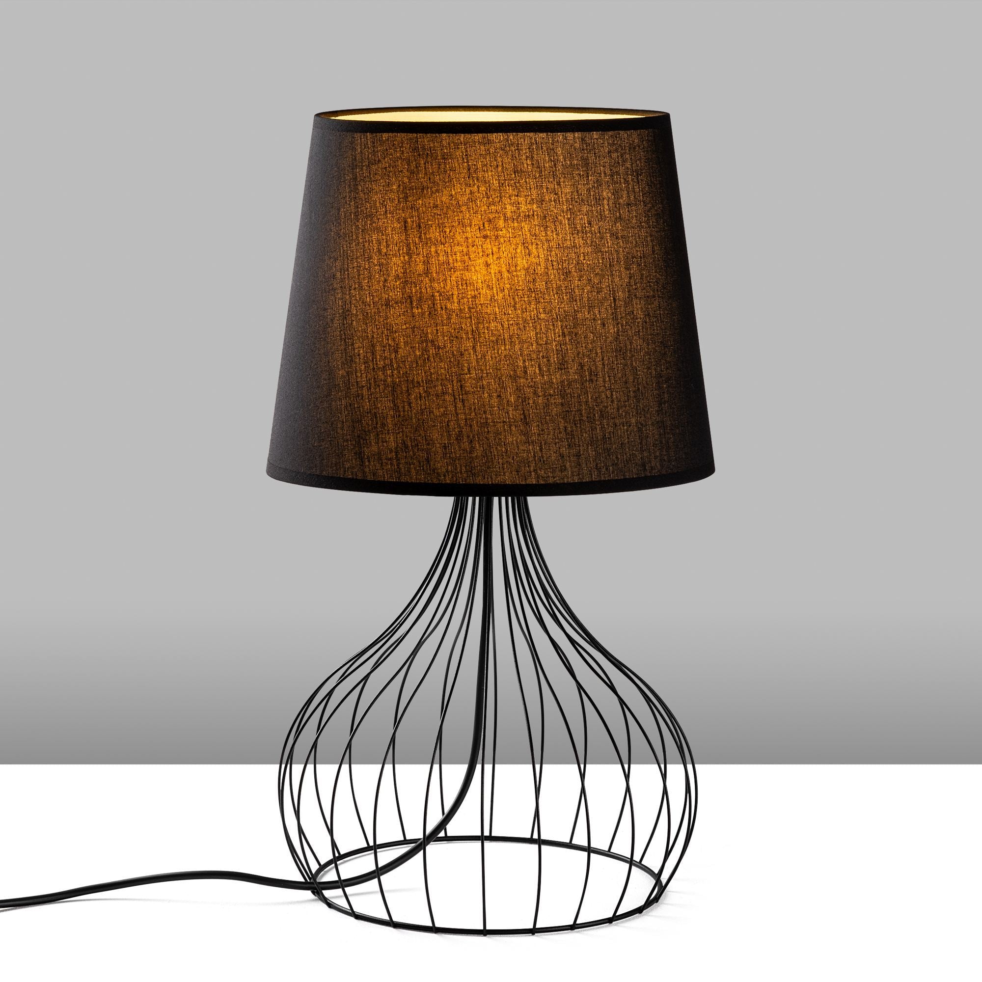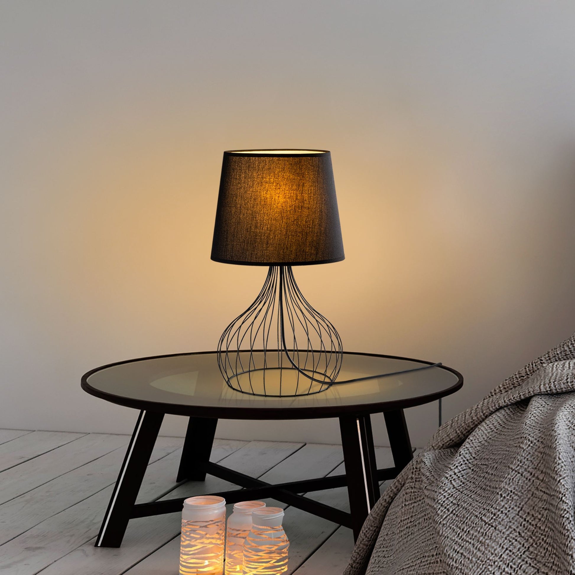 A Lâmpada de Mesa com Corpo de Metal possui um design moderno e elegante que complementará qualquer decoração. A cor preta adiciona um toque chique ao seu espaço, enquanto a cúpula de tecido suaviza a luz para um ambiente aconchegante.