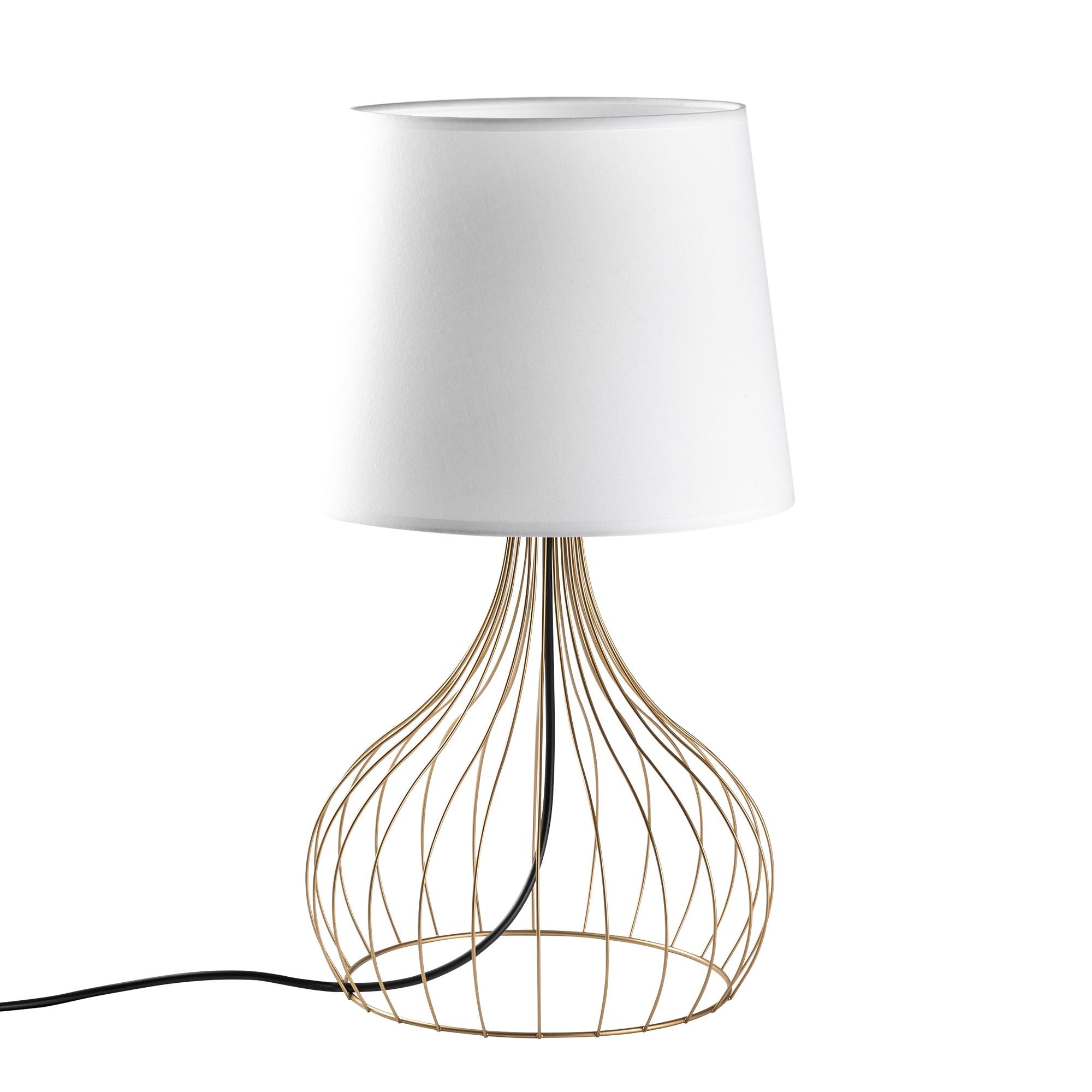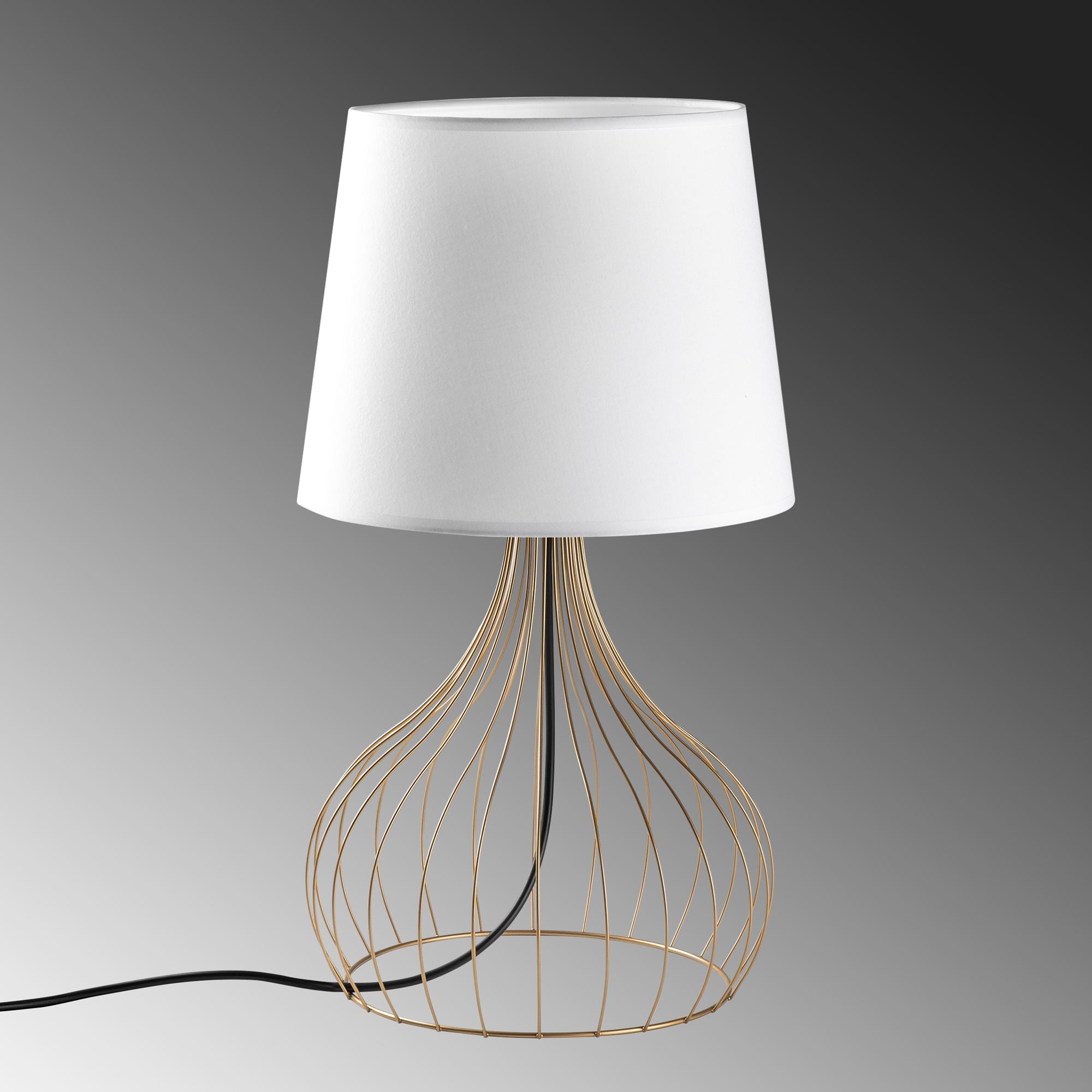 Candeeiro de Mesa – 28 x 28 x 51 cm – Dourado e Branco – Metal