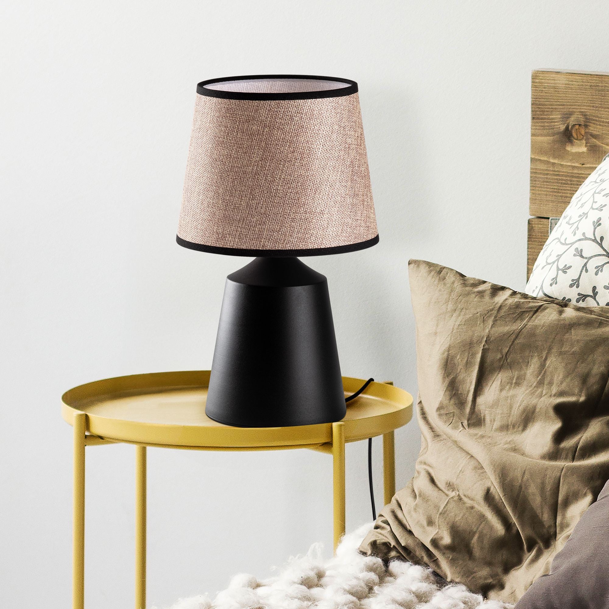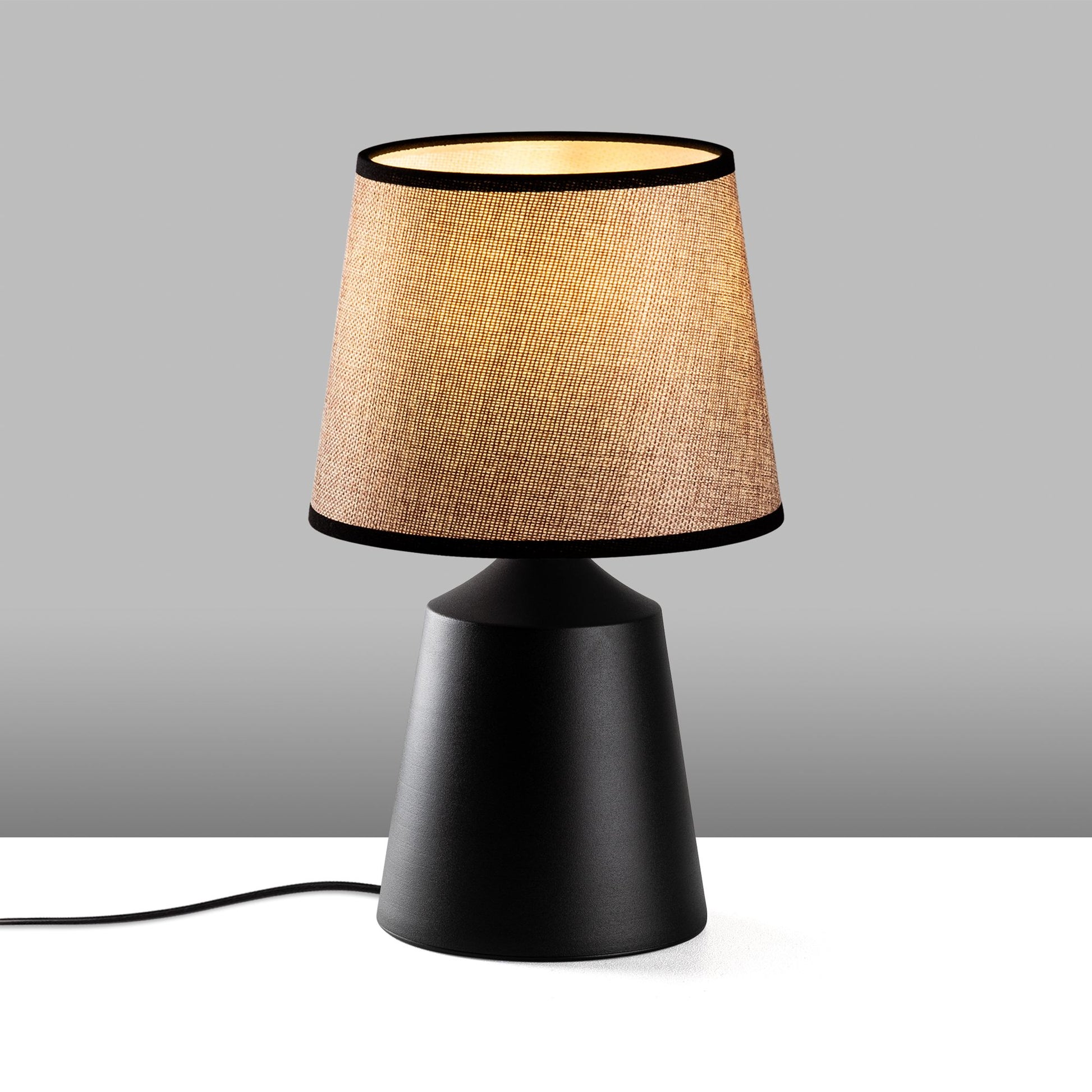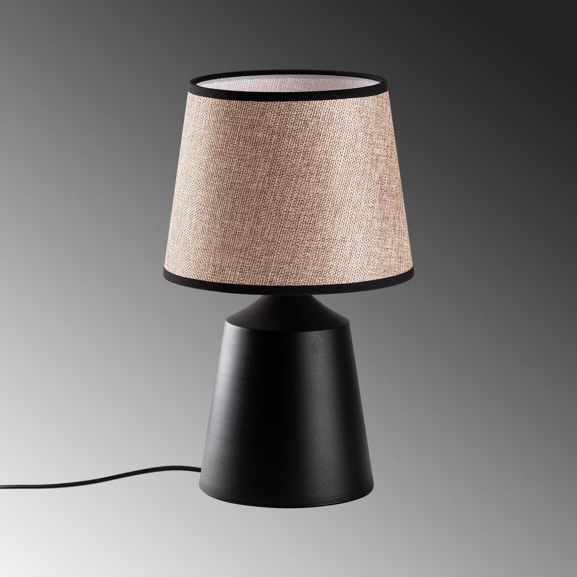 Candeeiro de Mesa – 28 x 28 x 49 cm – Preto e Bege – Metálico com cúpula de tecido