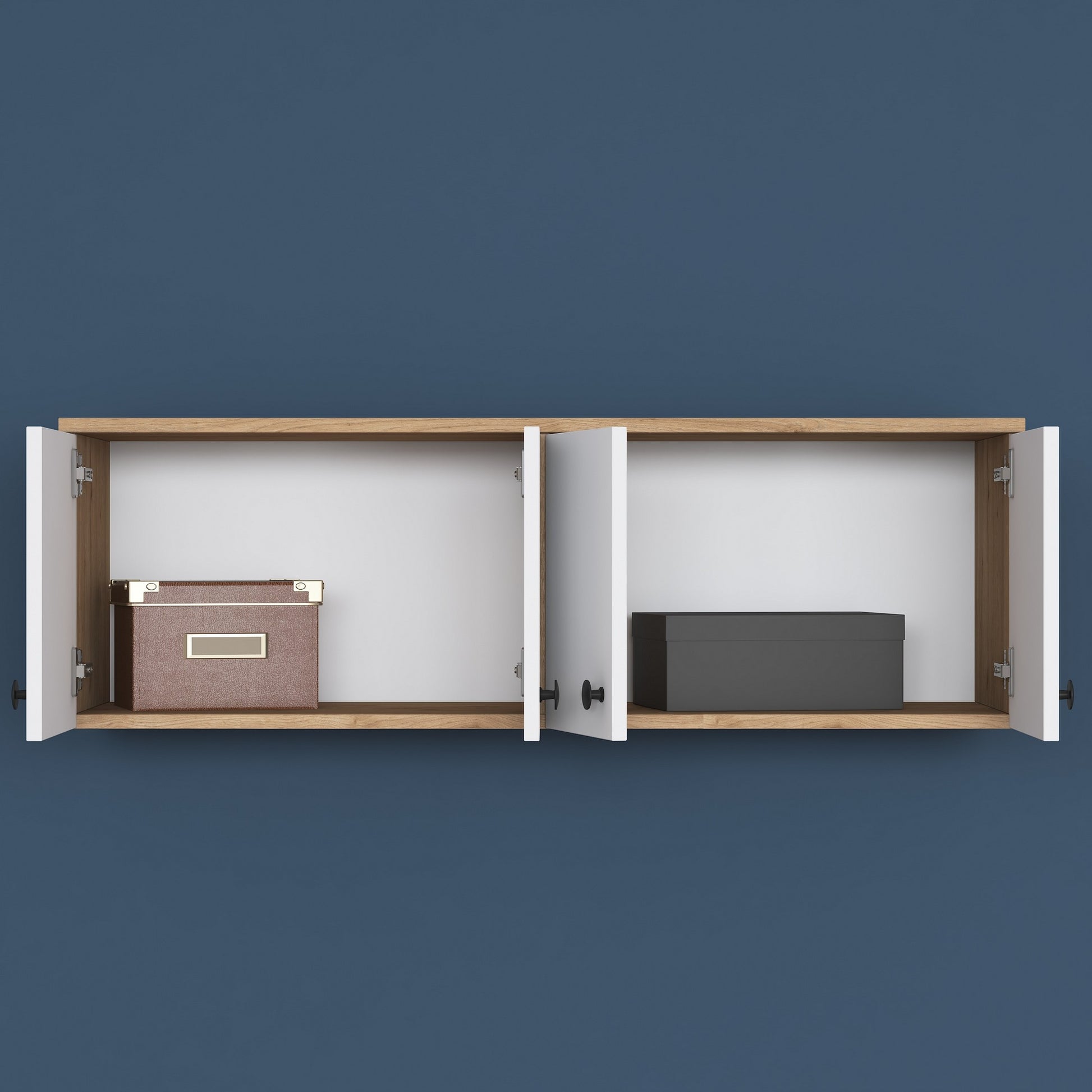 Este armário de parede pode ser facilmente fixado à parede, proporcionando uma solução de armazenamento segura e estável. O tamanho compacto de 119,6 cm de largura, 43,6 cm de altura e 37,5 cm de profundidade o torna ideal para espaços menores, enquanto ainda oferece muitas opções de armazenamento.