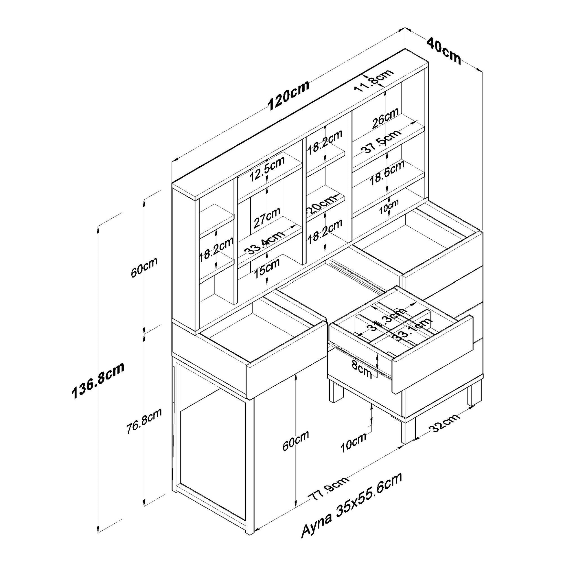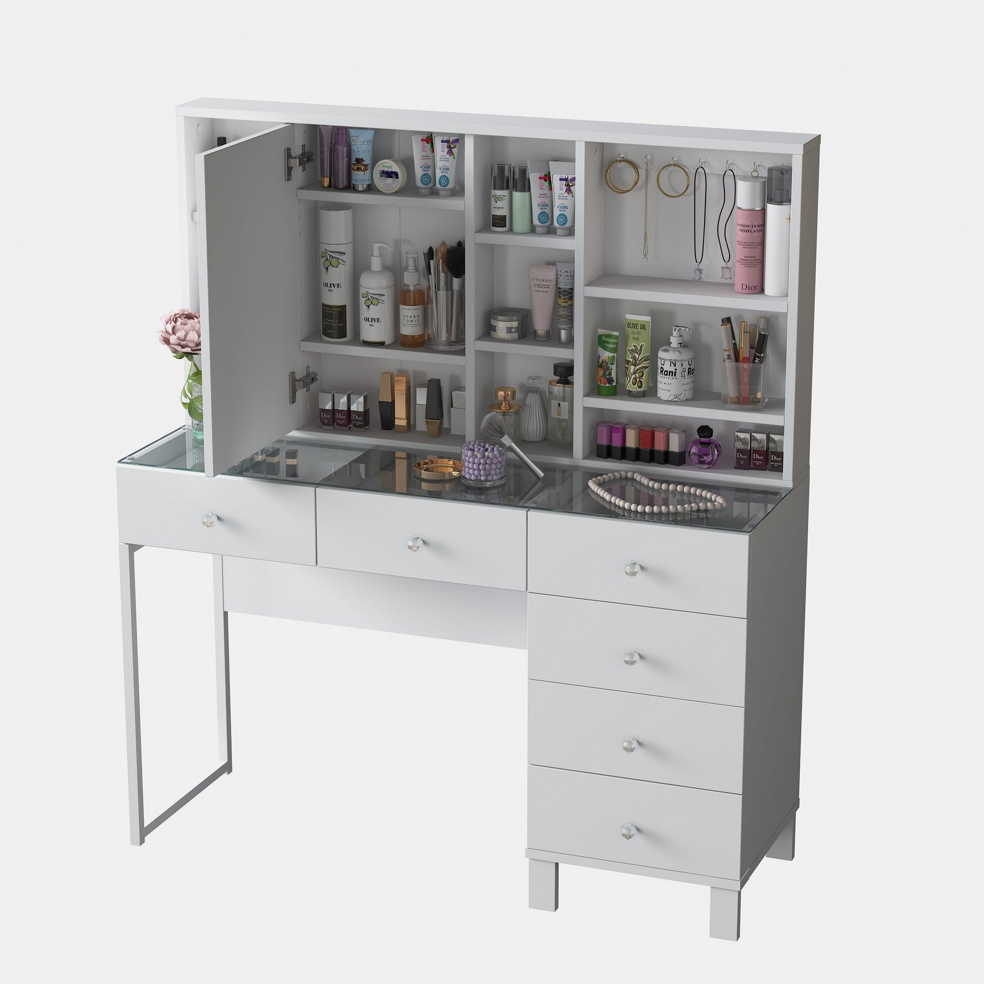 Diga adeus a bancadas e gavetas bagunçadas. Nossa mesa de maquiagem possui várias prateleiras e espaço de armazenamento adicional para manter todos os seus itens de beleza organizados e ao seu alcance. Desde pincéis de maquiagem até produtos de cuidados com a pele, tudo terá seu próprio lugar designado.