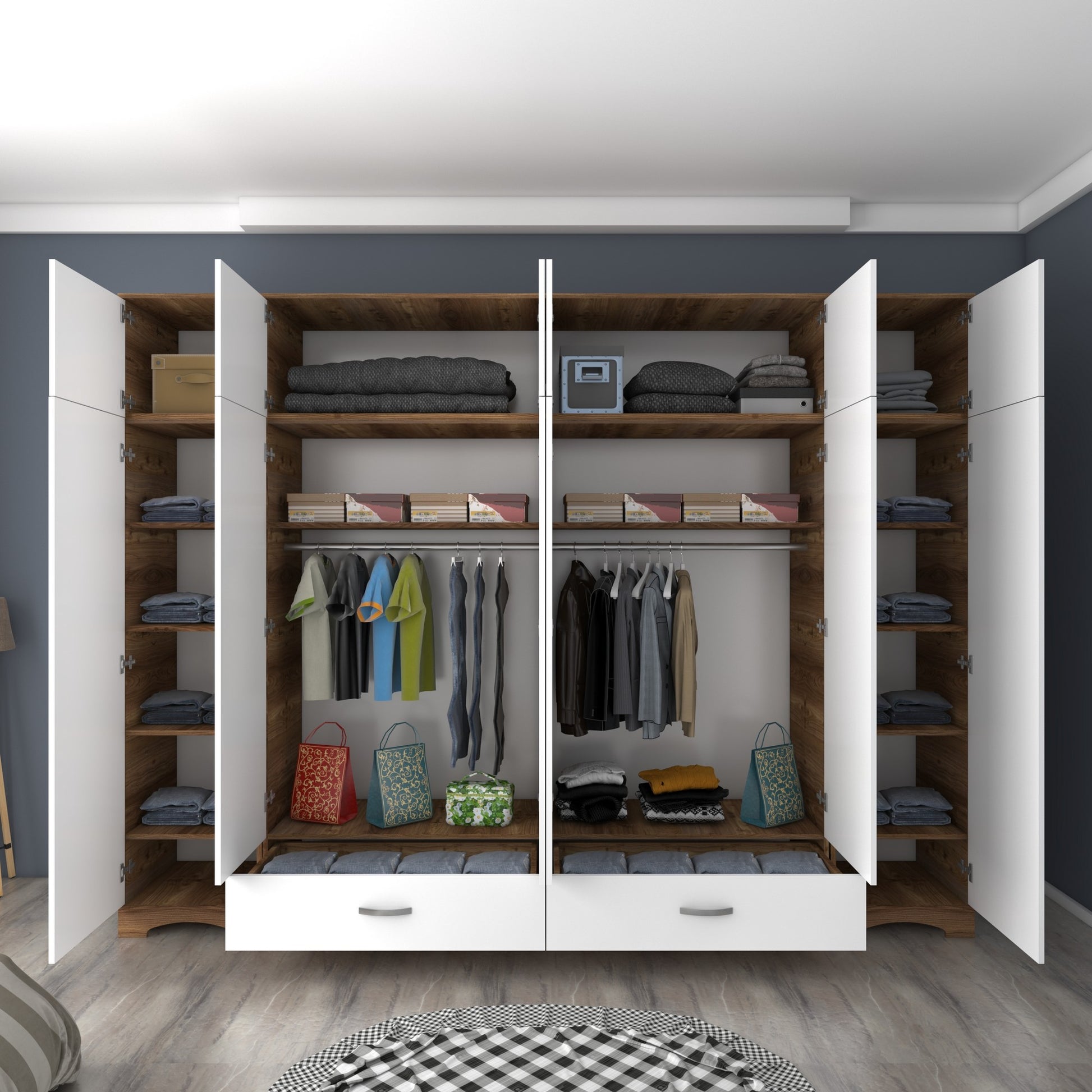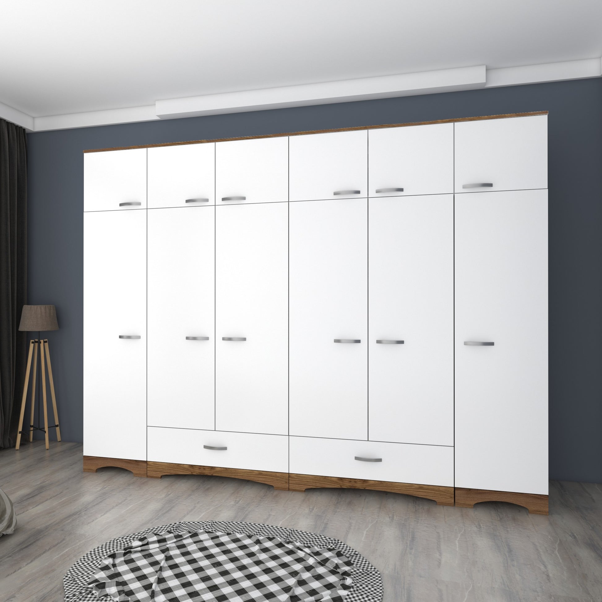 Guarda-roupa – 243cm x 226cm x 48,3cm – Nogueira e branco – Aglomerado de melamina