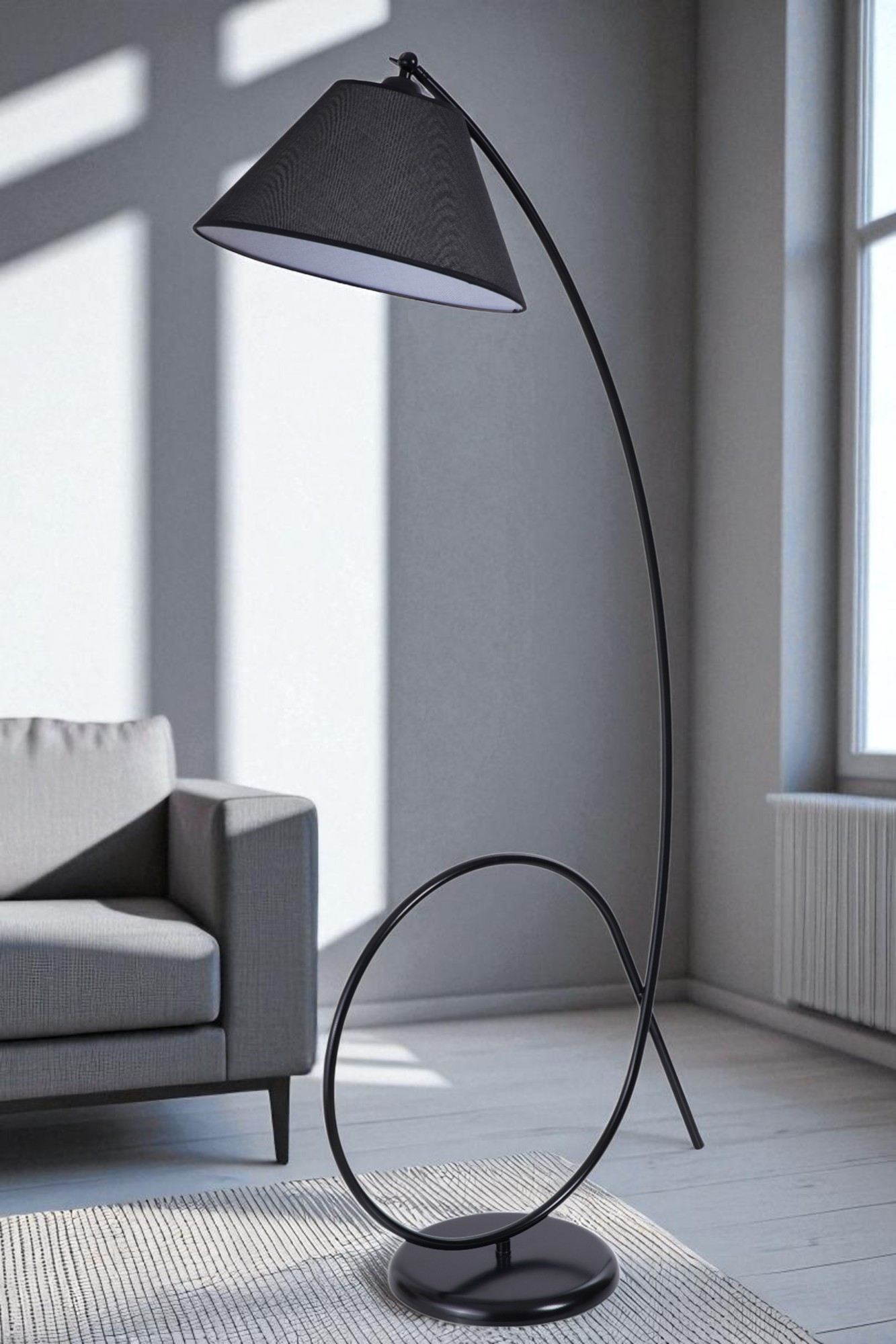 Candeeiro de Pé – Ø40 cm – Preto – Metal e Tecido