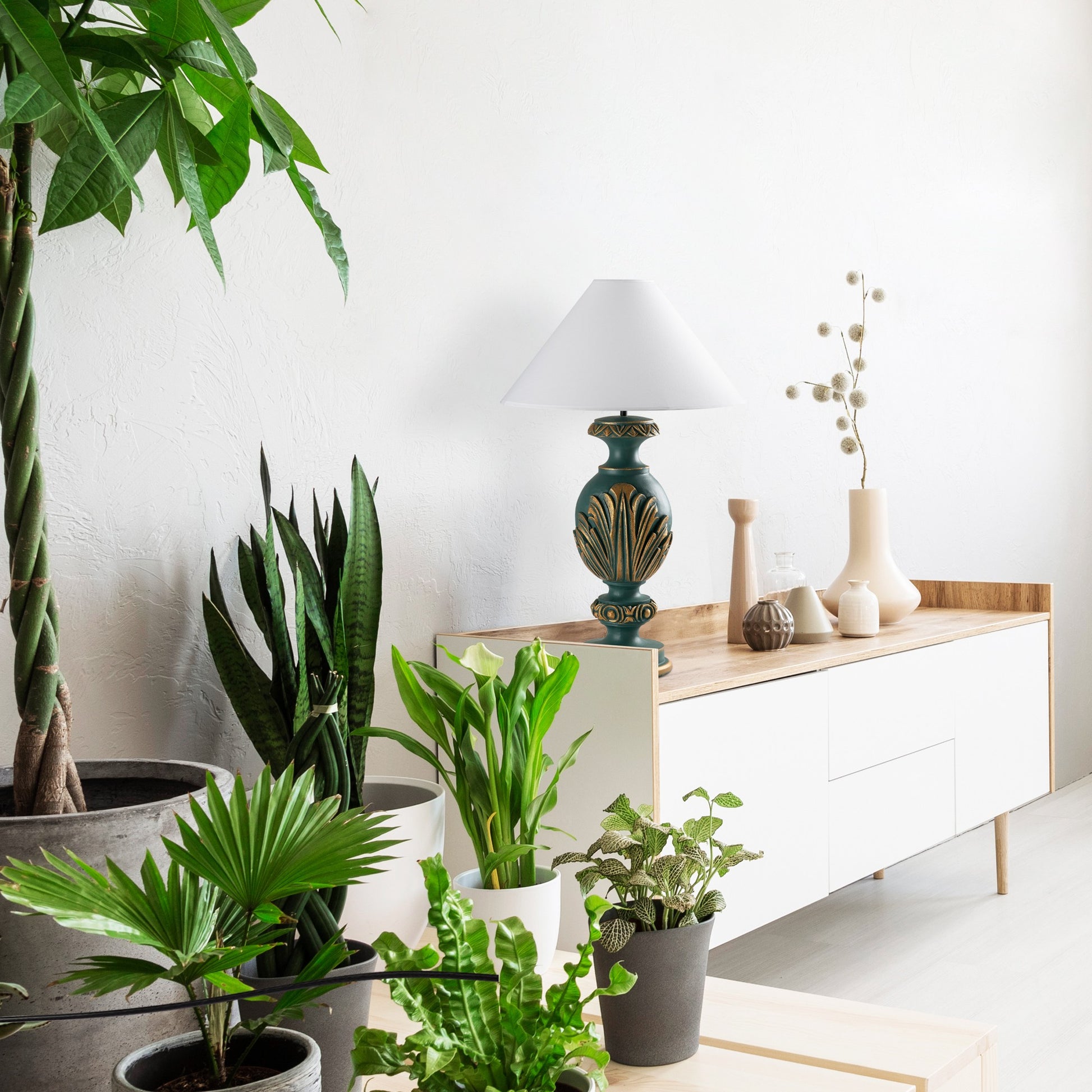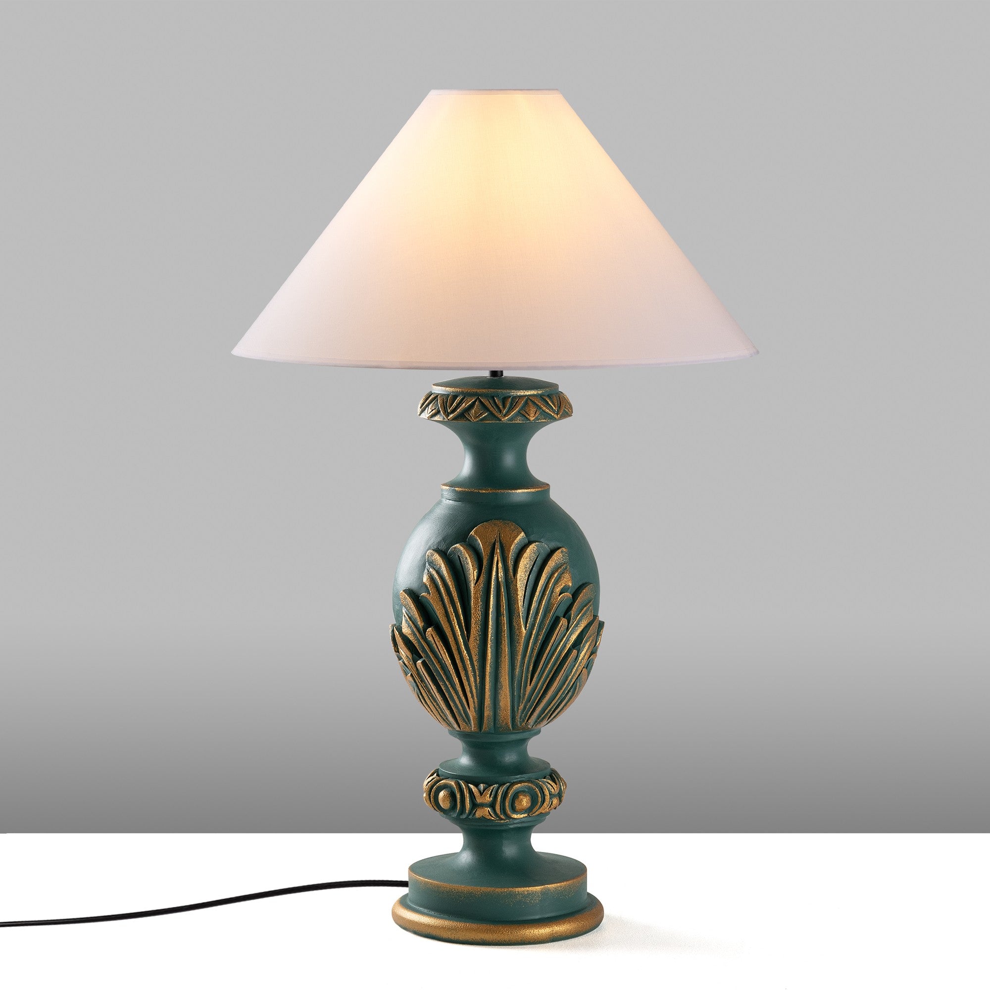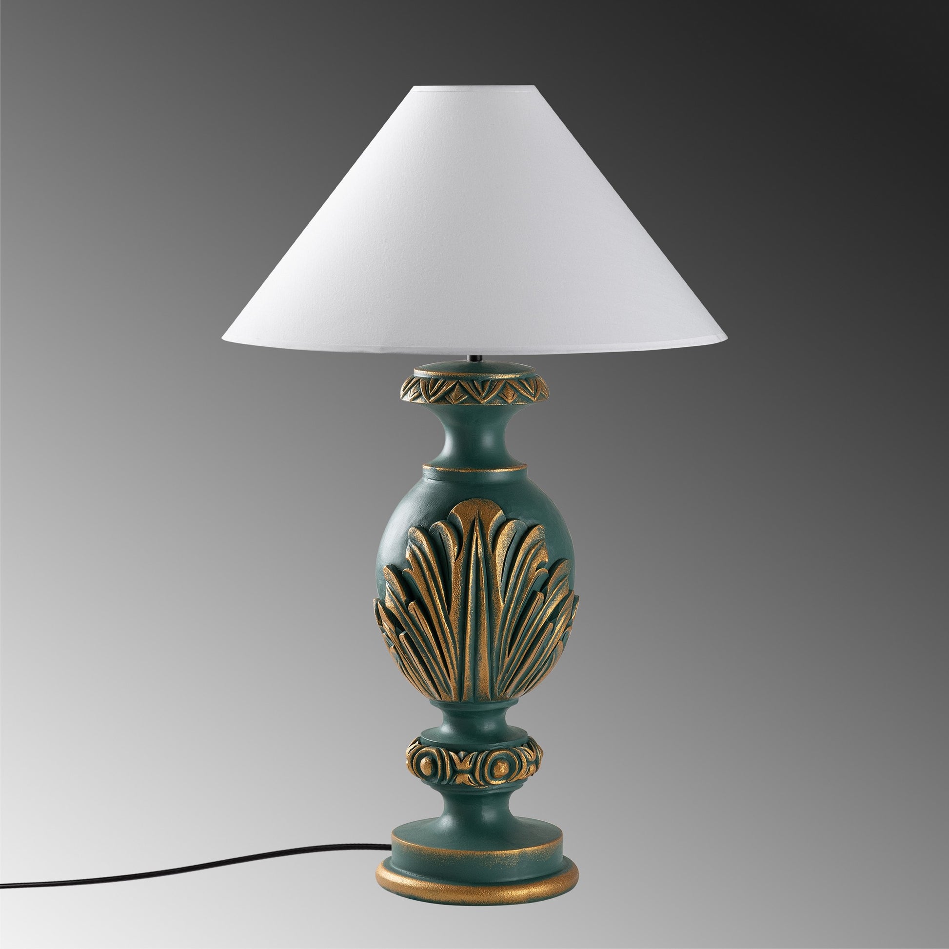 Candeeiro de Mesa – 50 x 50 x 74 cm – Verde e Branco – Tecido de Poliéster