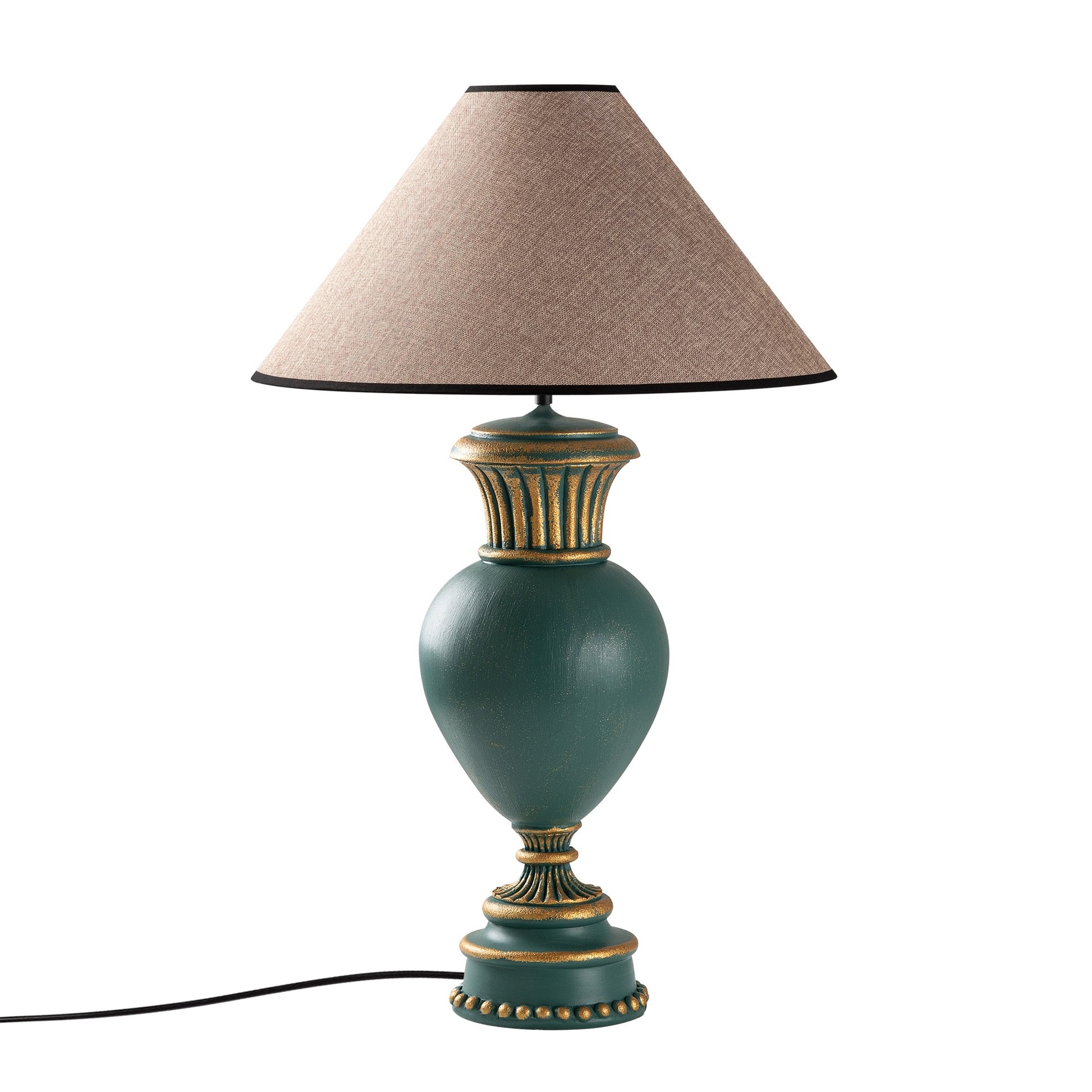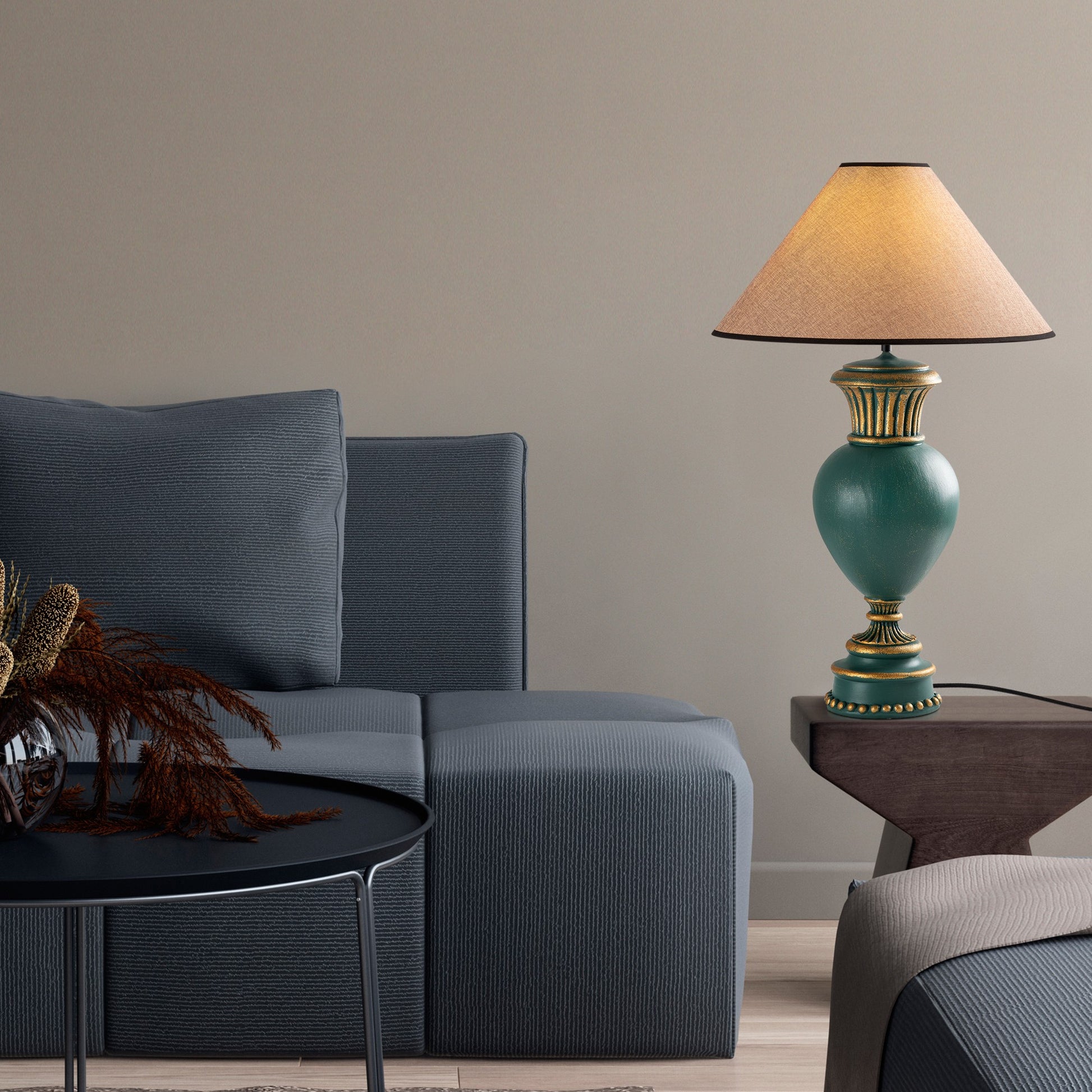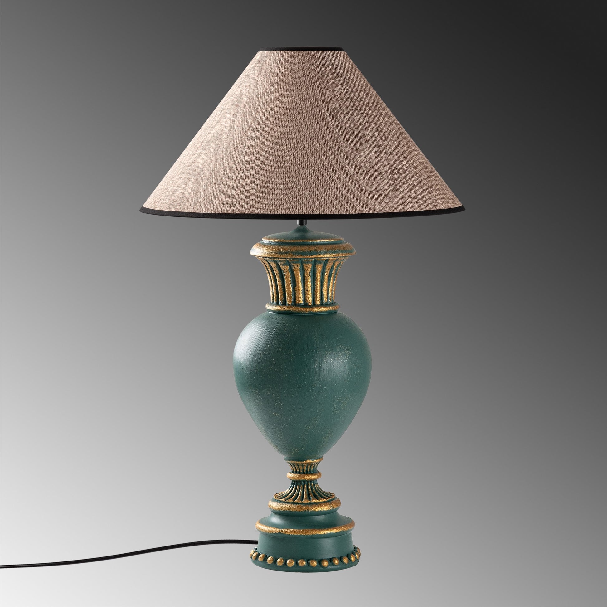 Ilumine seu espaço com o brilho encantador de nossa Lâmpada de Mesa em Tecido de Poliéster. Esta peça deslumbrante apresenta uma cúpula de tecido única em uma bela combinação de cores Verde e Marrom Claro, adicionando um toque de elegância a qualquer ambiente.