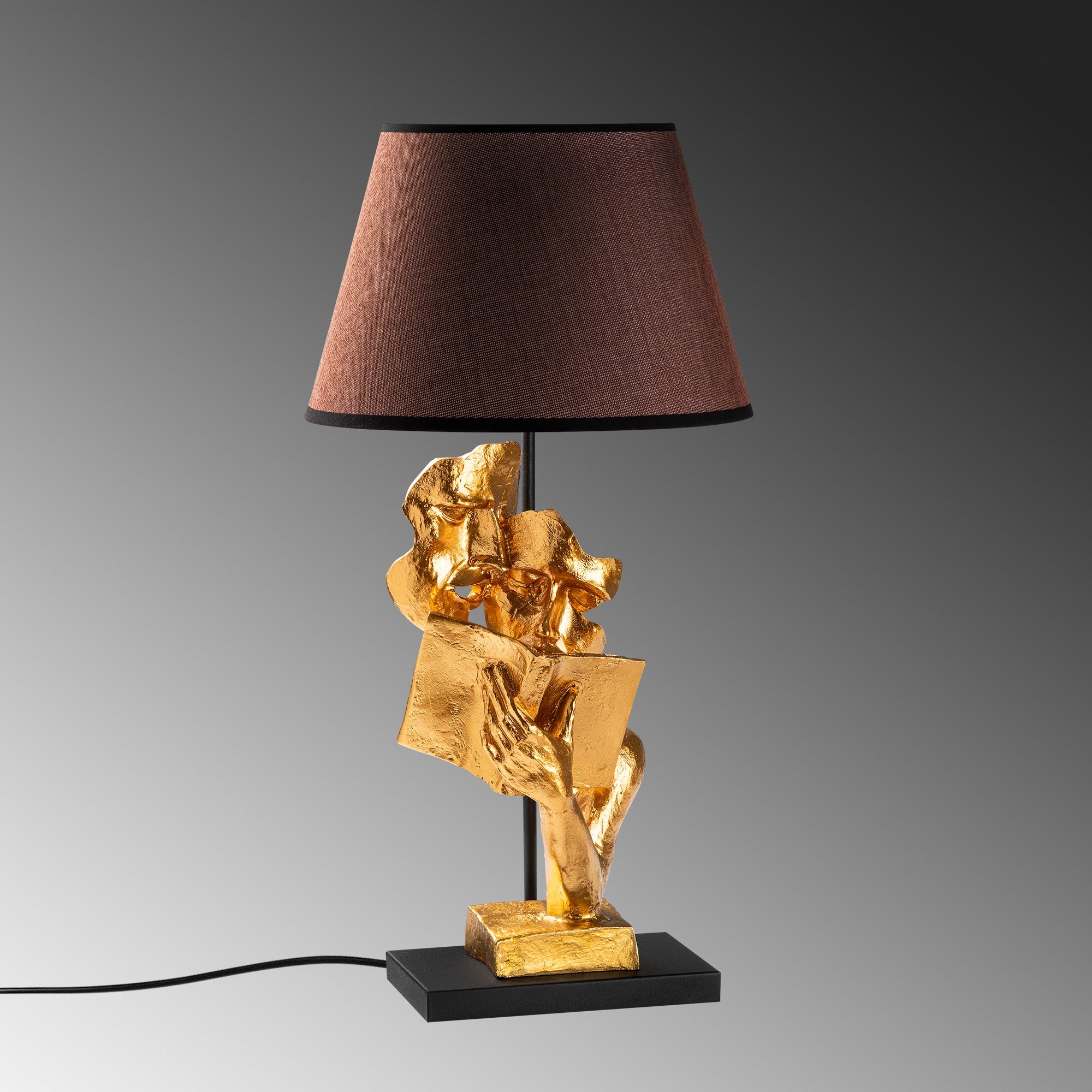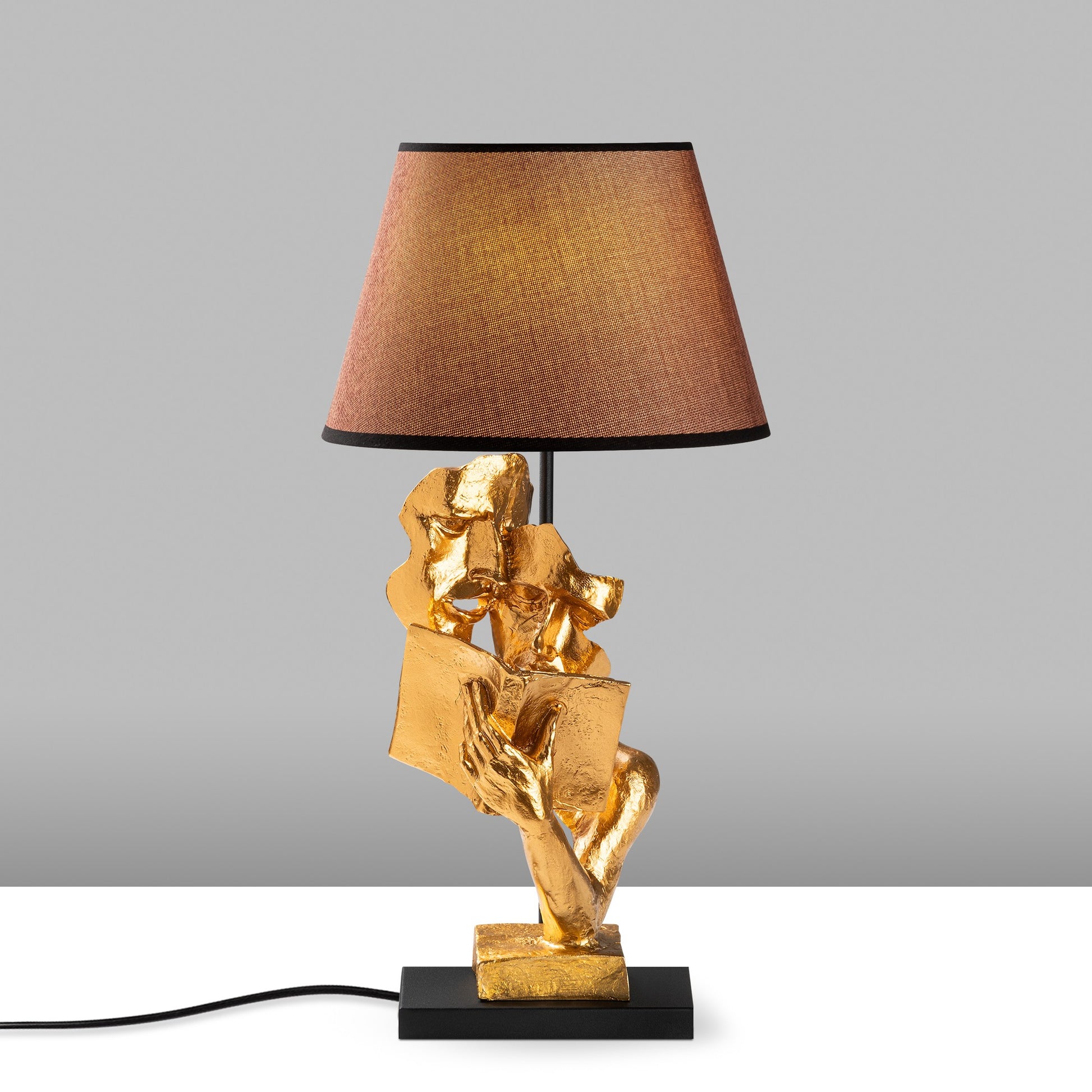 Candeeiro de Mesa – 30 x 30 x 57 cm – Dourado e Marrom – Tecido 100% poliéster