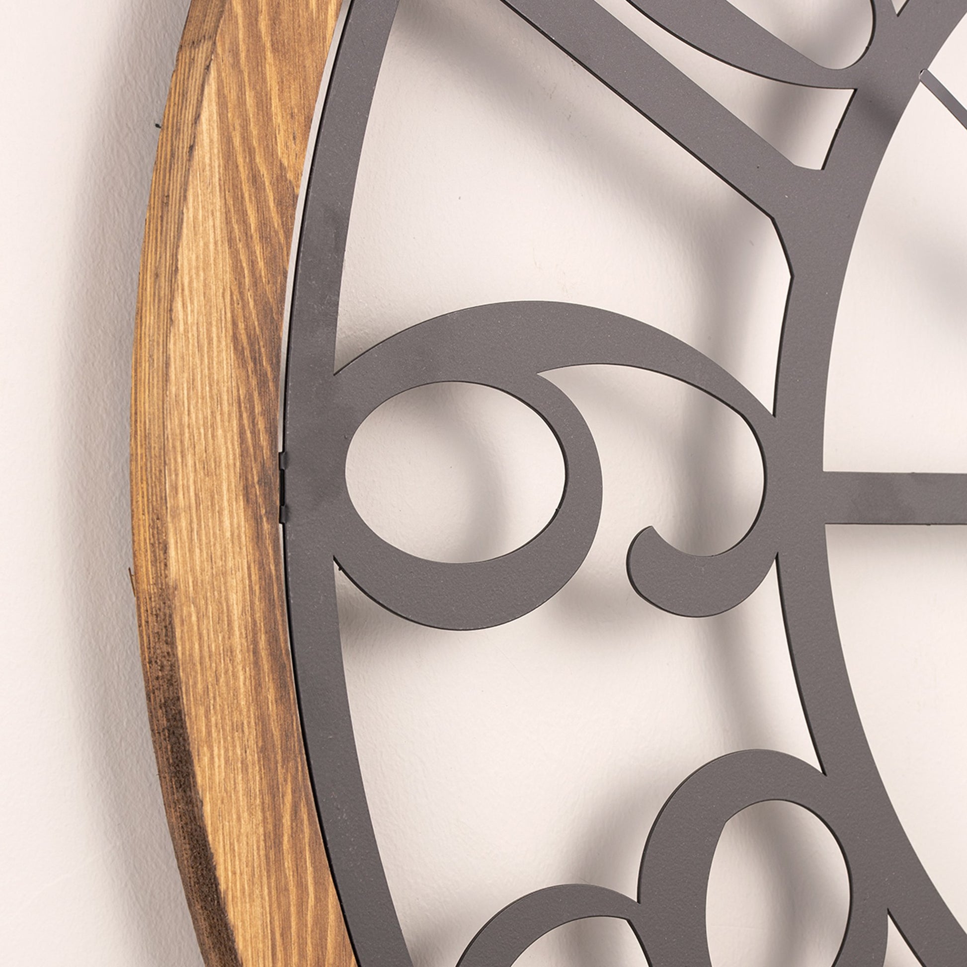 Relógio de Parede Decorativo em Metal Preto com Detalhes em Carvalho - 80cm Diâmetro, Mecanismo Silencioso