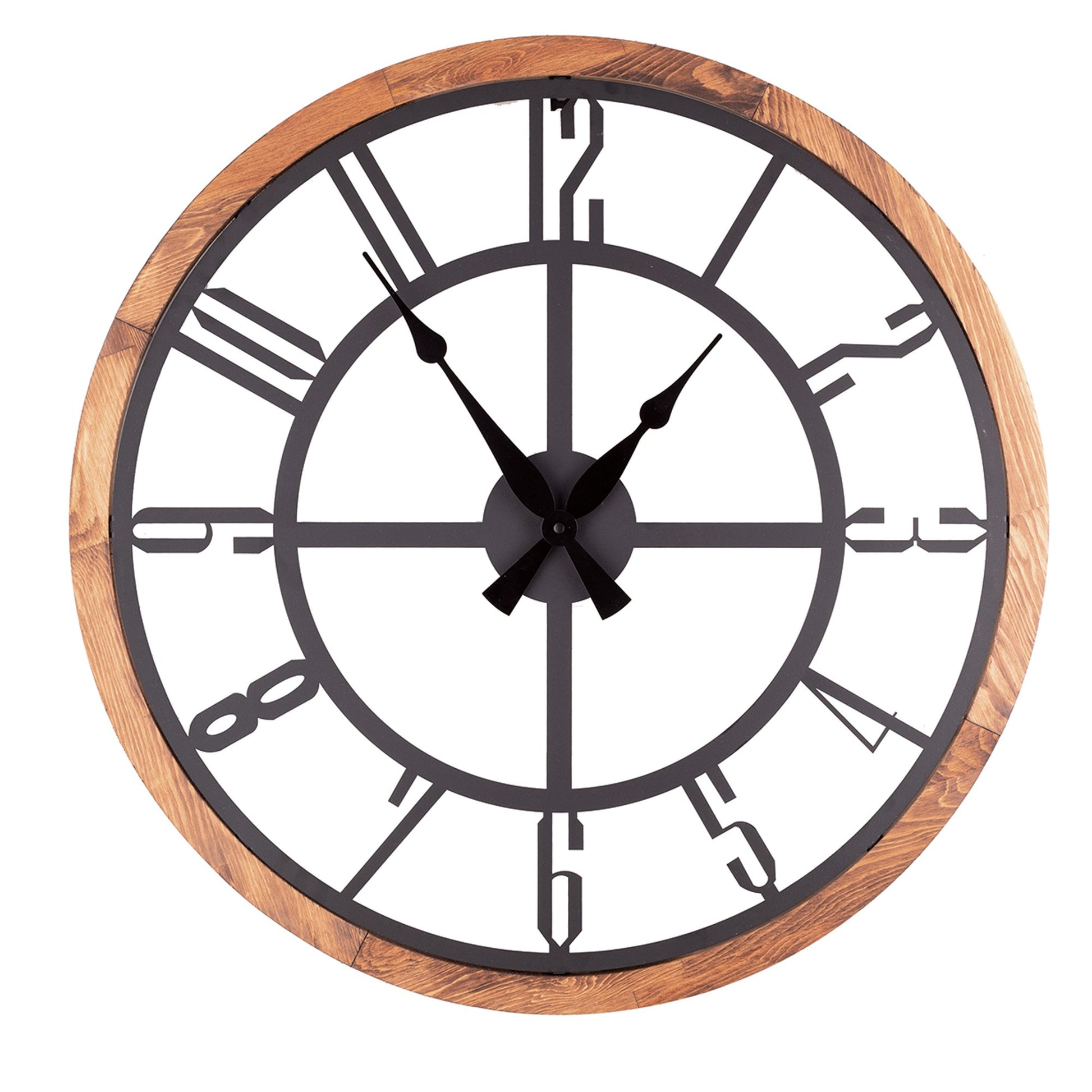 Relógio de Parede Decorativo em Metal Preto com Detalhes em Carvalho - 80cm Diâmetro, Mecanismo Silencioso