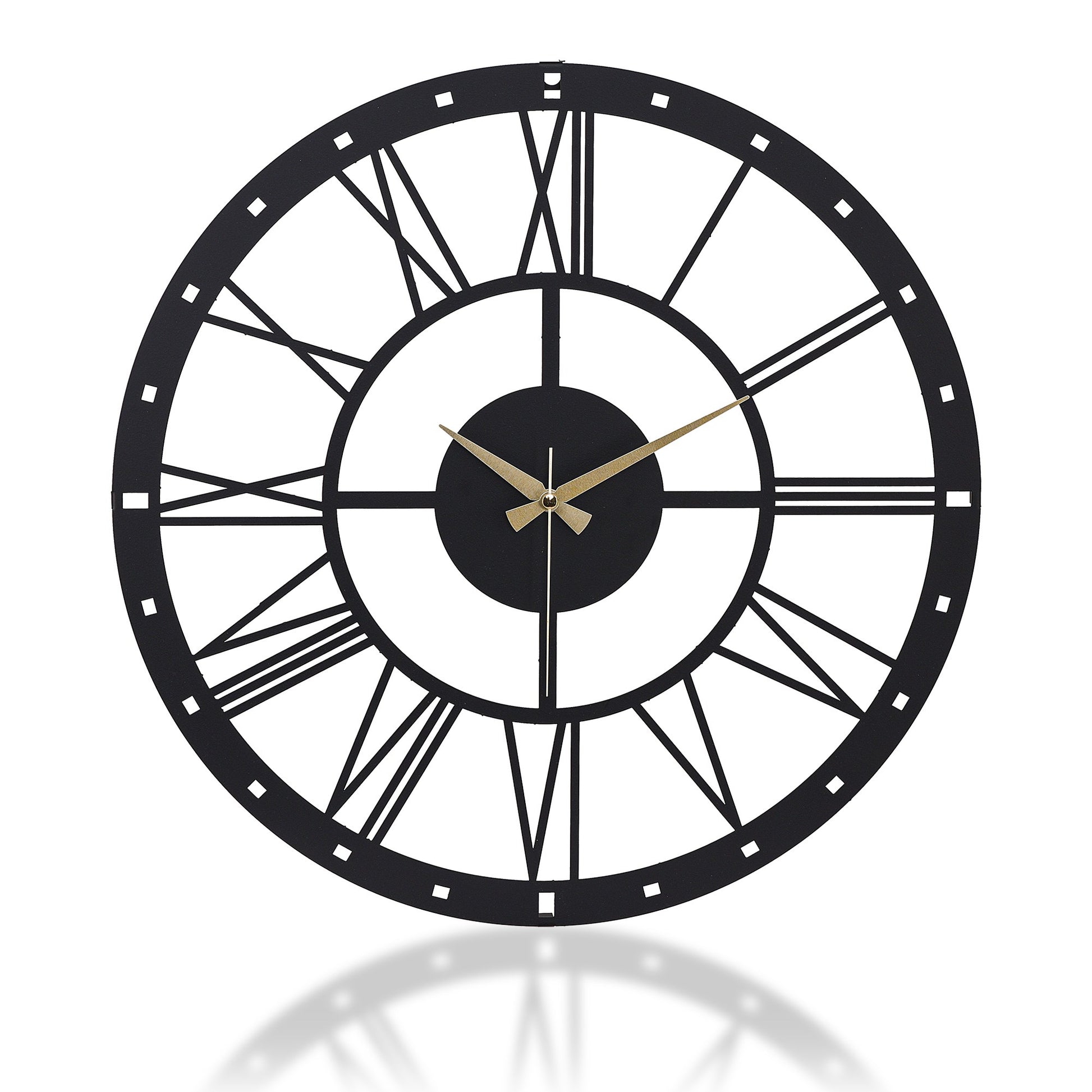 Relógio de Parede Metálico Decorativo Preto 50cm - Mecanismo Silencioso