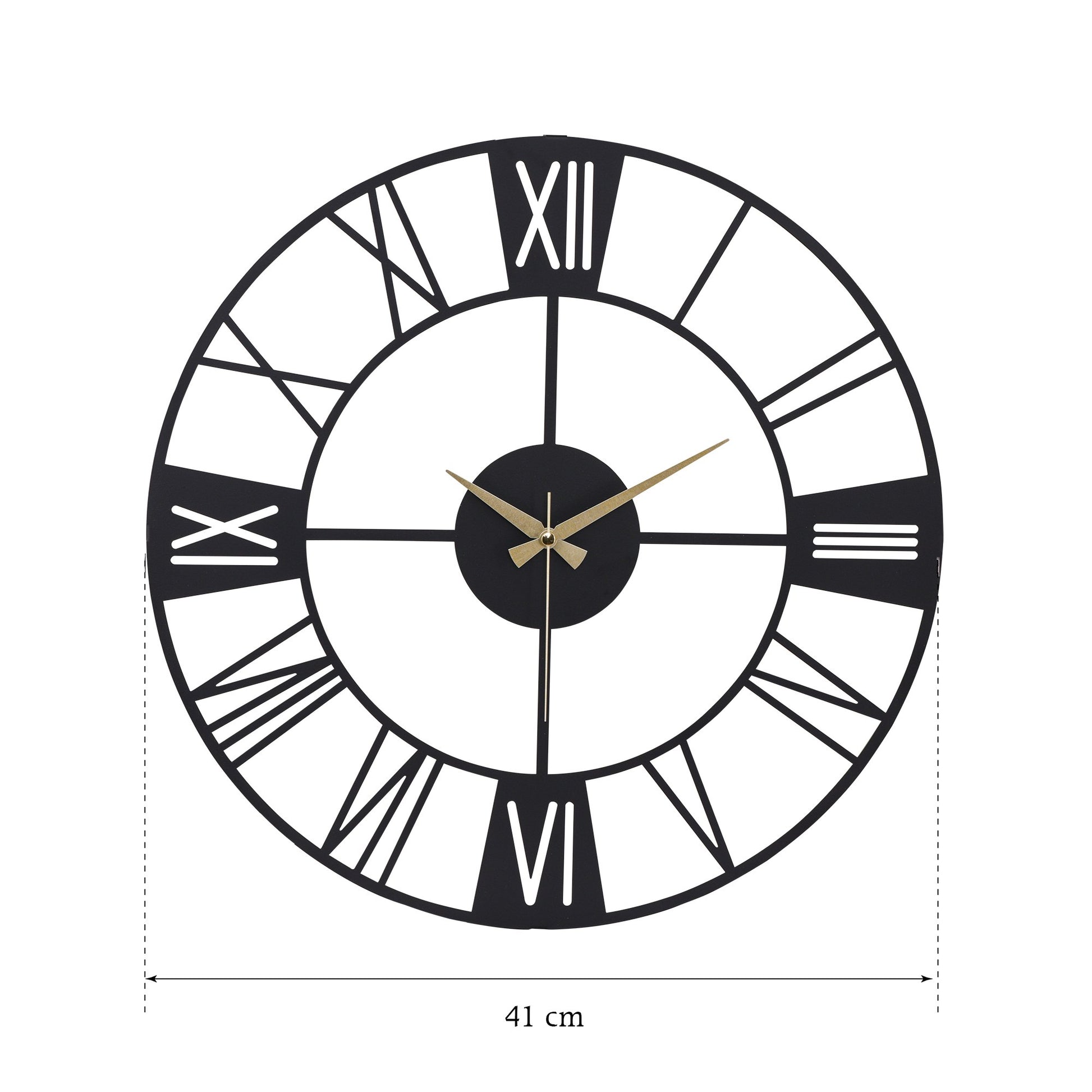Relógio de Parede Metálico Decorativo Preto 41cm - Mecanismo Silencioso