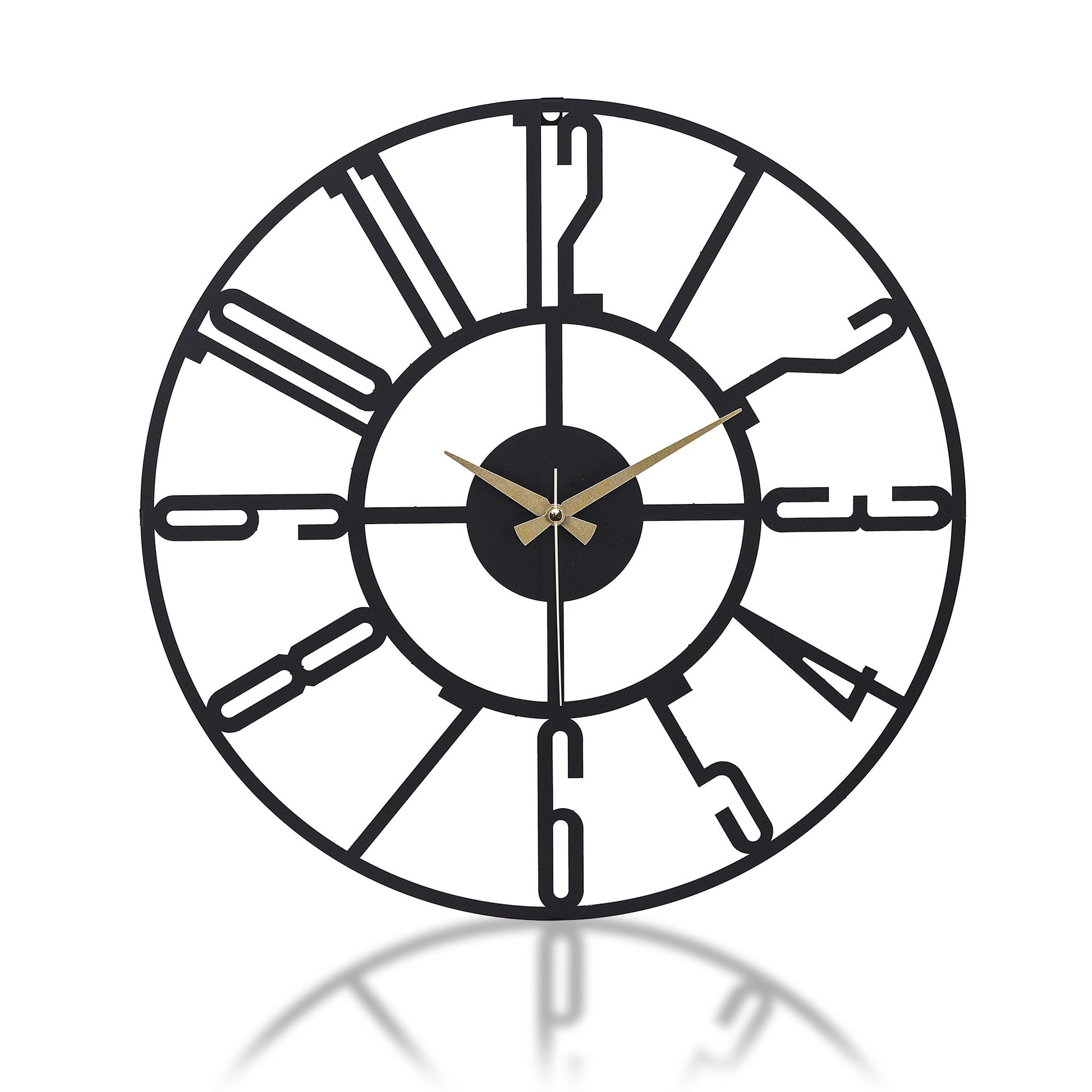 Relógio de Parede Metálico Decorativo Preto 41cm - Mecanismo Silencioso