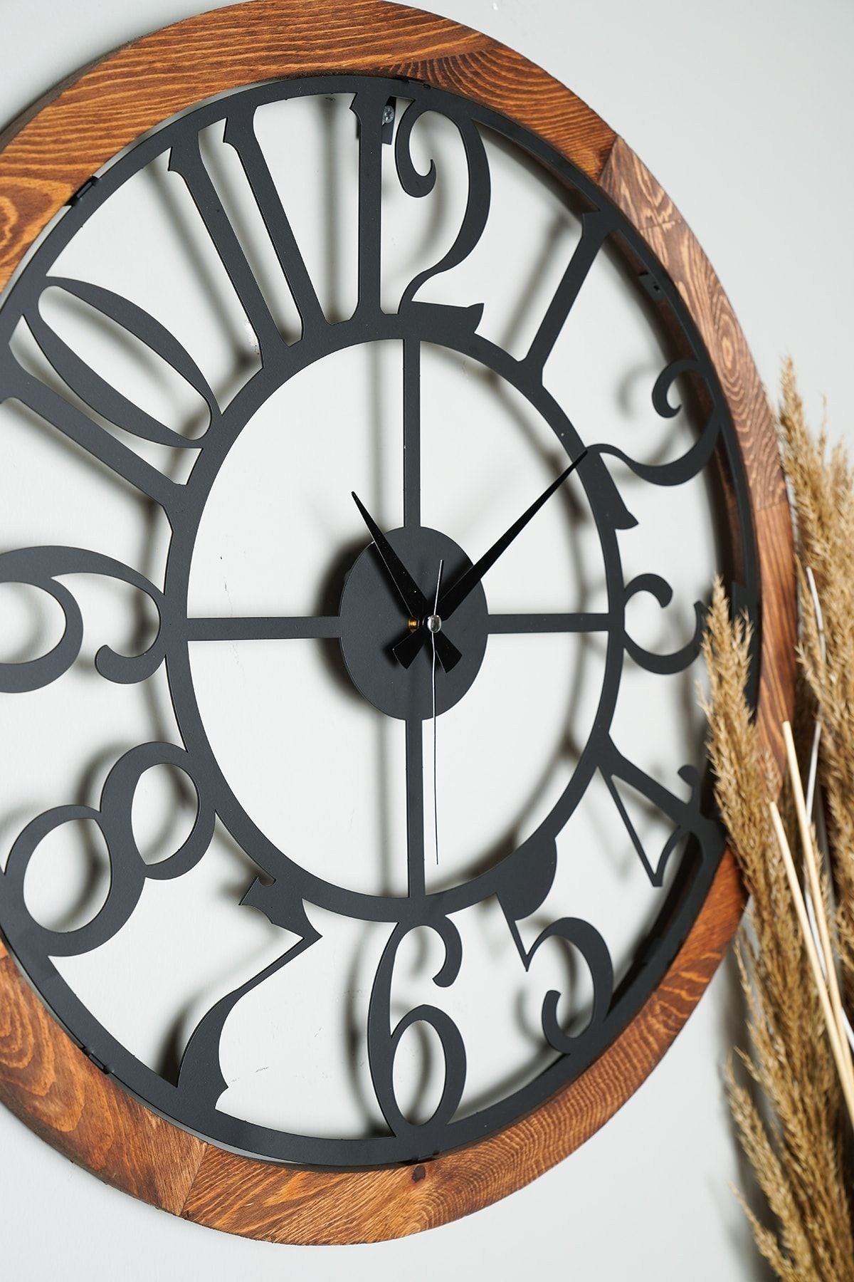 Relógio de Parede Metálico Decorativo 55cm - Design Moderno em Nogueira e Preto para Transformar Qualquer Ambiente