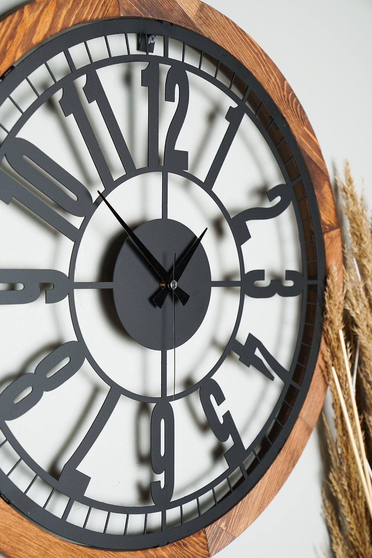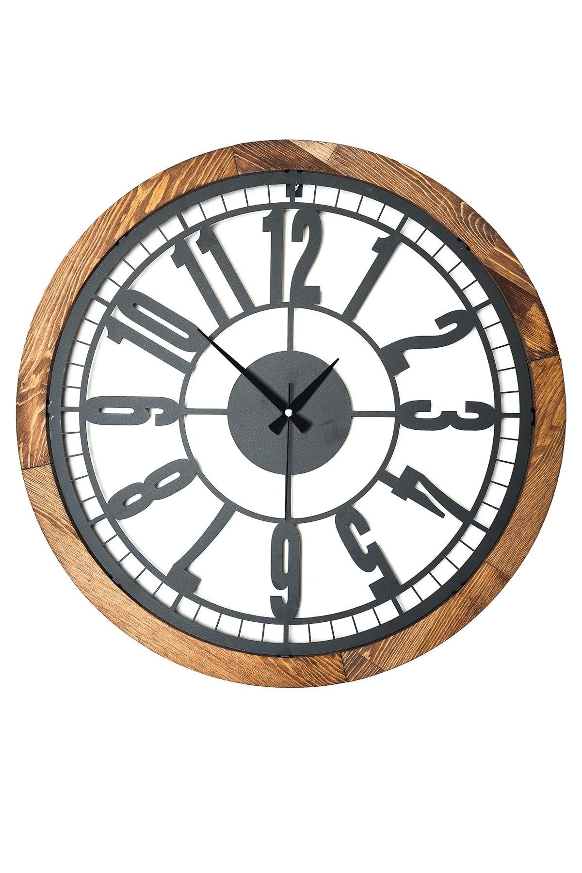 Relógio de Parede Metálico Decorativo 55cm - Design Moderno em Nogueira e Preto para Transformar Qualquer Ambiente