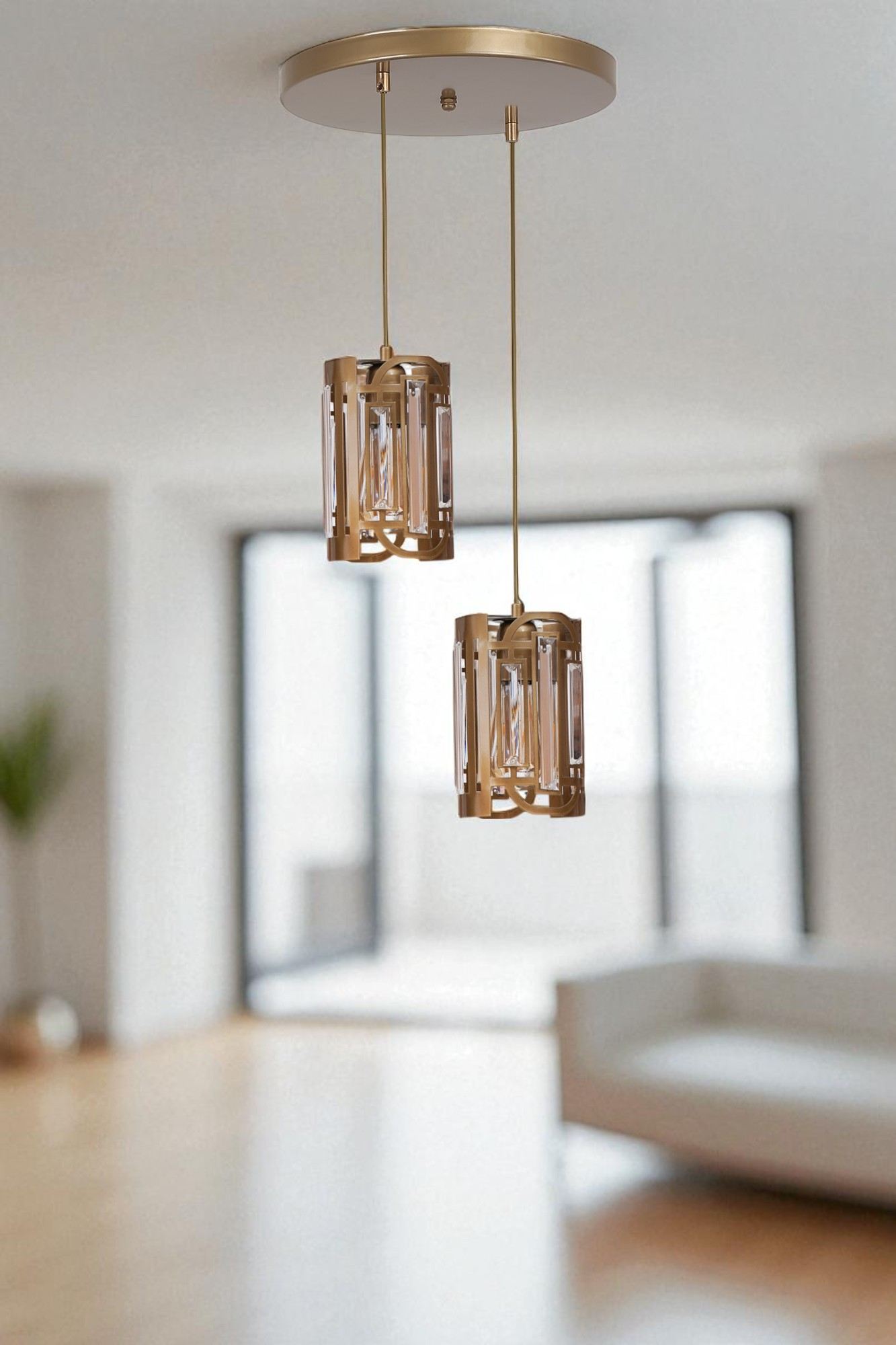Transforme seu espaço de vida em uma oásis luxuoso com nosso deslumbrante Lustre Dourado. Esta peça requintada apresenta um corpo de metal elegante e uma delicada tampa de vidro, adicionando um toque de elegância a qualquer ambiente. A altura ajustável permite que você personalize o visual para se adequar perfeitamente ao seu espaço, enquanto o brilho quente das duas lâmpadas E27 (não incluídas) cria uma atmosfera aconchegante.