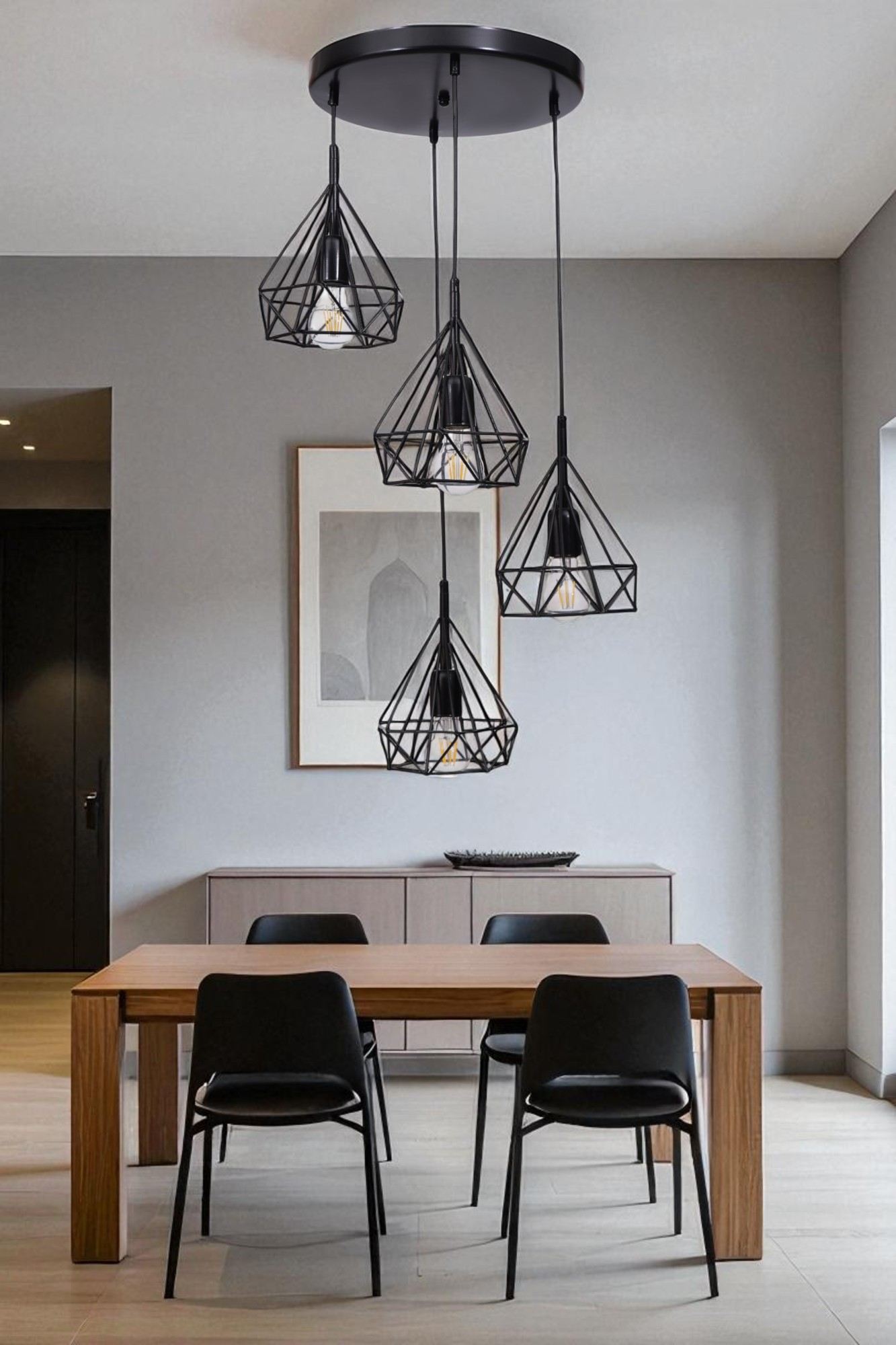 A cor preta atemporal deste lustre adiciona um toque moderno e chique a qualquer esquema de design de interiores. Se você prefere um estilo contemporâneo ou tradicional, esta peça versátil complementará sem esforço seus móveis e decoração existentes.