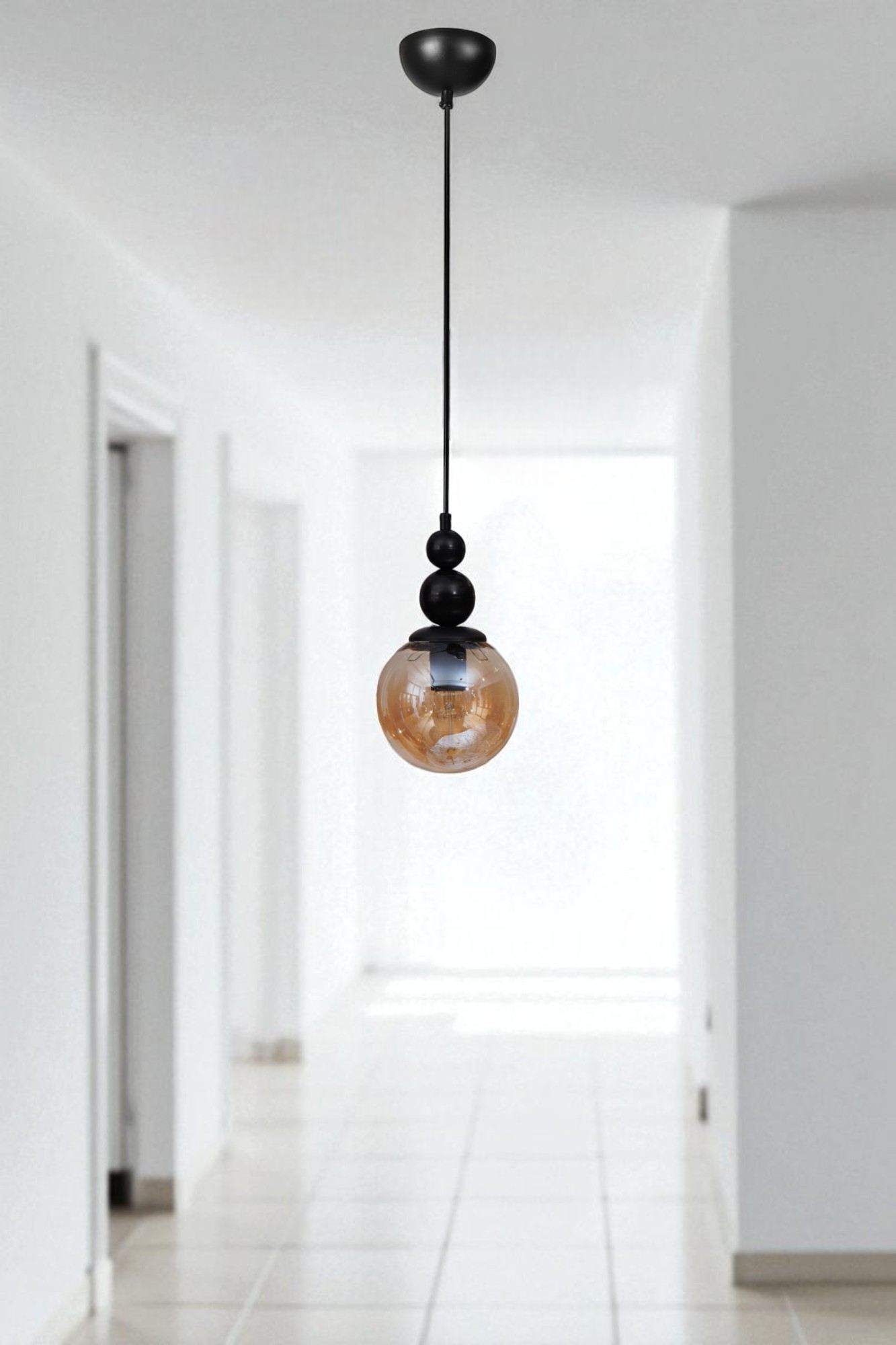 Candeeiro de Teto – Ø15 cm – Mel e Preto – Metal e Vidro