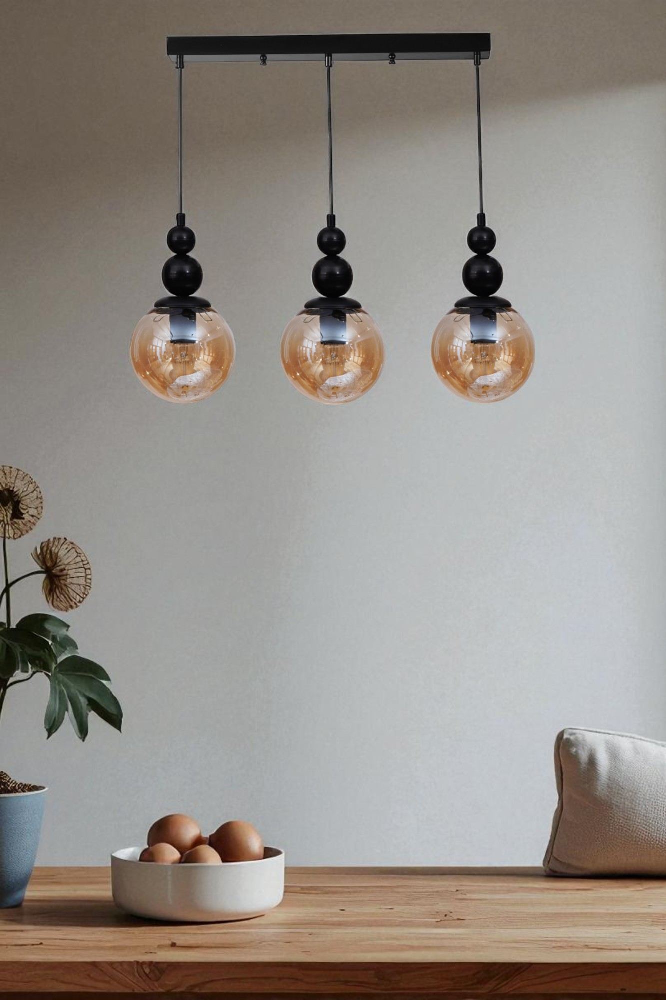 O suave brilho das lâmpadas (não incluídas) combinado com as cores mel e preto cria uma atmosfera quente e convidativa que fará você nunca querer sair de casa. Seja recebendo um jantar ou simplesmente relaxando após um longo dia, este lustre criará o clima perfeito para qualquer ocasião.