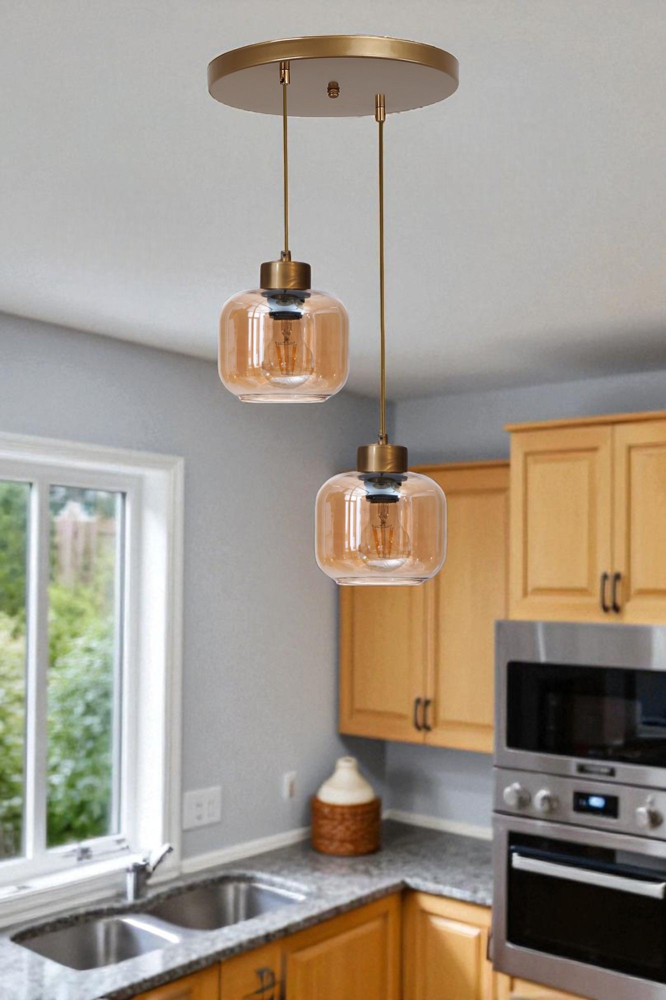 Candeeiro de Teto – 80 cm – Mel e Ouro – Metal e Vidro