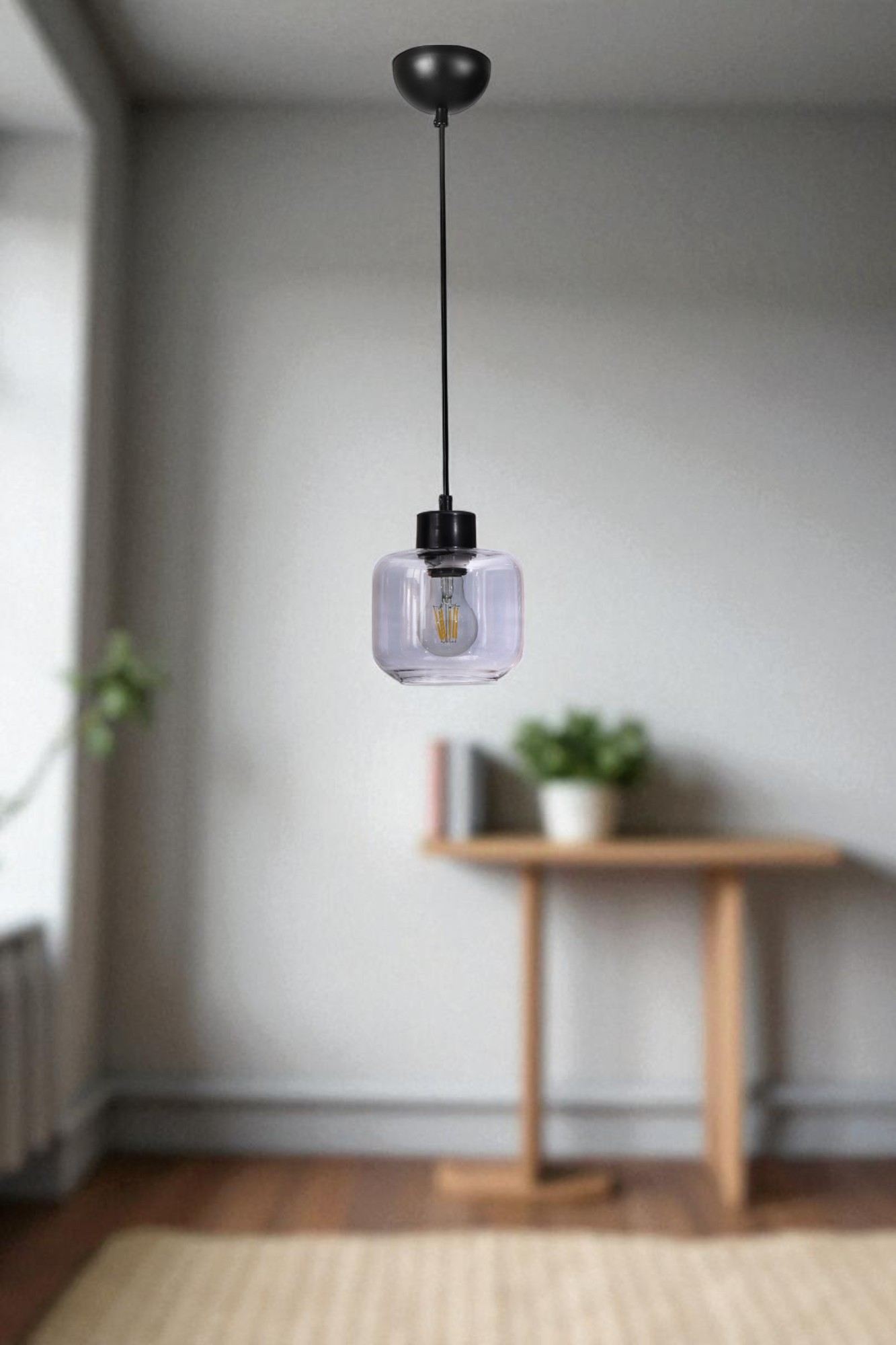 Candeeiro de Teto de Metal e Vidro – Ø15 cm – Cinza e Preto